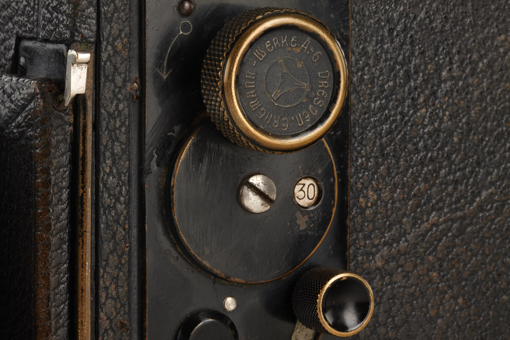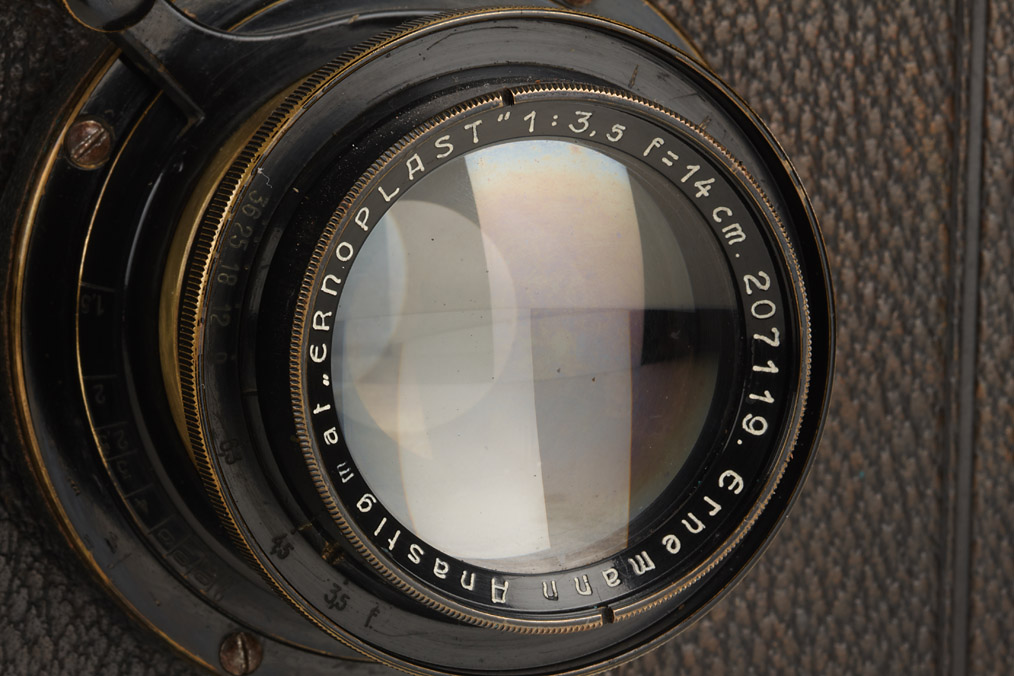 9x12cm, focal-plane shutter (non functional), Ernoplast 3.5/14cm no.207119, focusing screen adapter, original condition