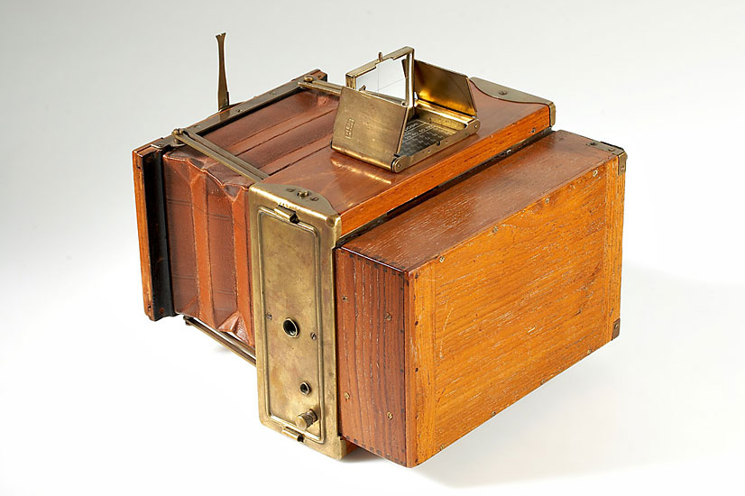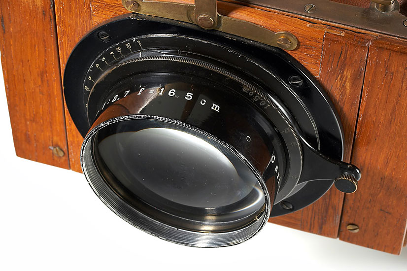 10x15cm, last version Tropen Klapp, teak body, Tessar 2.7/16.5cm no. 648089, focal-plane shutter in working condition, tan leather bellows and matching magazine back
