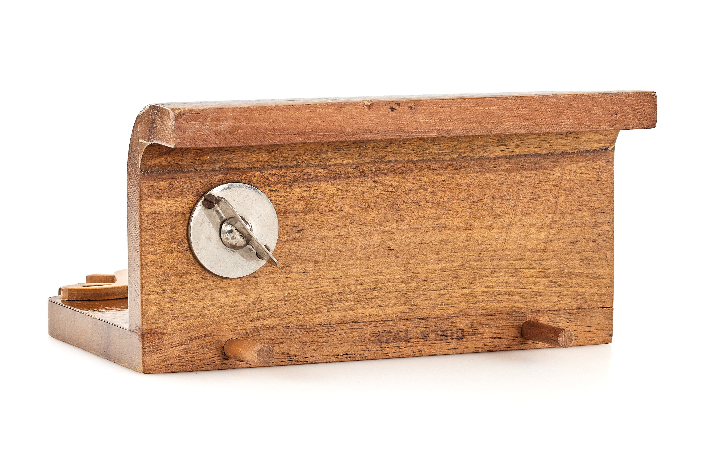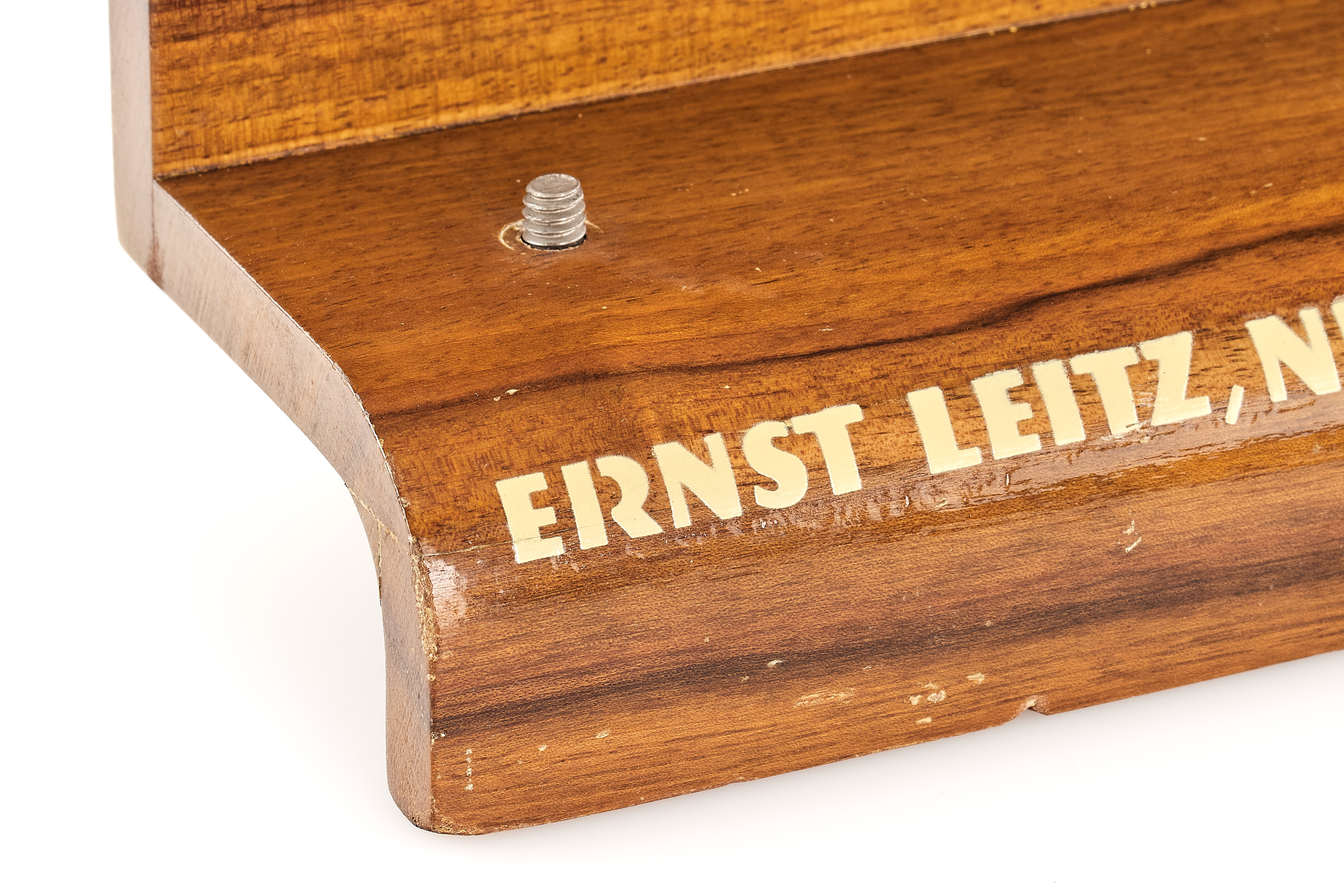 Very rare 1930s wooden Leica display stand from E. Leitz New York, 16.5 x 8.5 x 15.5cm lacquered wood, in very good condition, reproduced in James L. Lager 'Leica Illustrated History, Vol. III' dust cover and on p. 330, very few of these stands still exist.