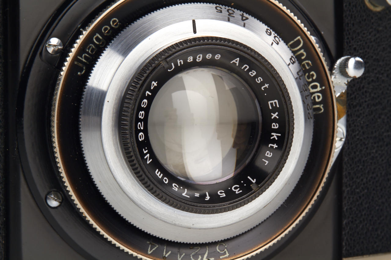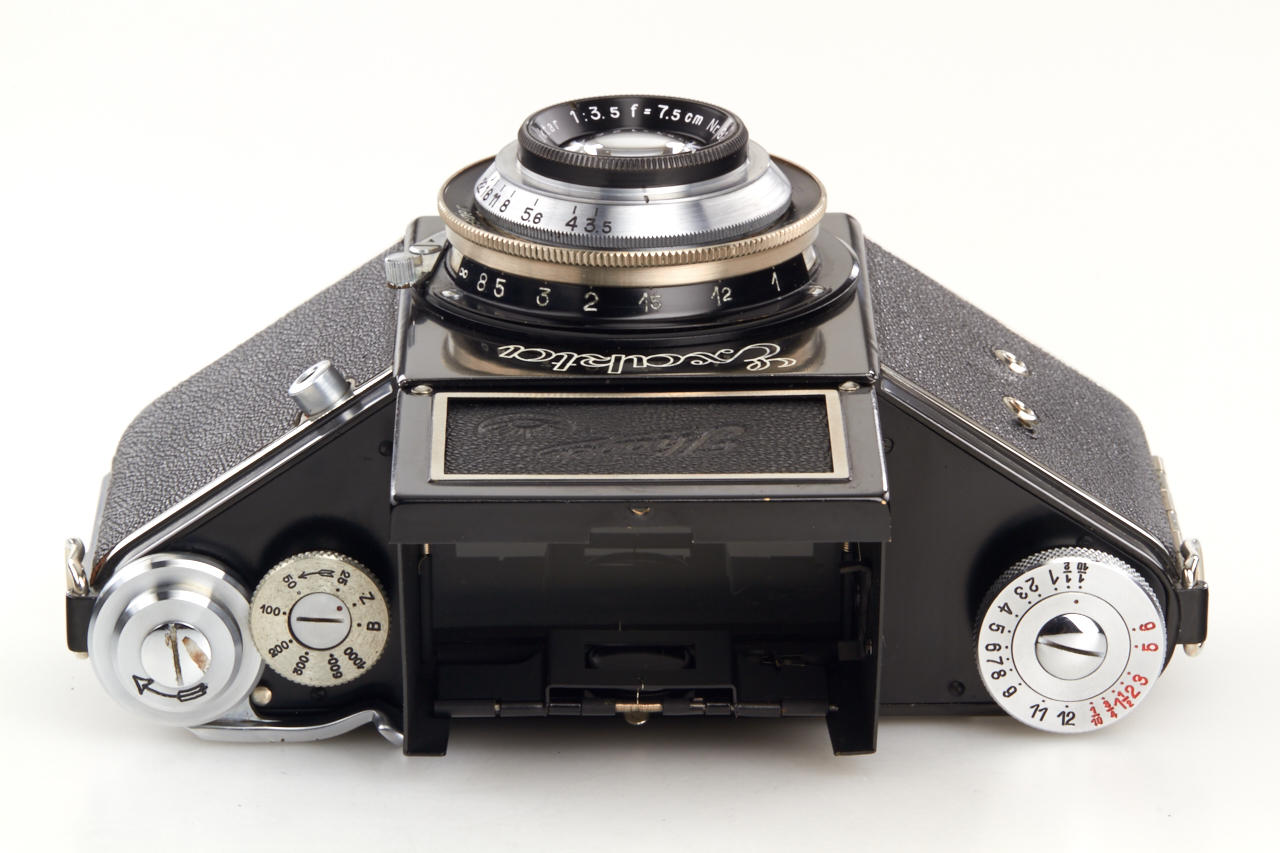 in beautiful near mint condition and perfect working order, with chrome Anastigmat Exaktar 3.5/7.5cm no.928914, lens cap and everready case