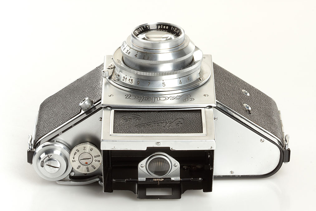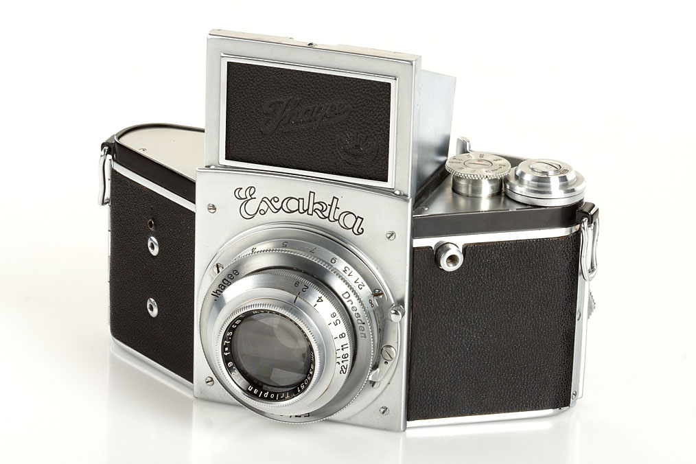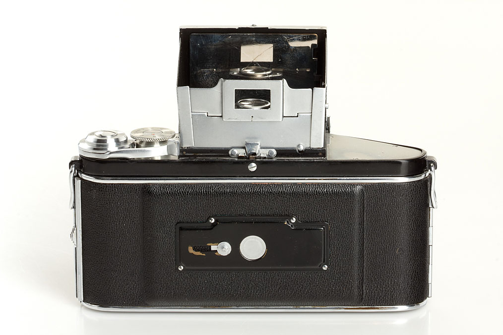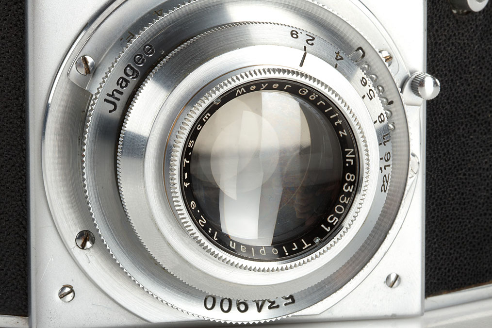 4x6.5cm, rare fifth version in chrome with wind-on lever and three pin Vacublitz socket, in good working order, Trioplan 2.9/7.5cm no.833051, Tele Megor 5.5/18cm no.984816, cap, extension rings