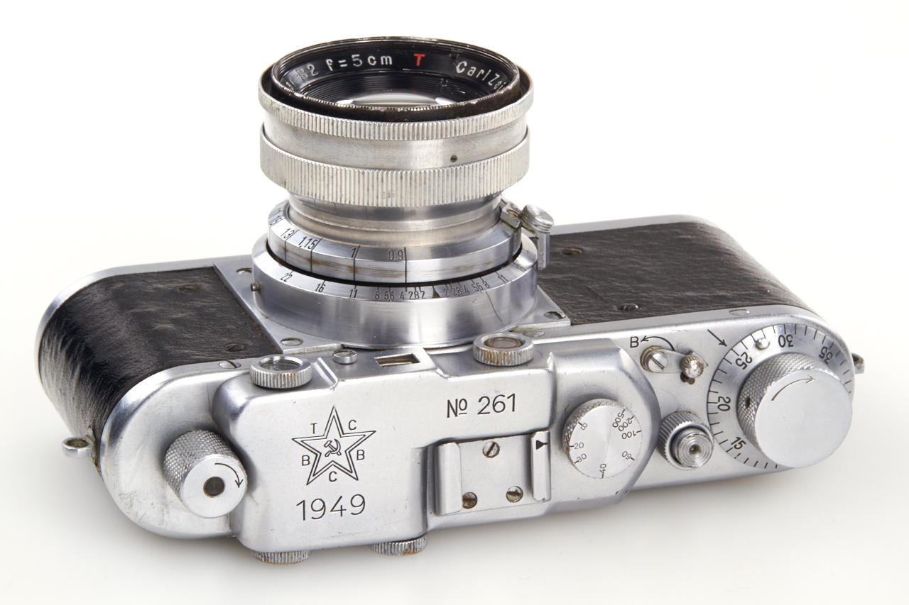 rare Russian Leica copy with Contax bayonet, matching Sonnar 2/5cm T no.3060279, cap, in used original condition and good working order, original everready case