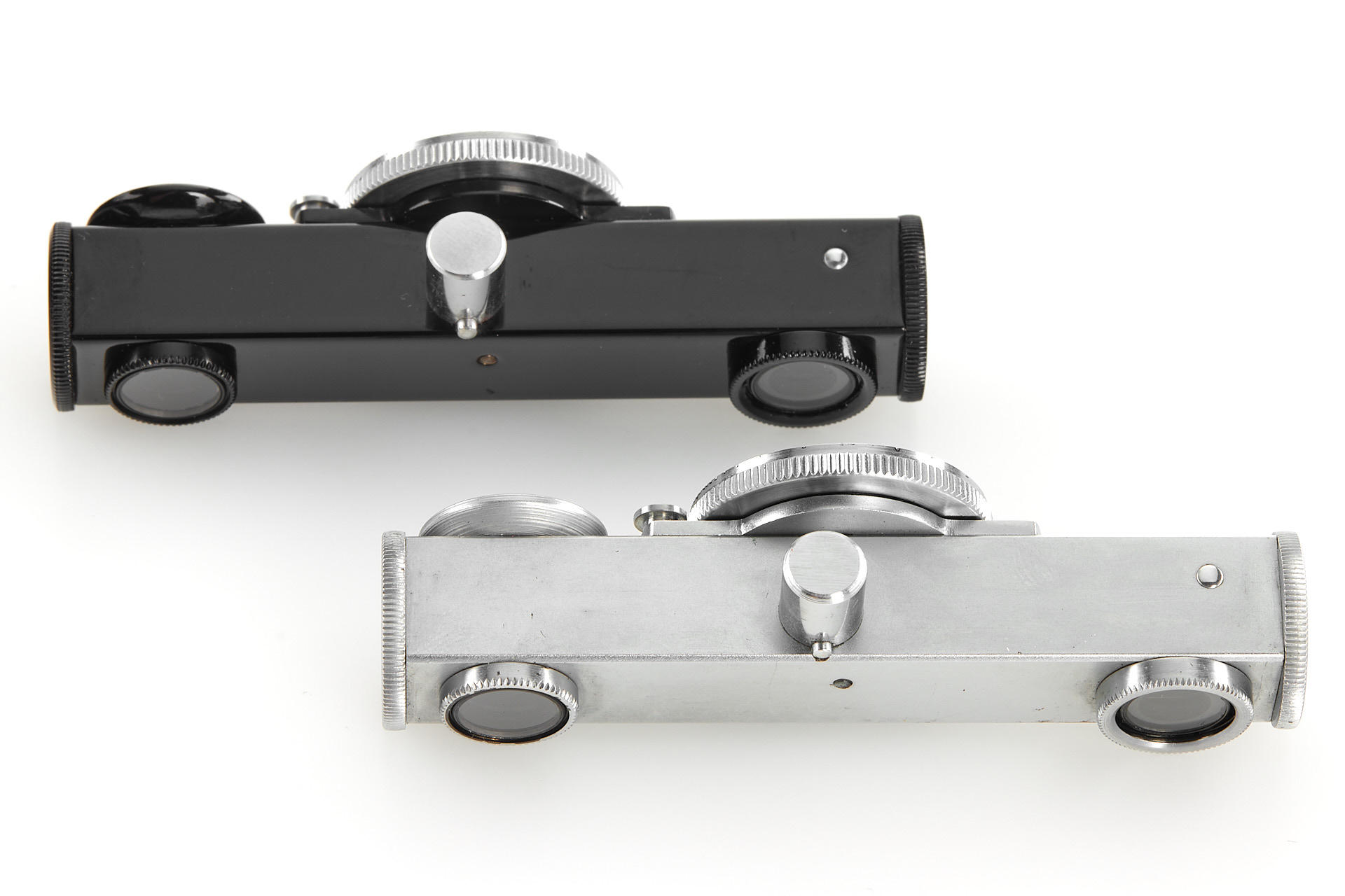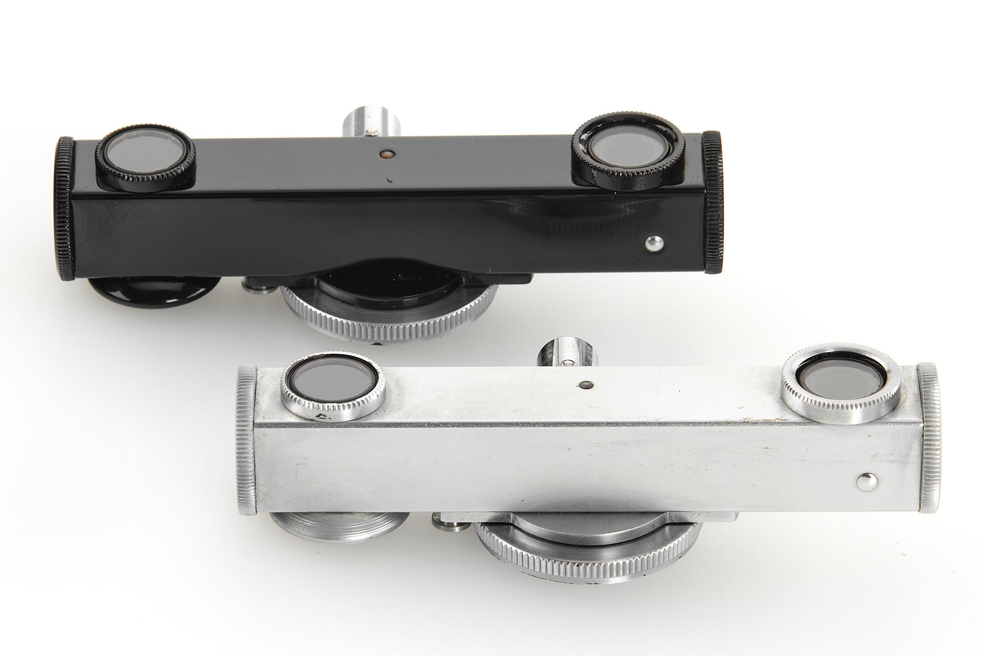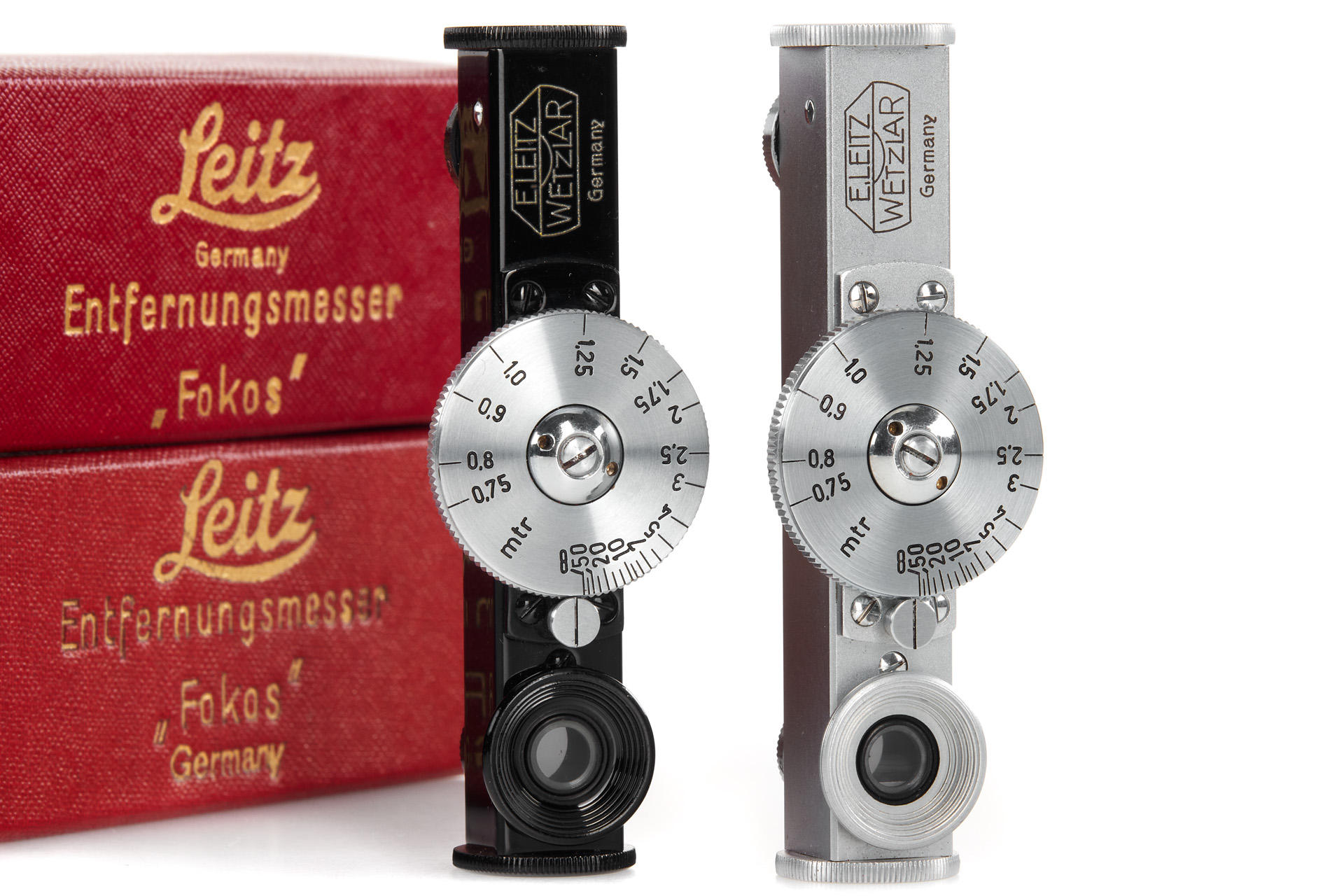 A pair of FOKOS rangefinders, one in chrome, one in black/chrome, both in beautiful, near mint condition and with maker's boxes