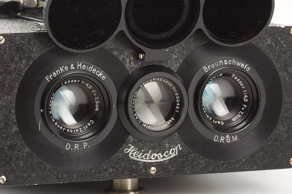 6x13cm, last type with a pair of Carl Zeiss Jena Tessar 4.5/7.5cm lenses nos.910619/20, magazine back, in very fine condition