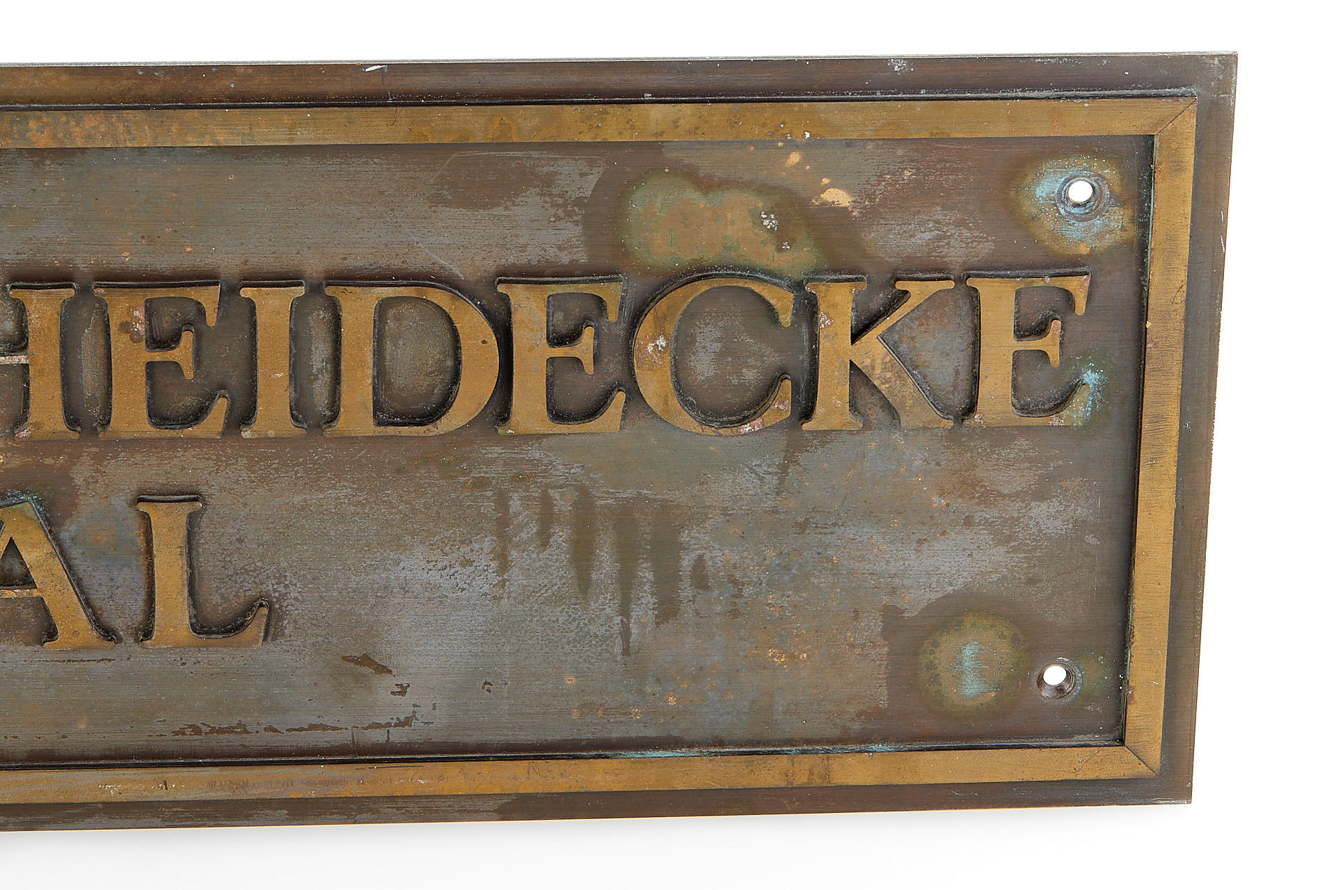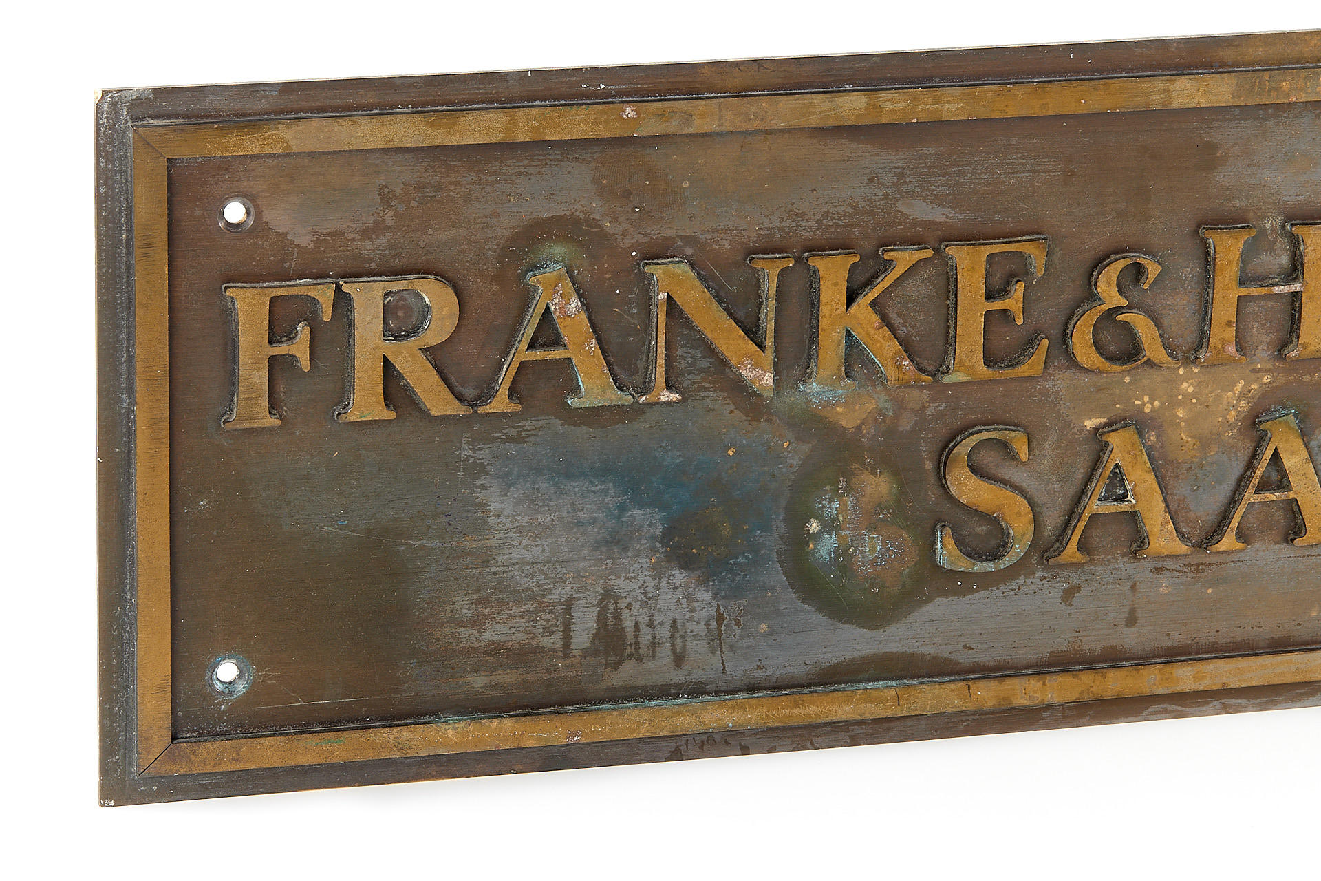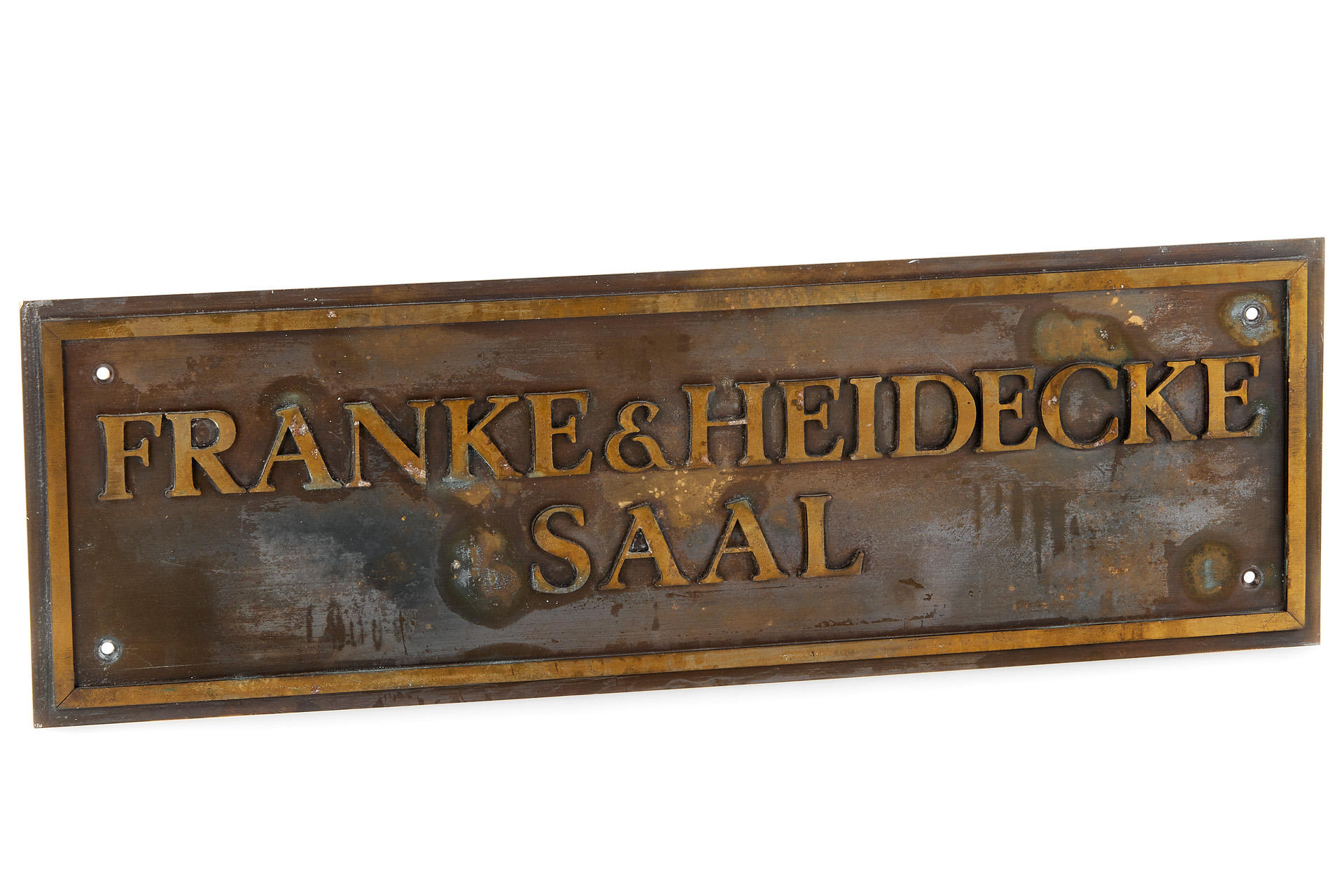 interesting bronze ex-Rollei factory sign indicating the 'Franke & Heidecke room', in good condition, showing some typical green oxidation, 56x18 cm