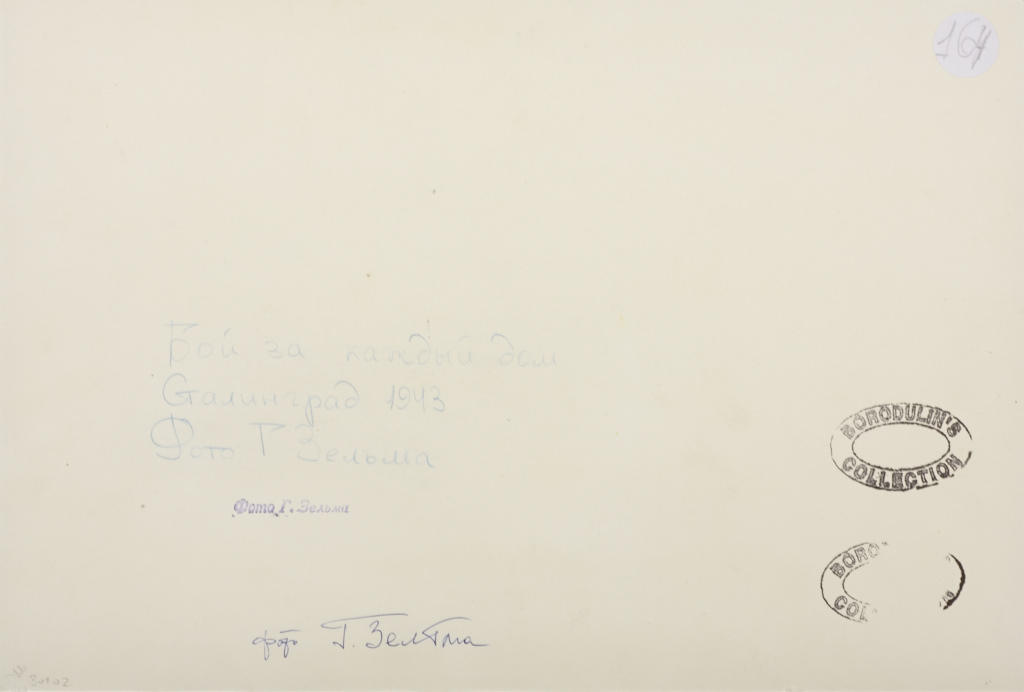 Gelatin silver print, printed 1960s 26,5 x 38,8 cm (10.4 x 15.3 in) Signed by the photographer in ink on the reverse, his stamp, Borodulin collection stamp and diverse notations in Russian on the reverse PROVENANCE Borodulin Collection LITERATURE S. Morosow (ed.), Sowjetische Fotografen 1941-1945, Leipzig 1985, p. 143.