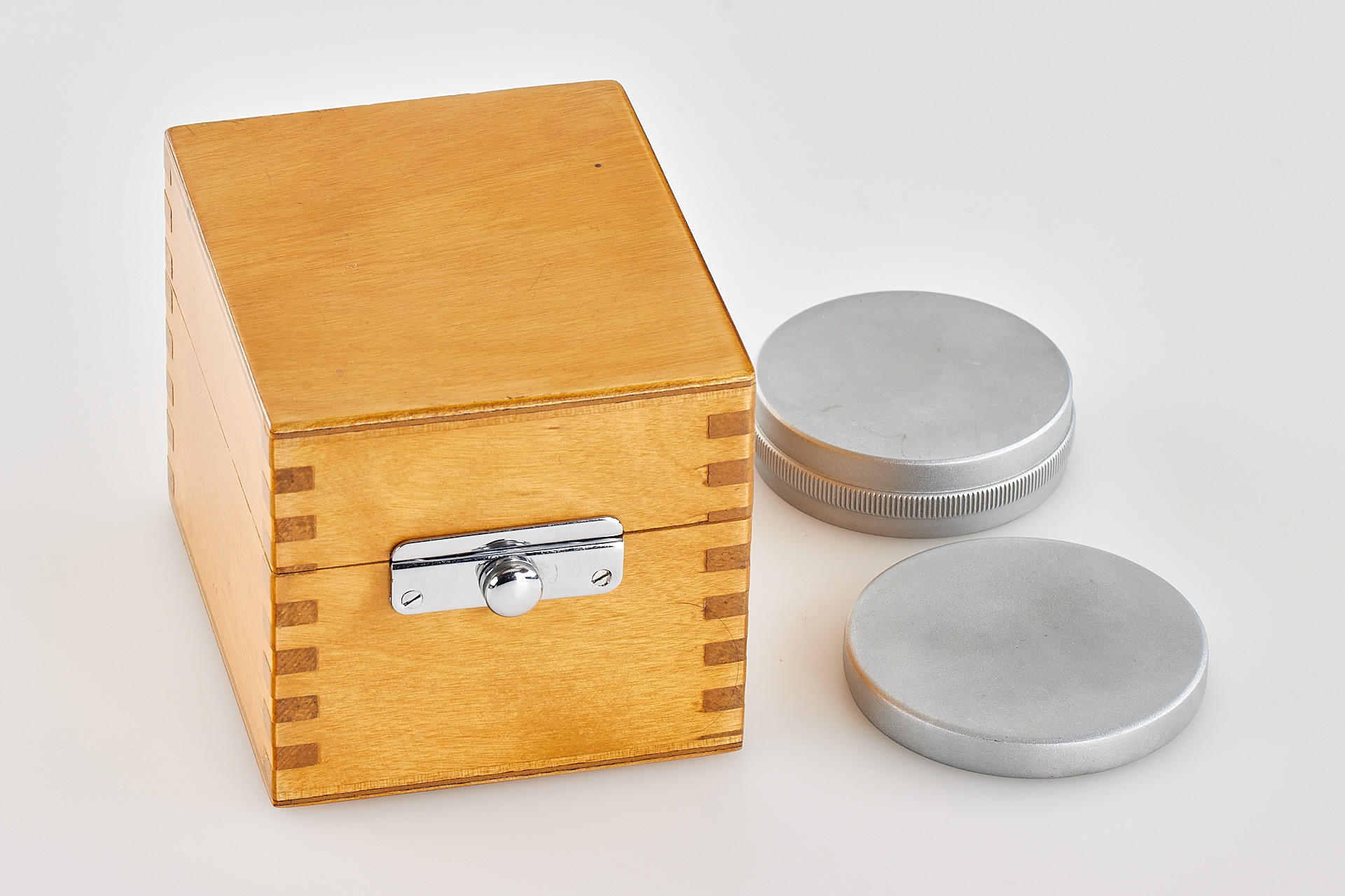 an interesting prototype of a fast medium format lens, lens head with M48 mount, in mint condition, including both original metal caps and a wooden box