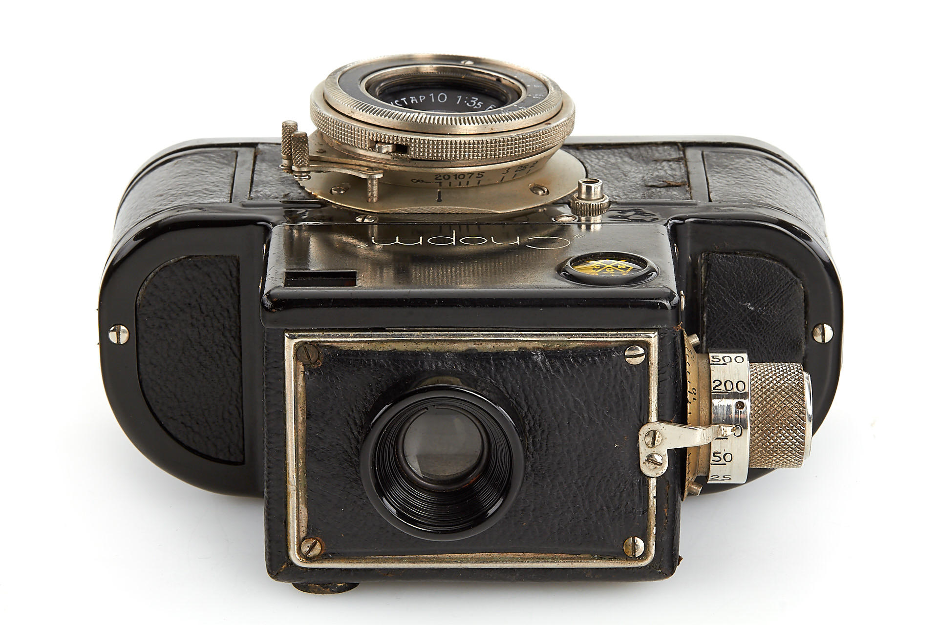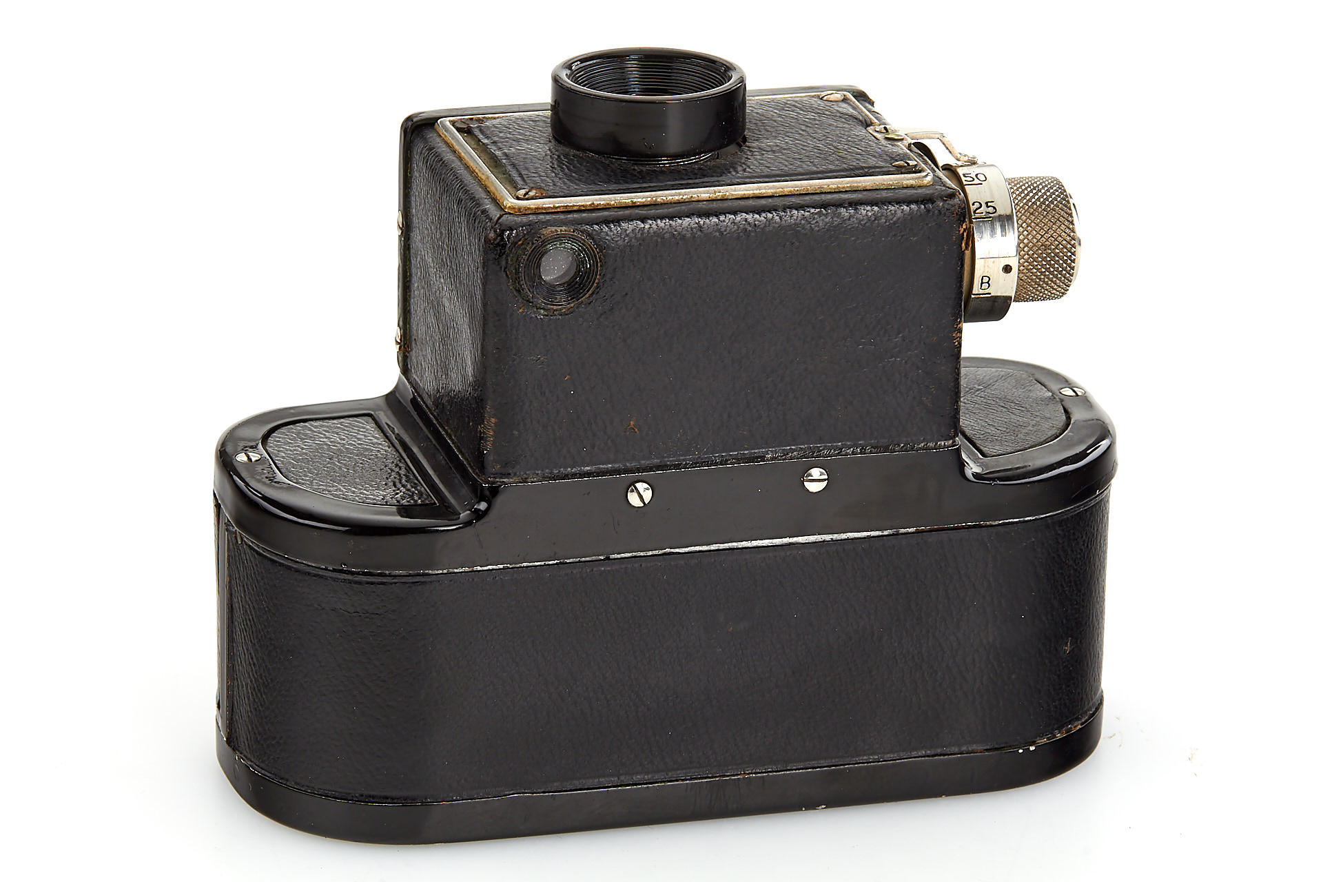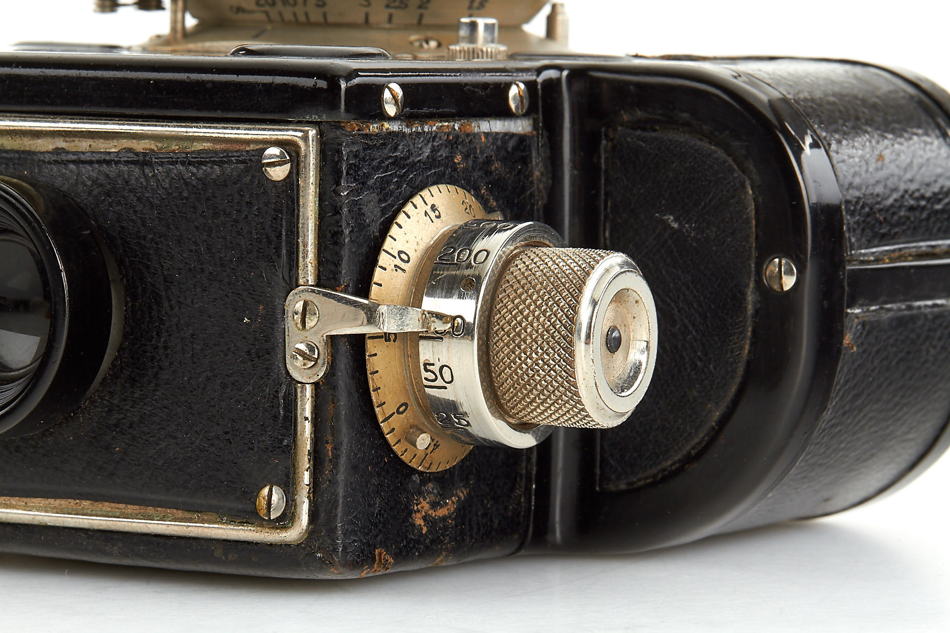 very early Russian 35mm SLR camera in fine condition, nickel fittings, Industar-10 3.5/5cm no.2087 in special mount, decent optics, in good working order, complete with a spool, maker's ever-ready case (worn) with second spool inside
