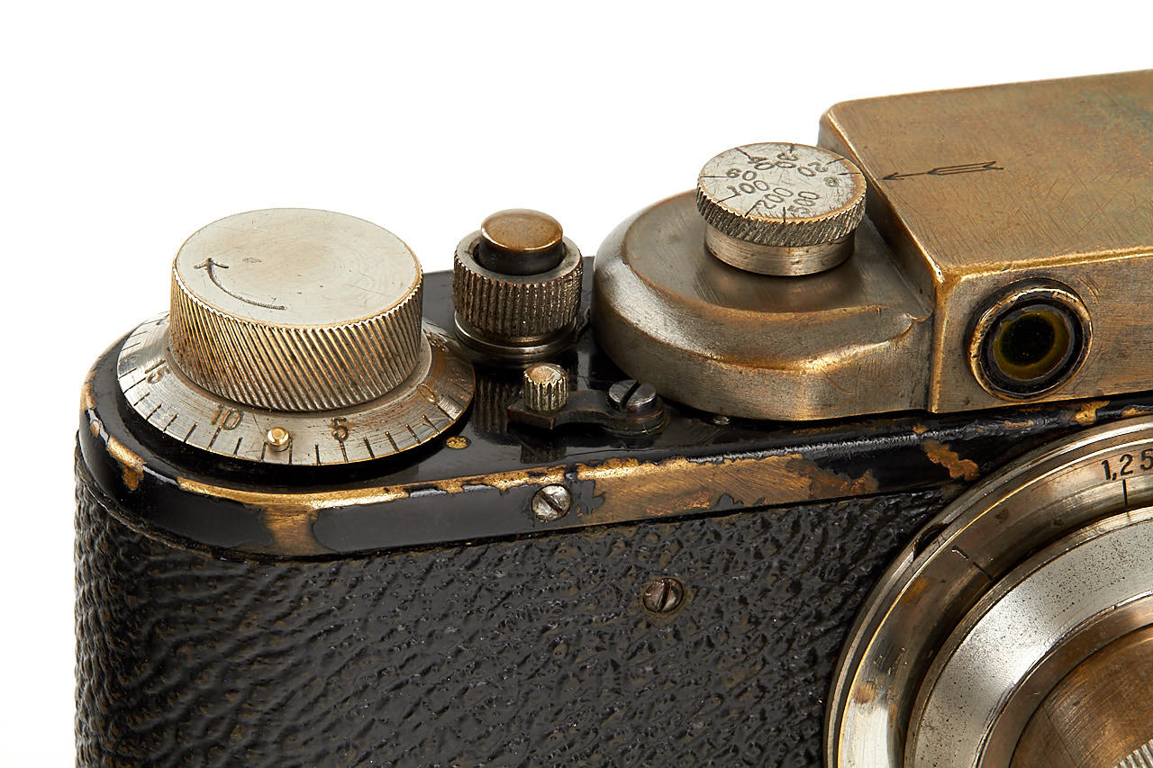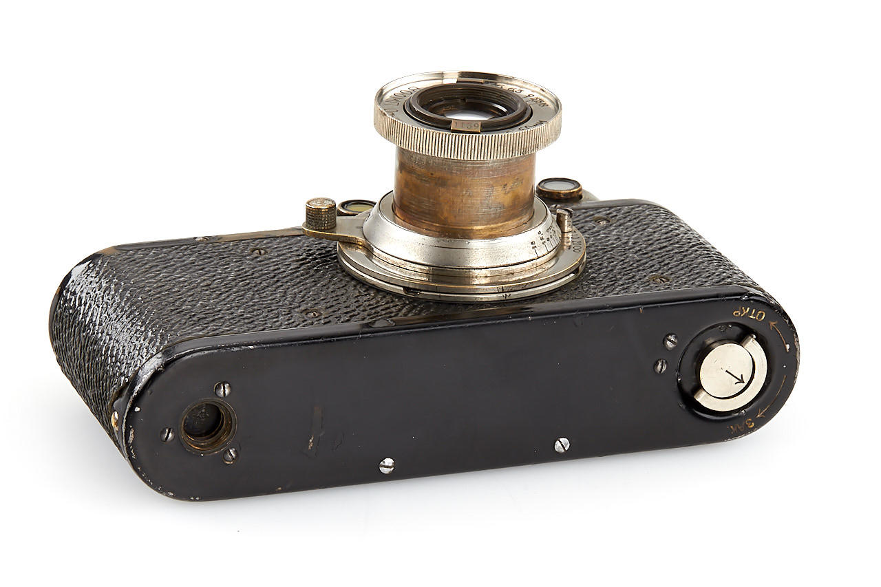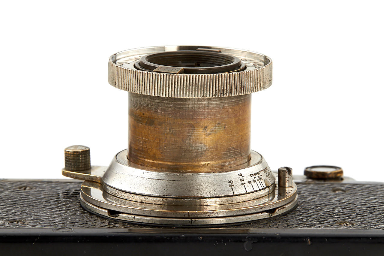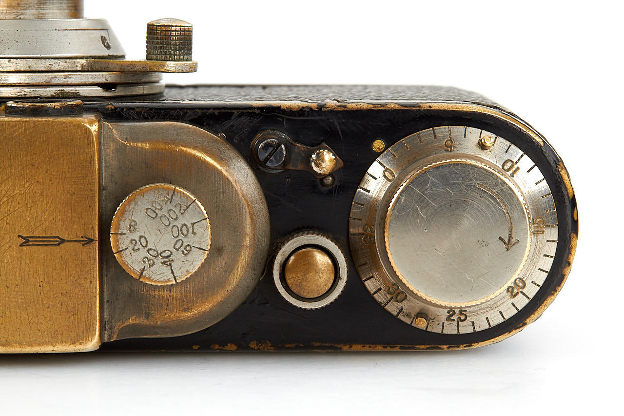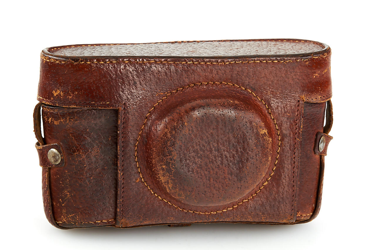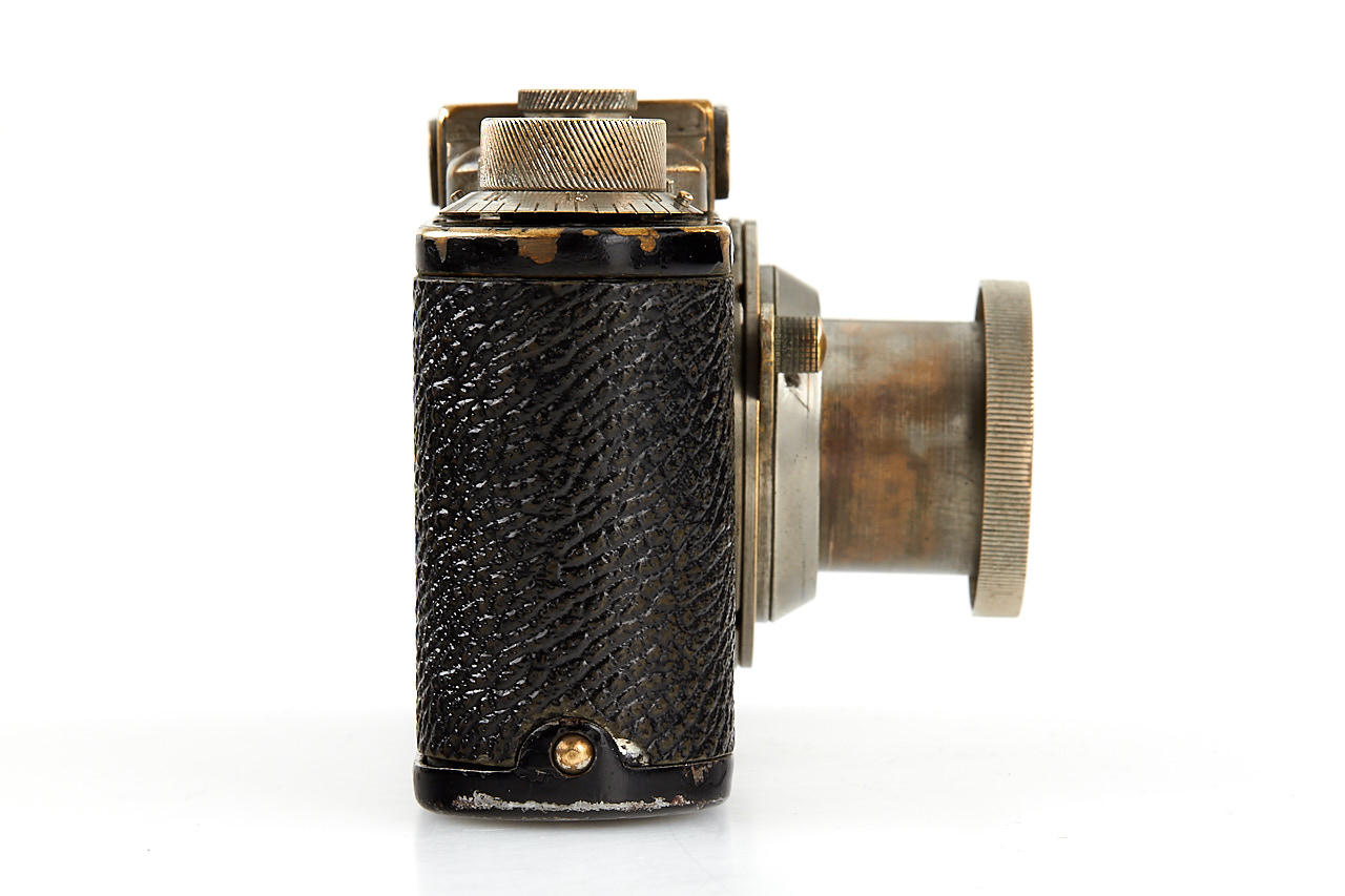 Very rare and well made Russian Leica II copy made by GOMZ. The camera was designed by Muratov in 1933 and only very few of them survived. With nickel VOOMP 3.5/50mm no.1159 (a Tessar copy in 40mm thread mount). In used condition, with all typical features like unique style of knobs, special Vulkanite etc., with unmarked leather case