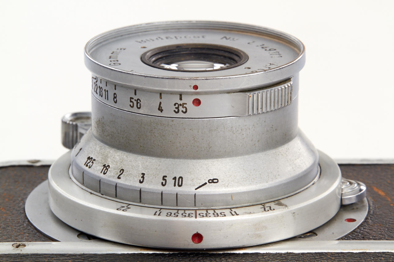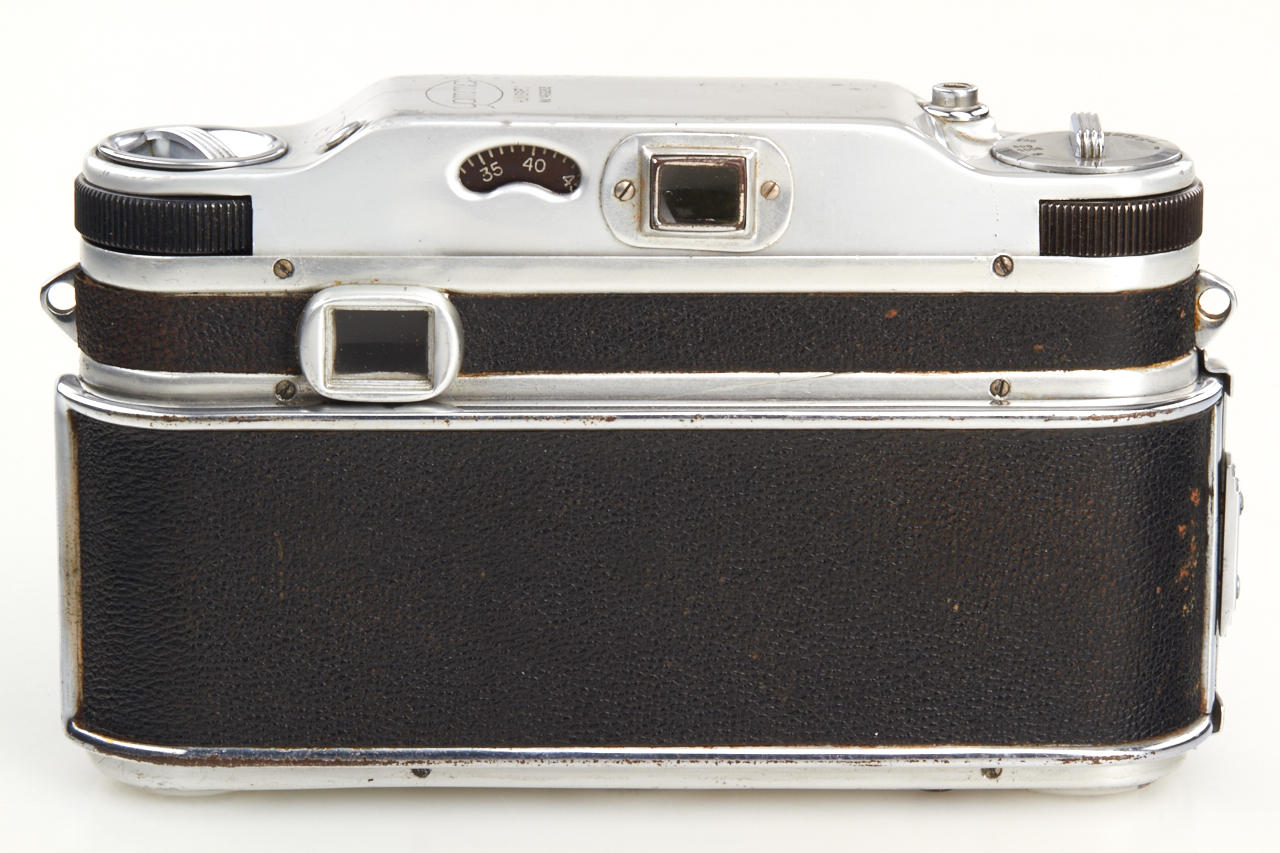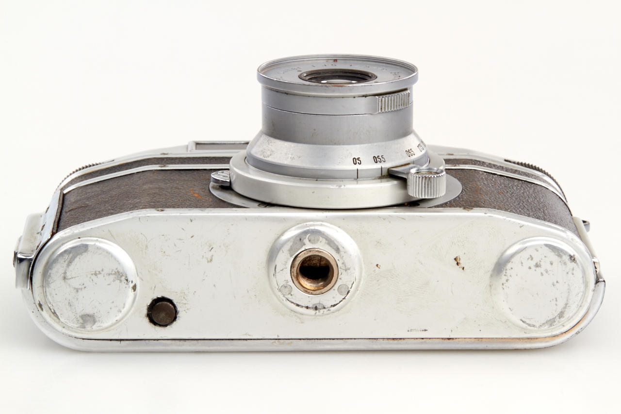 very rare and important Hungarian 35mm SLR with viewfinder, first camera to have a metal focal plane shutter and instant return mirror, in good and original condition, working (!) shutter, Artar 3.5/5cm no.L149312