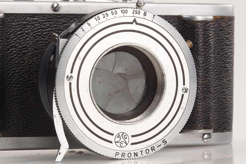 very rare version without rangefinder or viewfinder for use on Koristka microscopes, with M39 screw mount, with matching Prontor-S shutter, according to Marco Antonetto (Rectaflex The Magic Reflex, p.259) only 30 cameras have been made