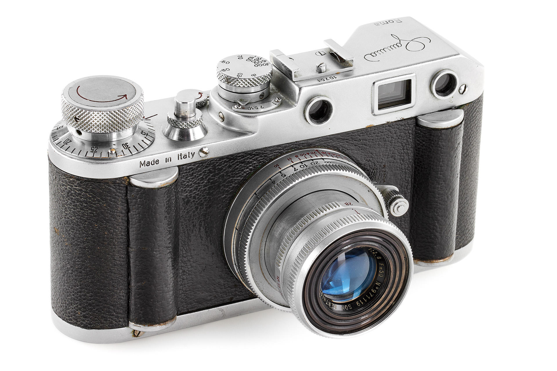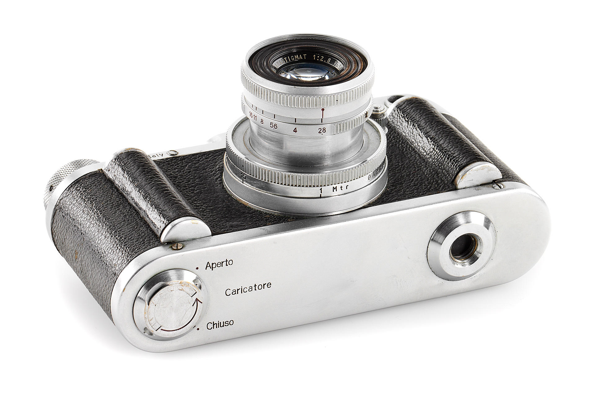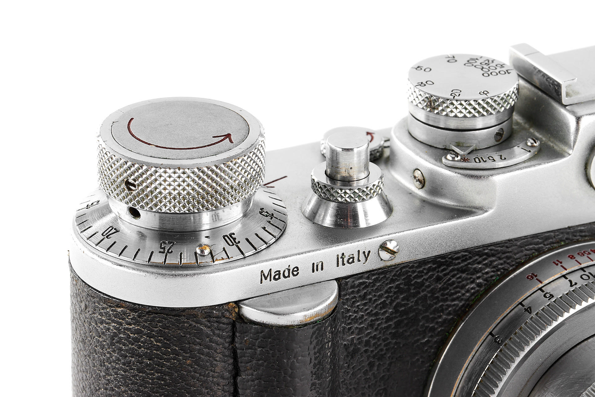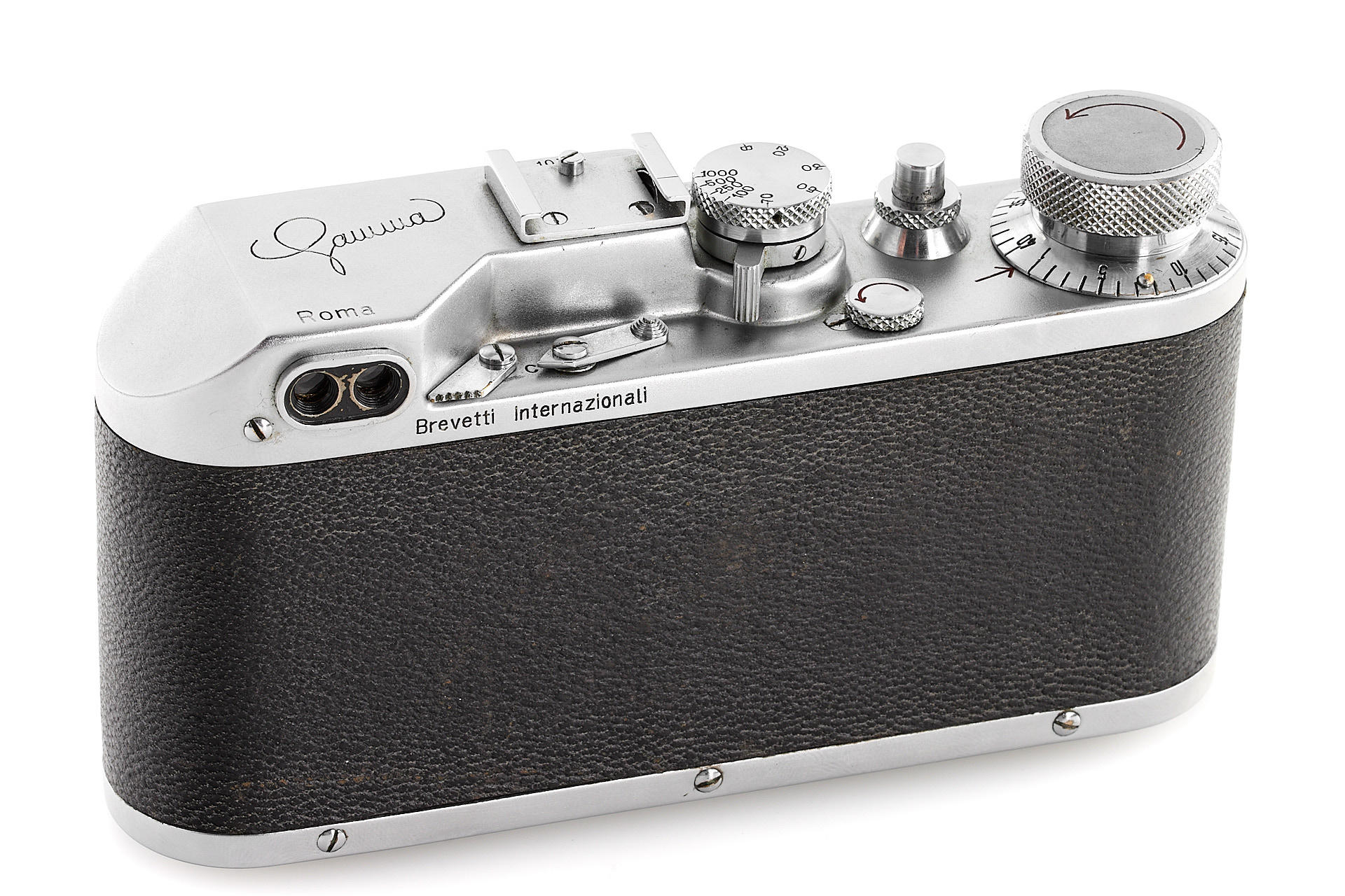 rare Italian Leica copy with M39 screw mount, here in beautiful, near mint condition and working order, rangefinder with low contrast, with very rare coated Som Berthiot Anastigmat 2.8/50mm no.971119, showing some cleaning marks on the front element, note the 'GAMMA' engraved on the barrel