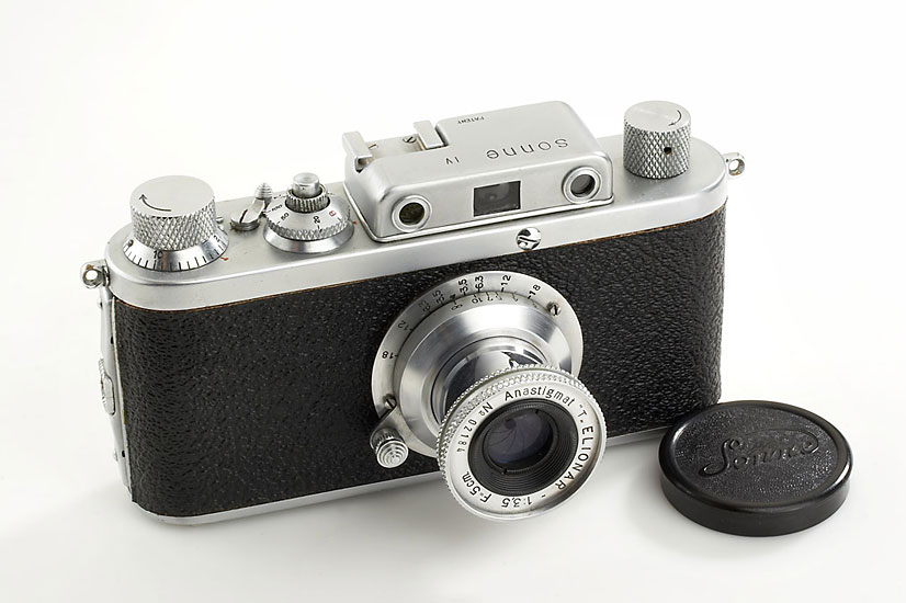 very rare camera, type II, in excellent original condition, matching "T" Elionar 3.5/5cm no.02184 (small cleaning mark on front element), original front cap and original case