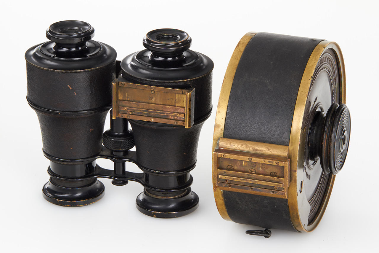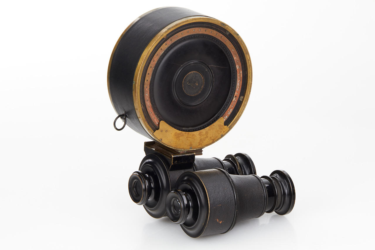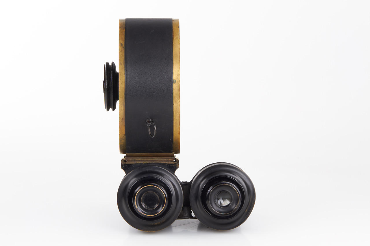 very early classic and extremely rare binocular-styled camera with cylindrical magazine for 50 dry collodion plates 40x40mm, the camera is in beautiful and original condition - less than 10 are known to exist