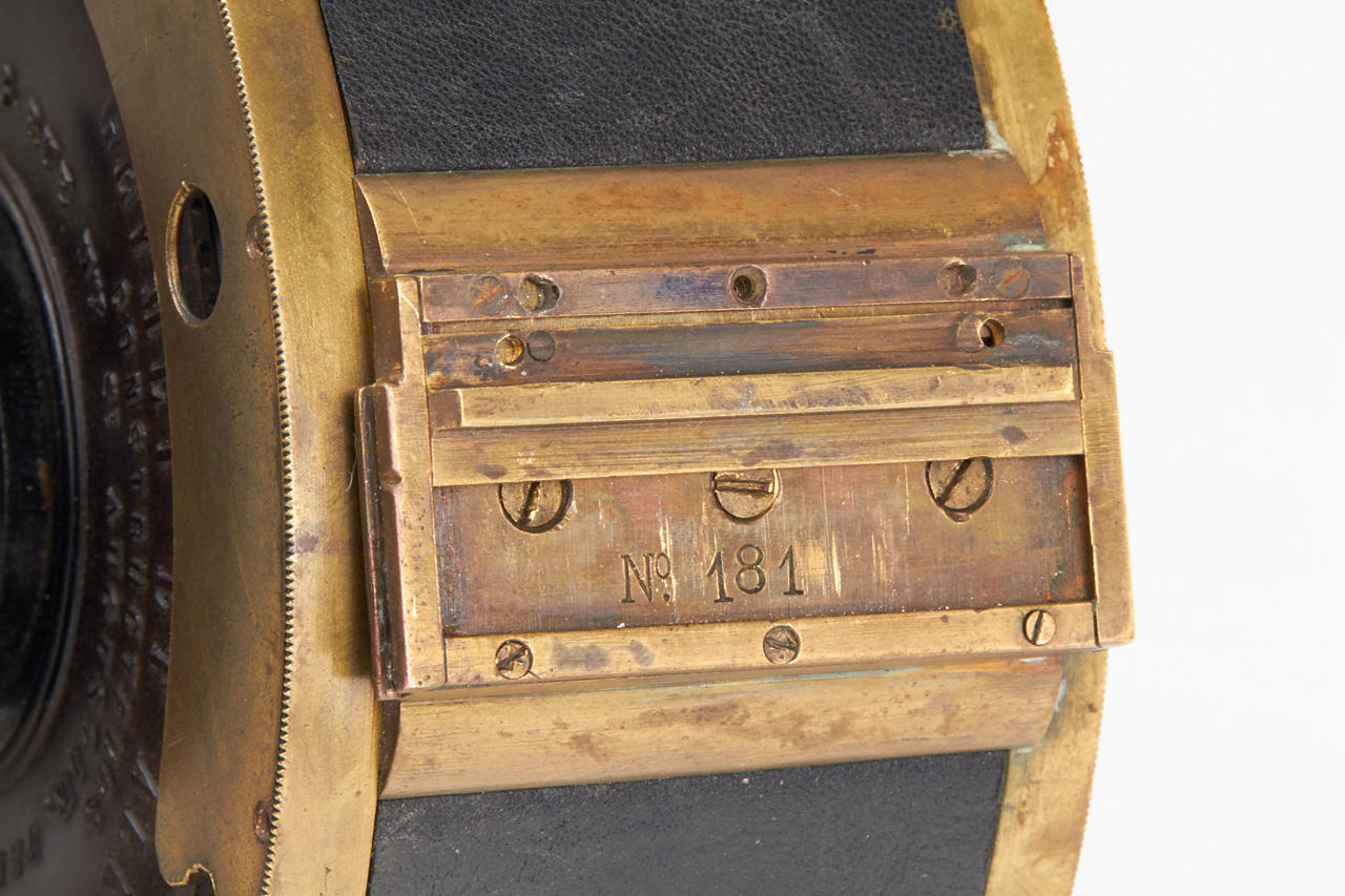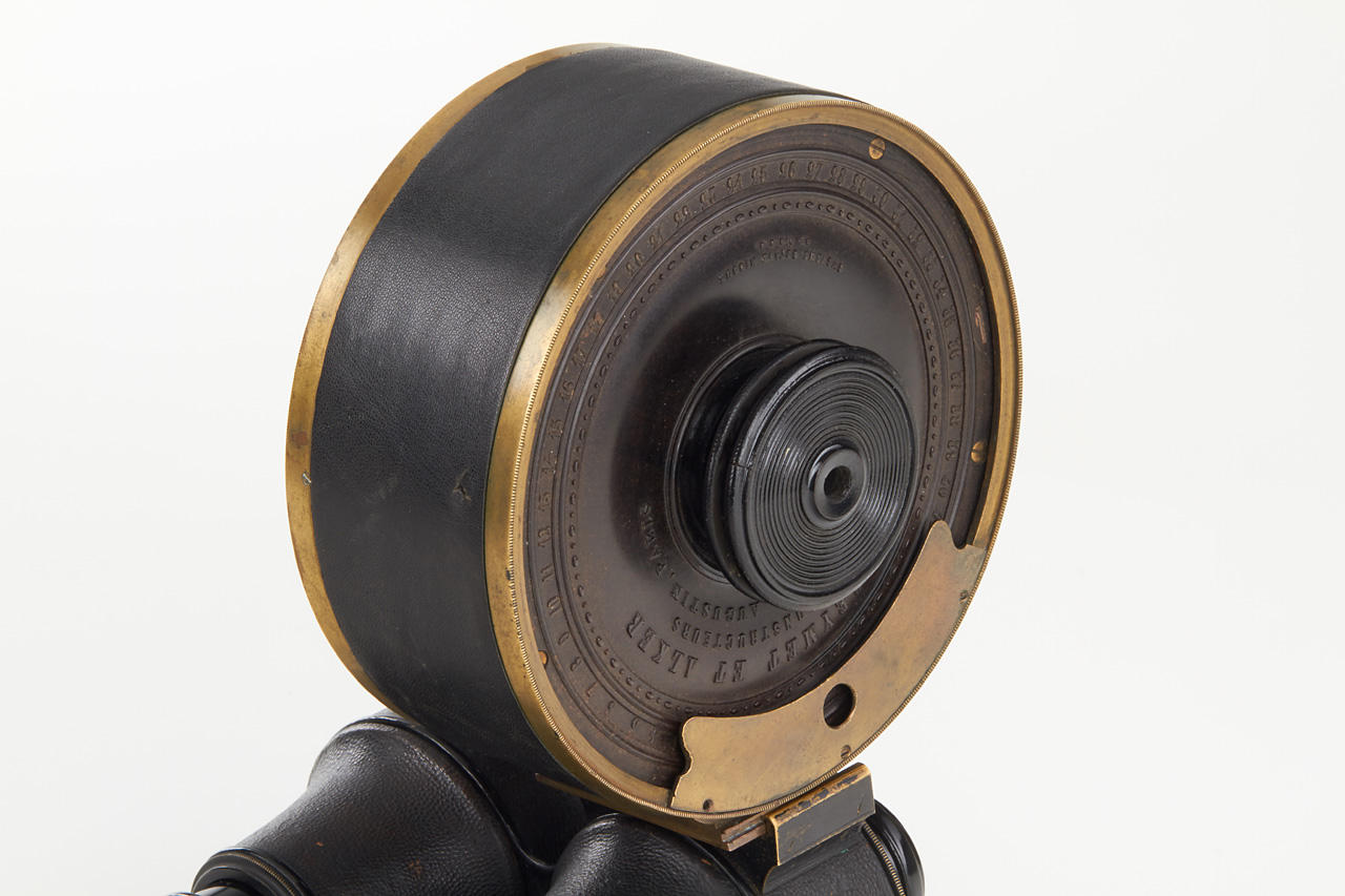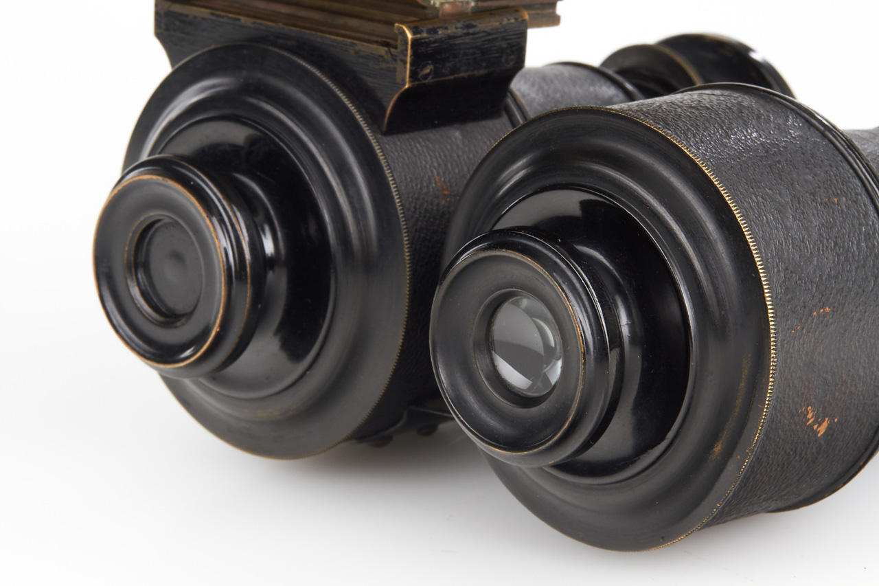 very early classic and extremely rare binocular-styled camera with cylindrical magazine for 50 dry collodion plates 40x40mm, the camera is in beautiful and original condition - less than 10 are known to exist