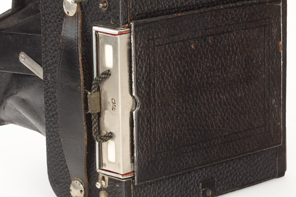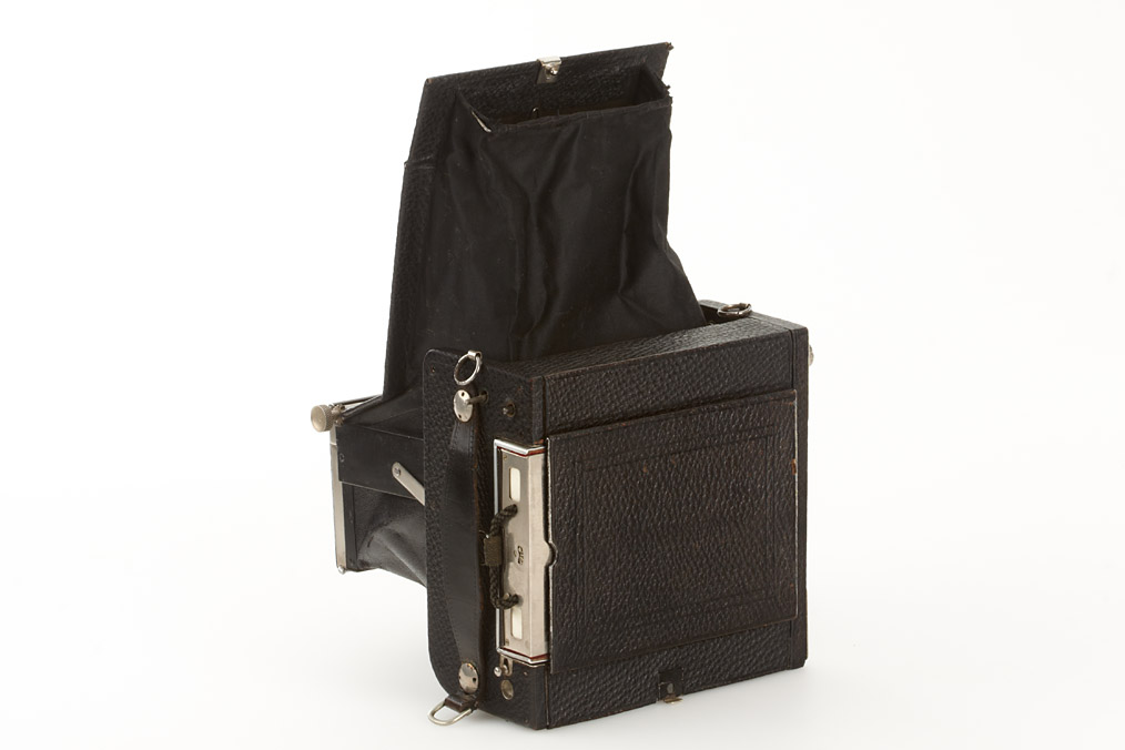 9x12cm, leather covered wood body, with a Giorno Anastigmat 6/150mm lens no.964 in variable shutter and magazine back, see Michel Auer The Guide to Antique Cameras no.1028