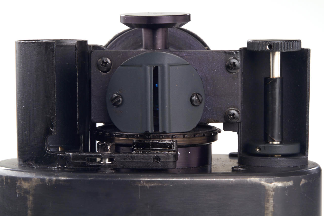 360° panoramic camera for 35mm film, rare example from the first 100 cameras in slightly different design to the later examples, in near mint condition and perfect working order, with two additional shutter blades for different exposure times, wire release and wooden maker's box