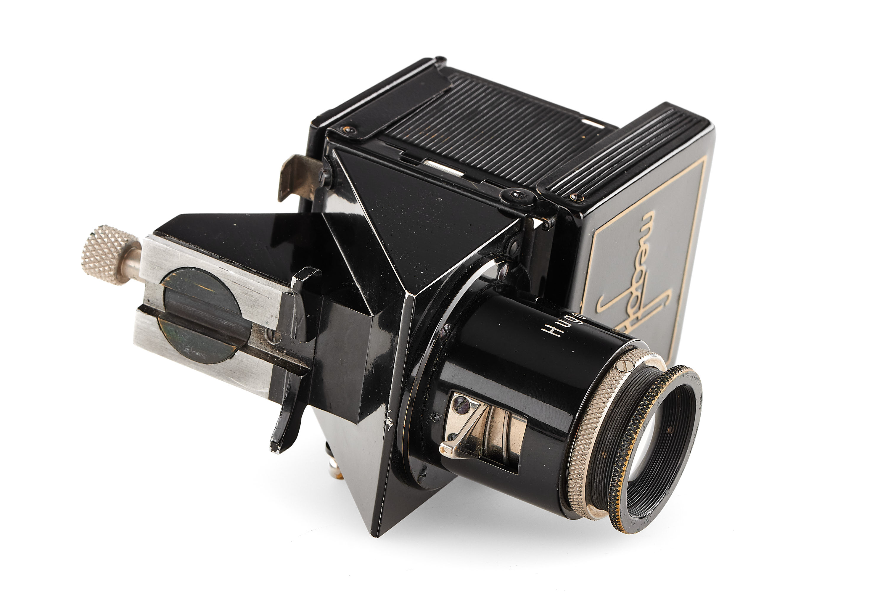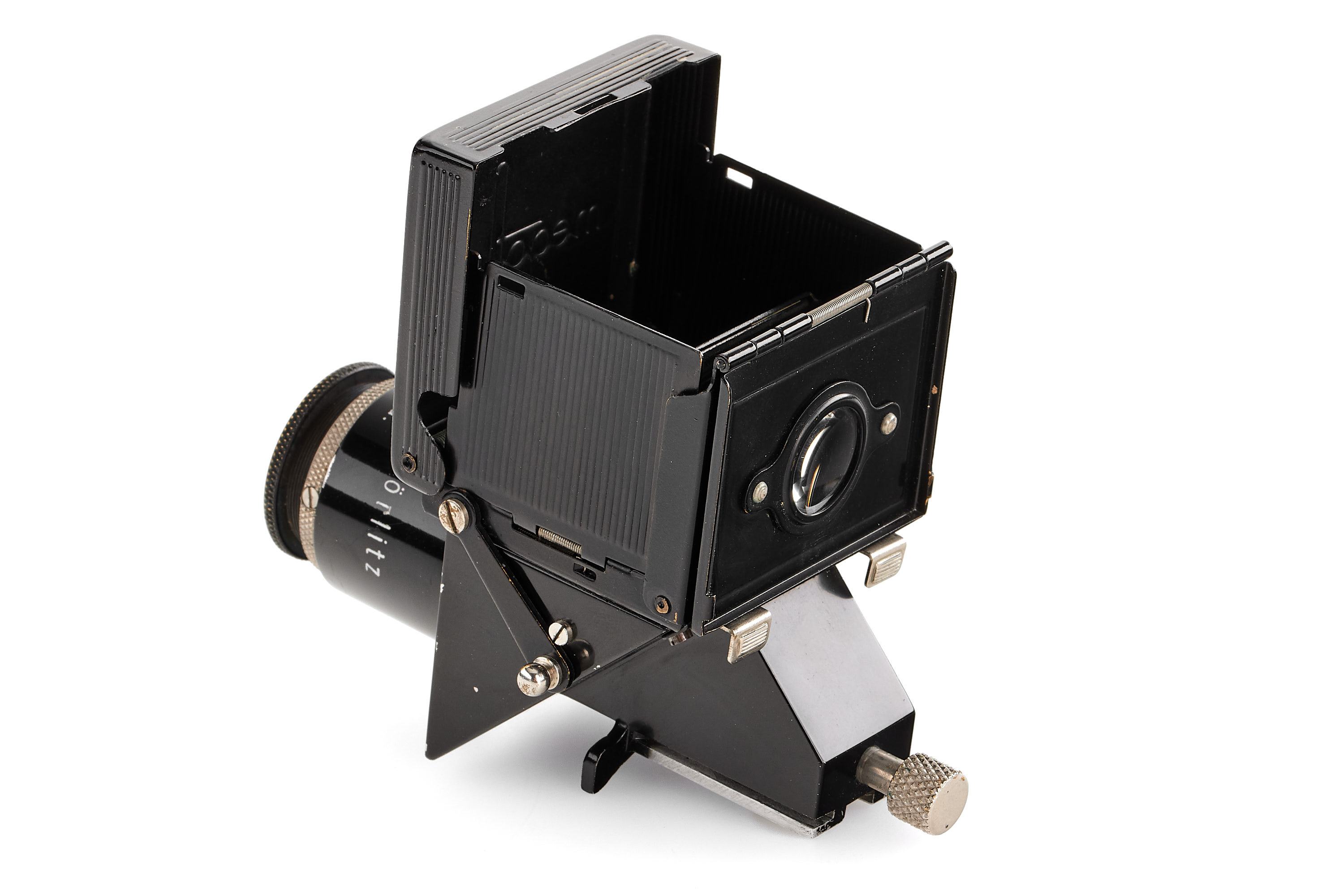 Beautiful and very early Görlitz Megoflex no.523 reflex-finder for Leica I Mod. A with Elmar, engraved D.R.P.a., in original, mint condition and working order (see: v. Einem 'Die 10 Varianten der klassischen Leica I A mit Elmar 1:3.5 F=50mm').