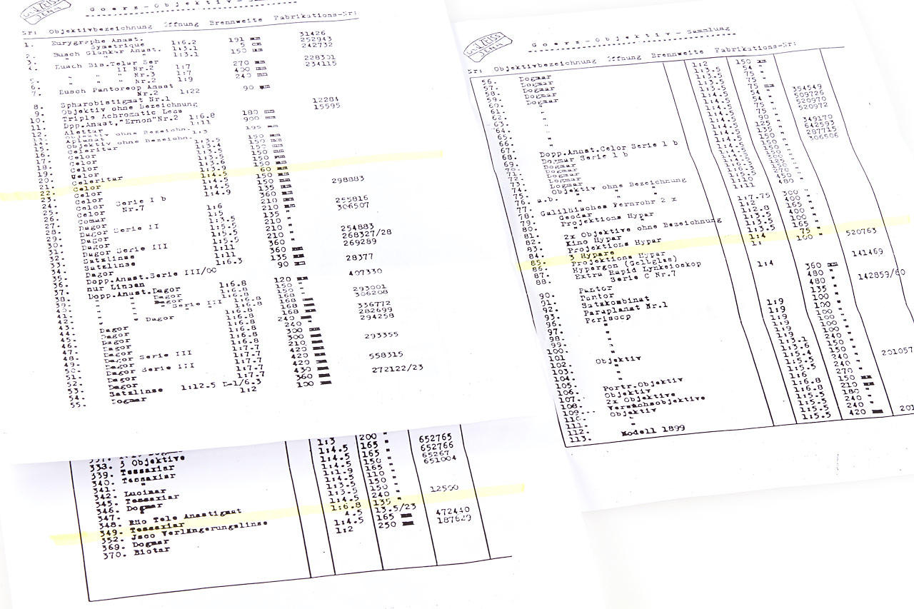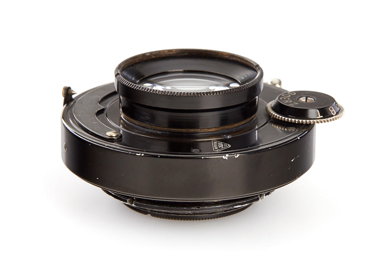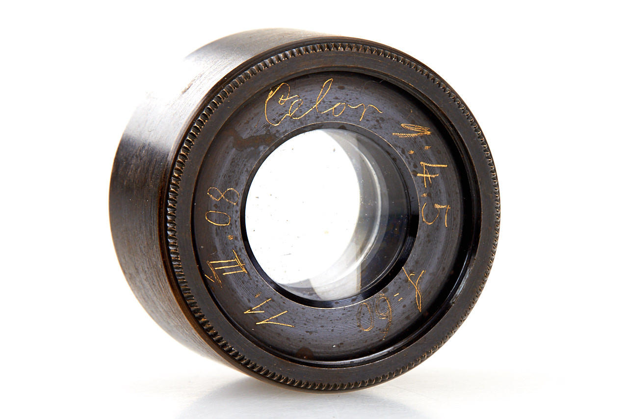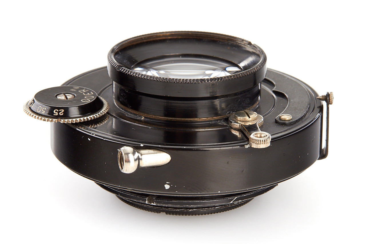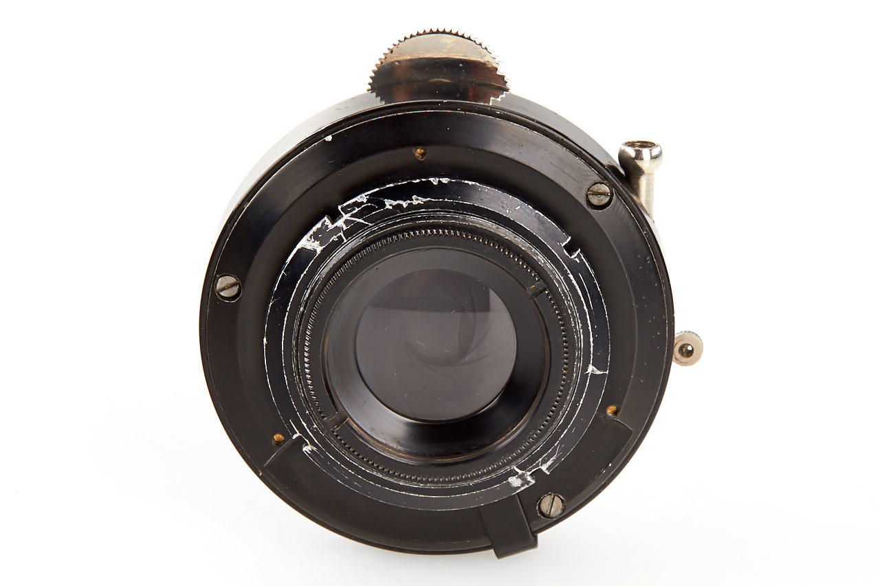 lot of five early Goerz prototype lenses: (1) Tessaxiar 6.8/13.5cm in Goerz shutter (no markings except for the shutter, inventory tag), (2) Celor 4.5/60mm (lens head without diaphragm, hand-engraved with lens name and date 11.III.08), (3-5) three Hypar 4/75mm (all hand-engraved with lens name, dated 8.VI.12)