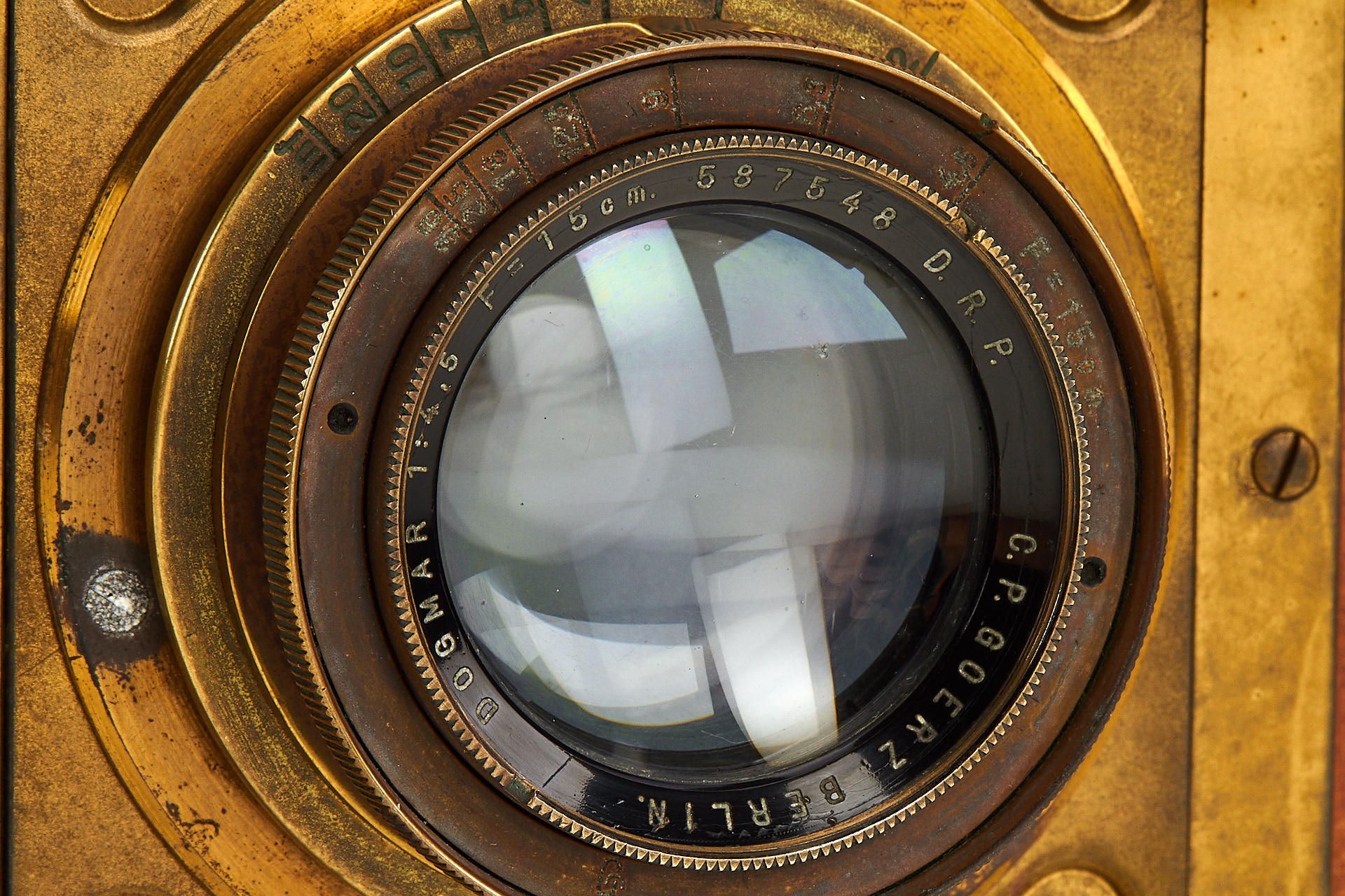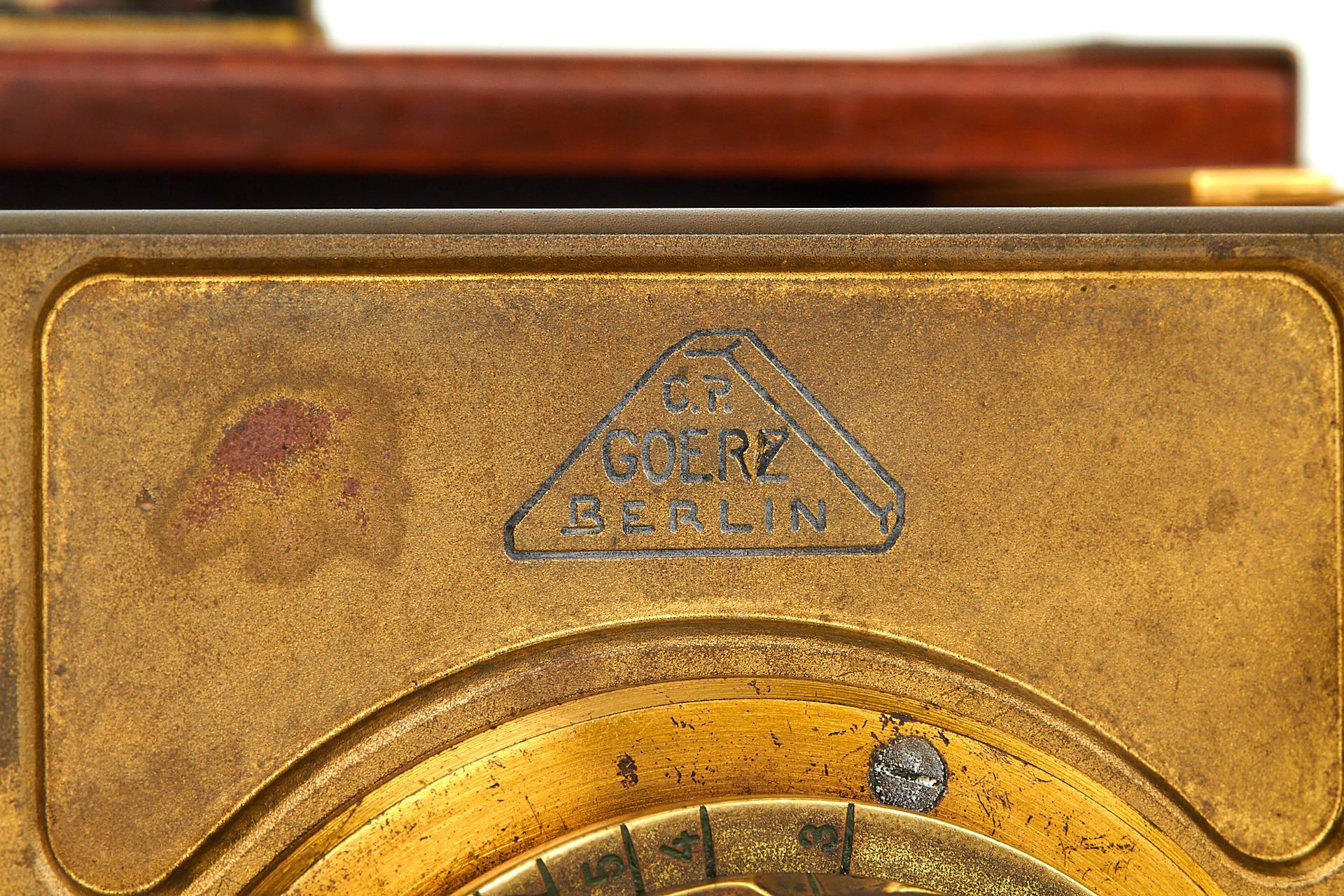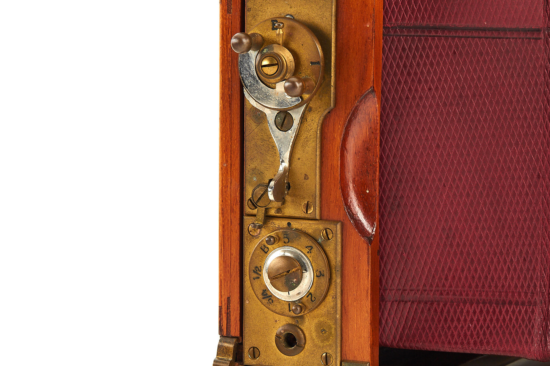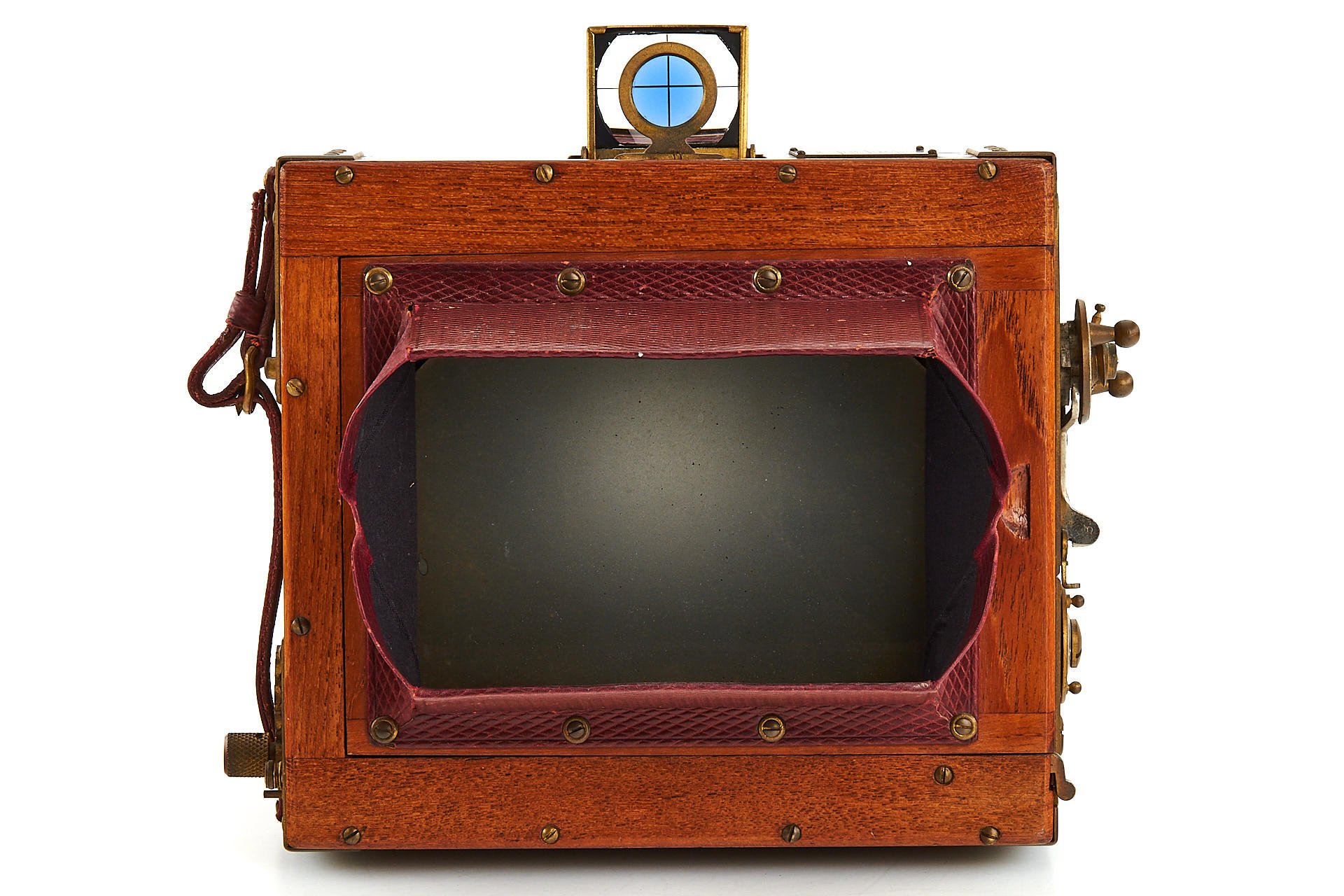 a very attractive tropical camera for 9x12cm exposures on plates, in beautiful, original condition, red bellows and brass fittings, Dogmar 4.5/15cm no.587548