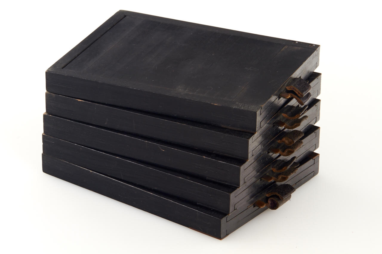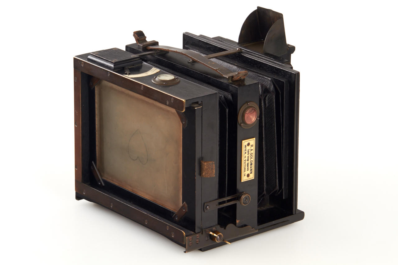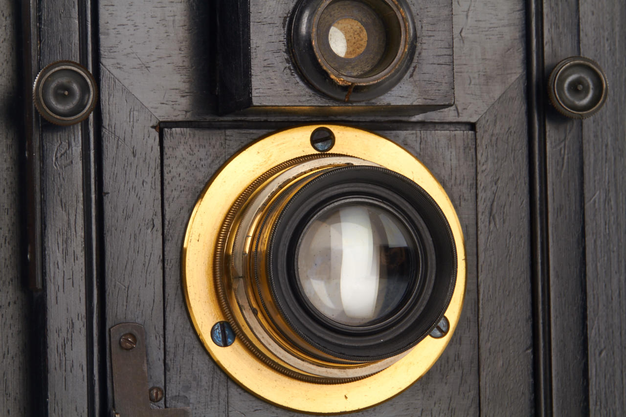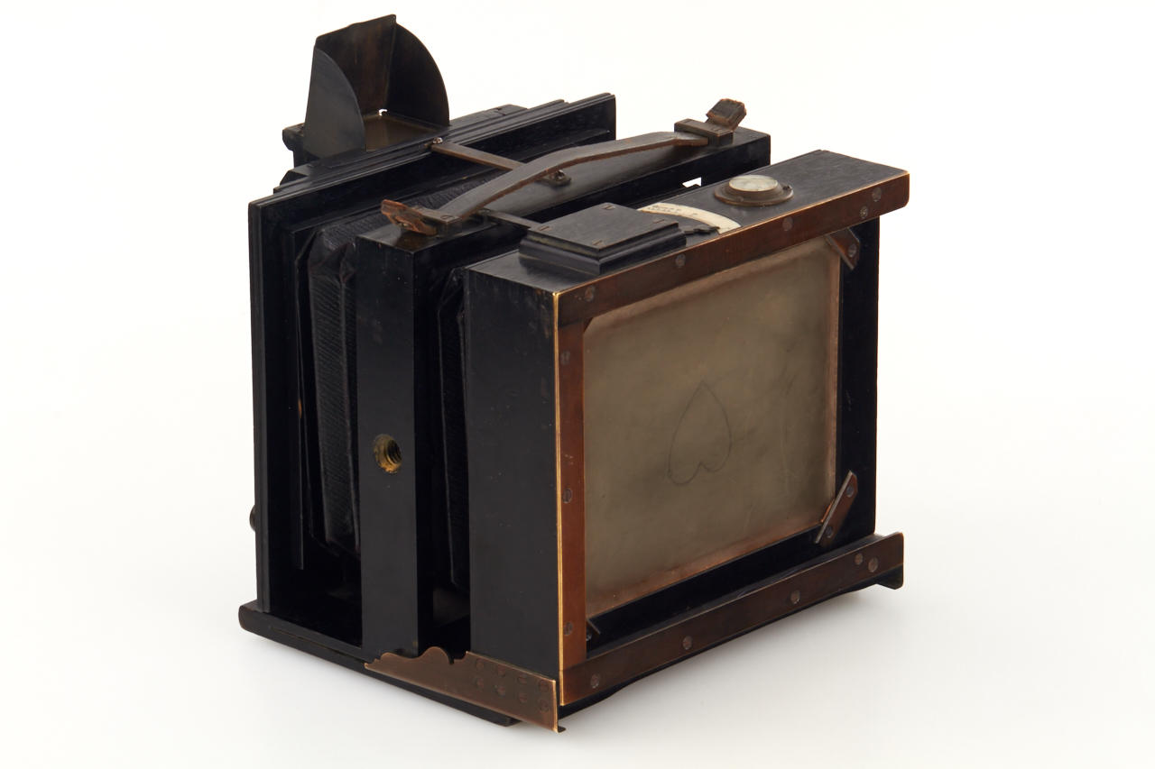 rare advanced camera for 10x13cm exposures, in beautiful condition, ebonized wooden body with complete brass fittings, original bellows, working Guillotine shutter, with Voigtländer Triple Anastigmat III 7.7/140mm no.50800 and Rodenstock Weitwinkel-Bistigmat no.29985, ground glass, five wooden double film holders, in original carrying case