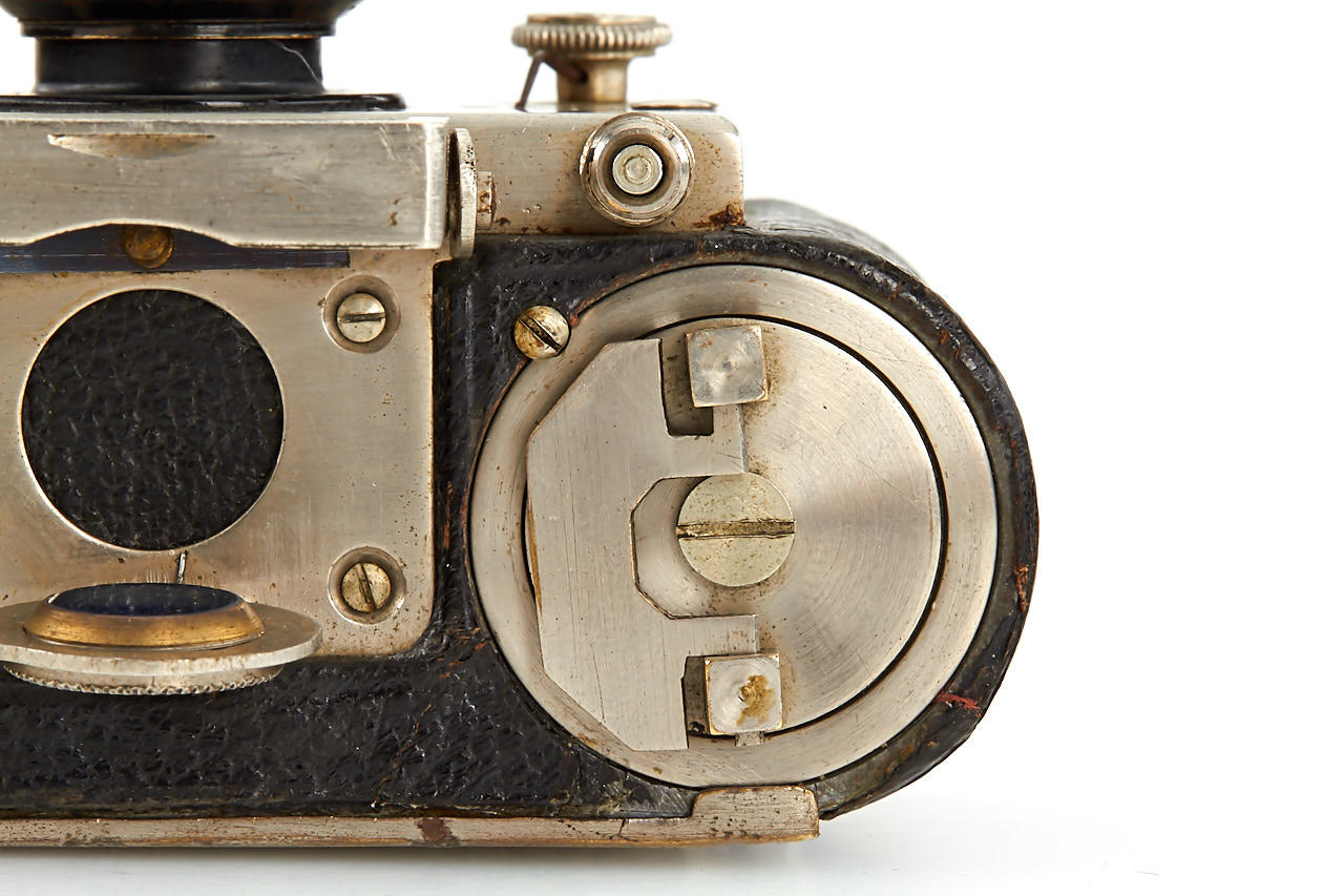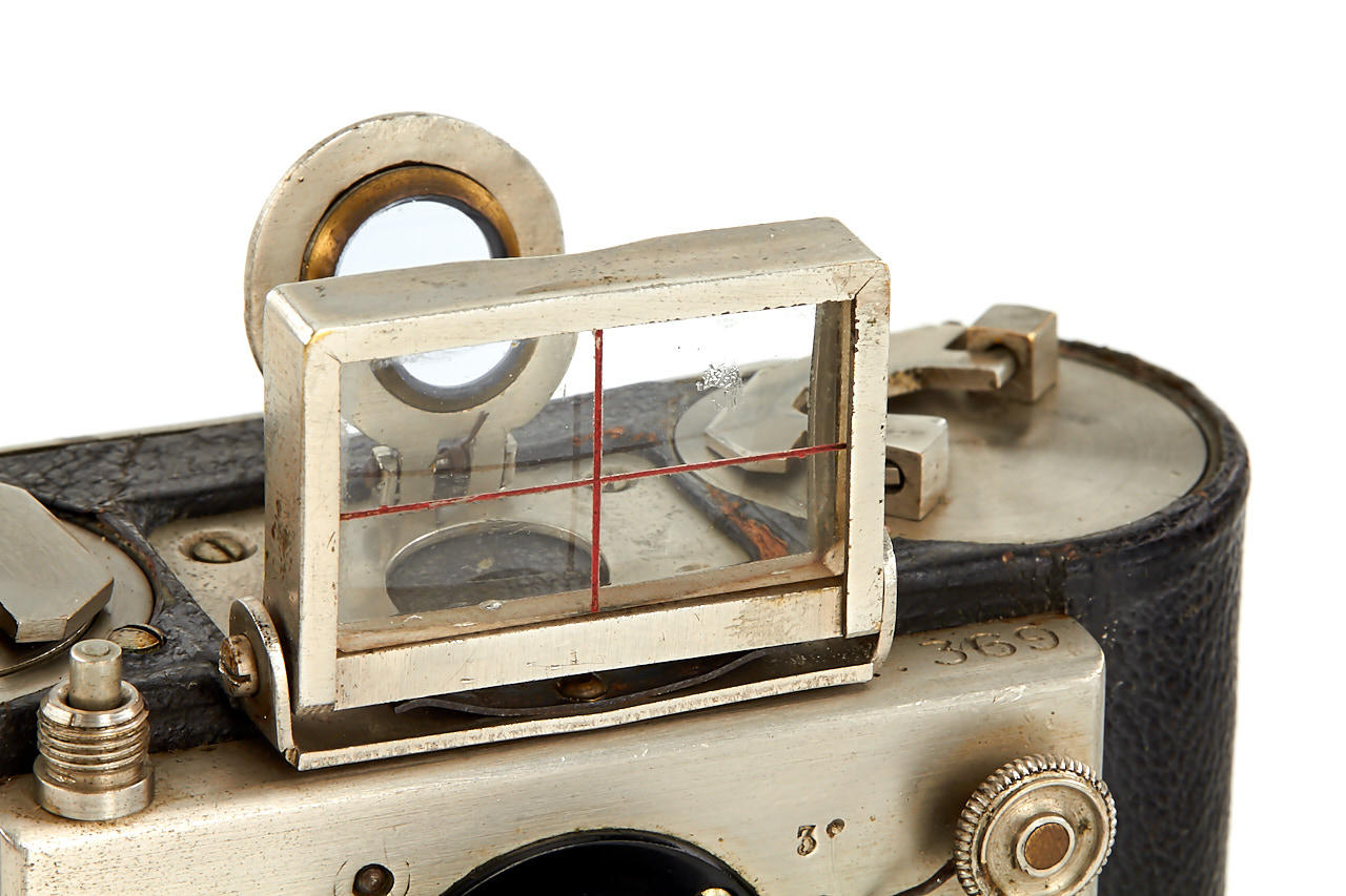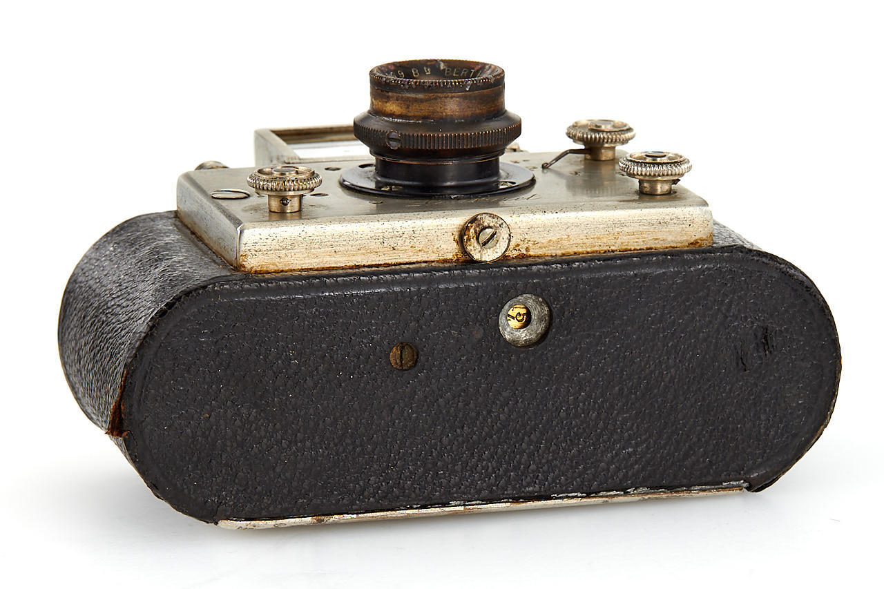 Leica forerunner - very early compact 35mm camera for 24x35mm exposures, black leather covering, original nickel fittings, with Som Berthiot Flor F:4.5 no.193769, in very fine condition