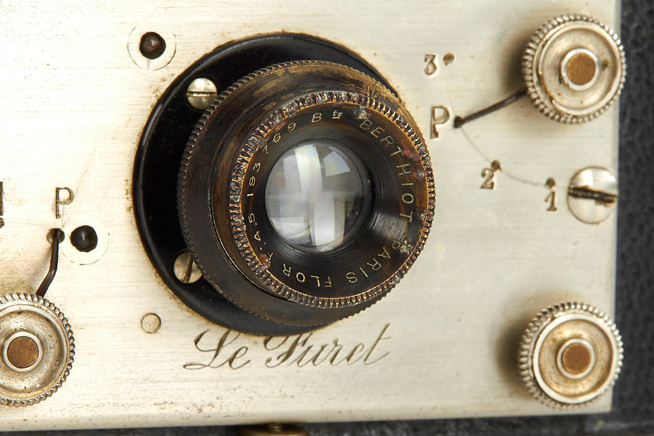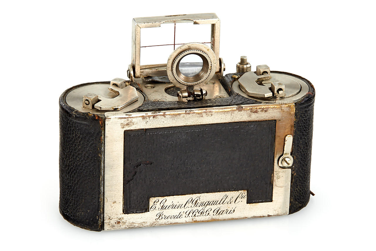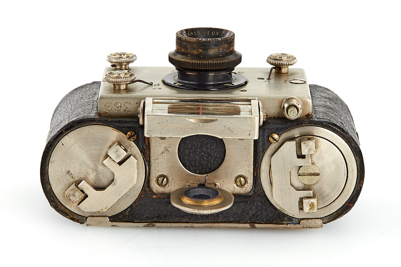 Leica forerunner - very early compact 35mm camera for 24x35mm exposures, black leather covering, original nickel fittings, with Som Berthiot Flor F:4.5 no.193769, in very fine condition