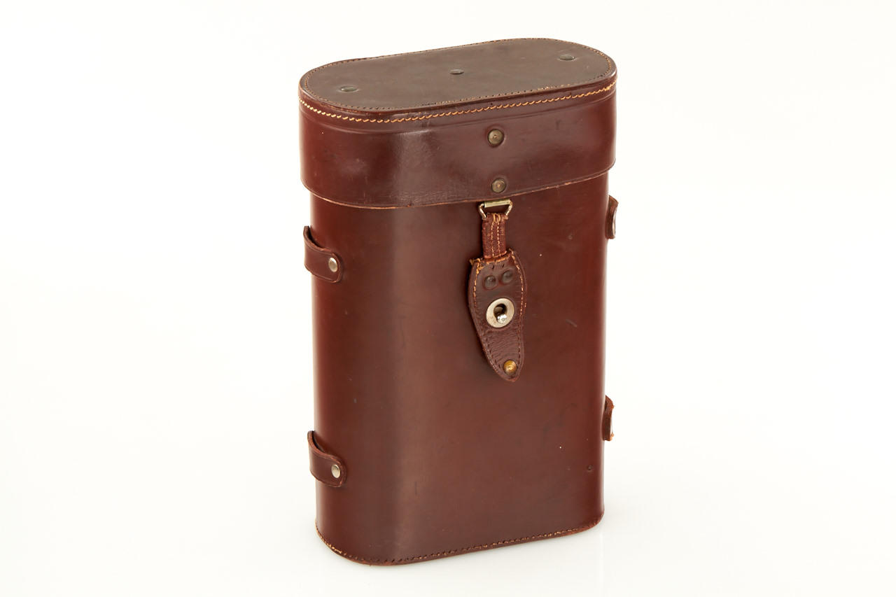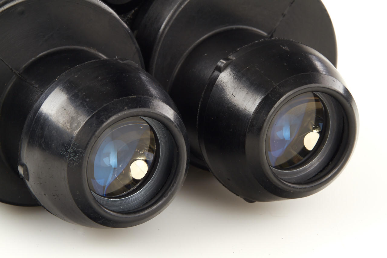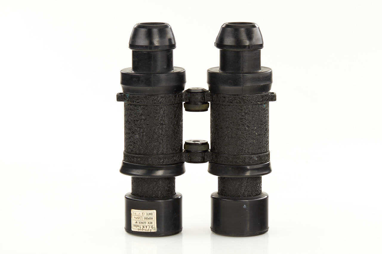 French marine roof prism binoculars in very good condition, service sticker from 1975, with strap and leather case