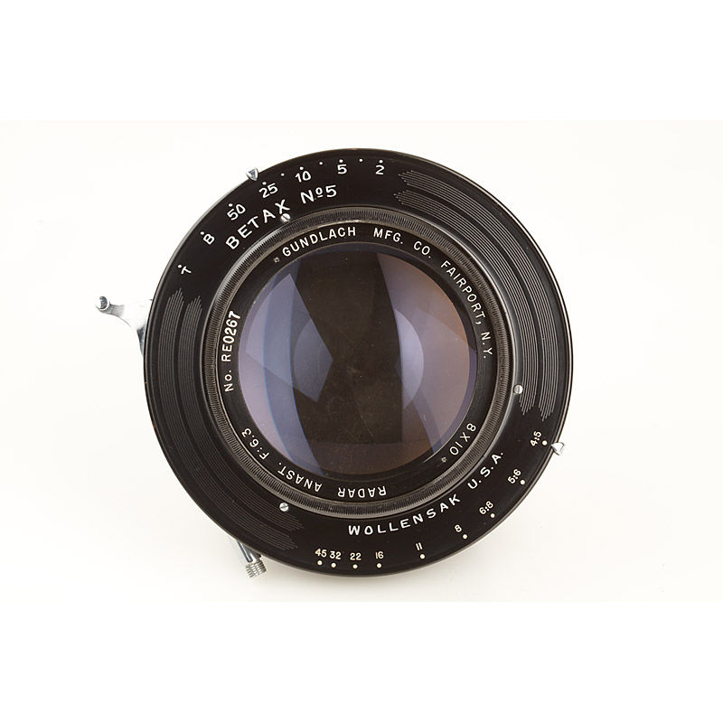 NASA used Gundlach 8x10' lens in very fine condition, good lenses, in Betax No.5 shutter, original front cap, mounting ring, silver sticker with inscription 'NASA 98310 Langley Field'