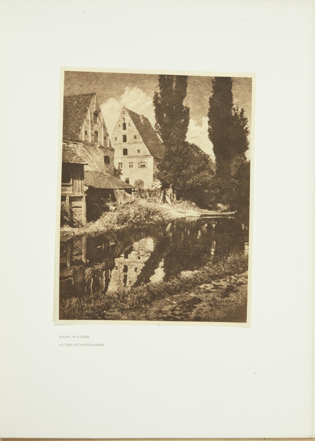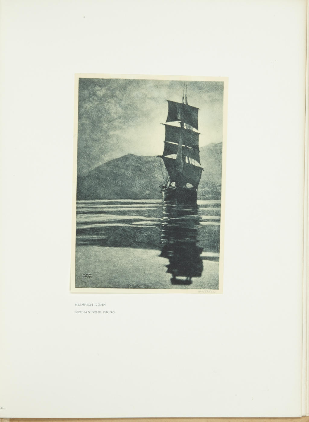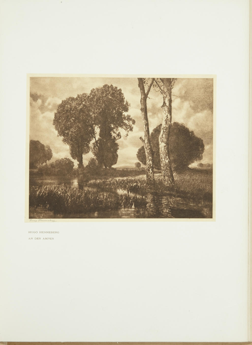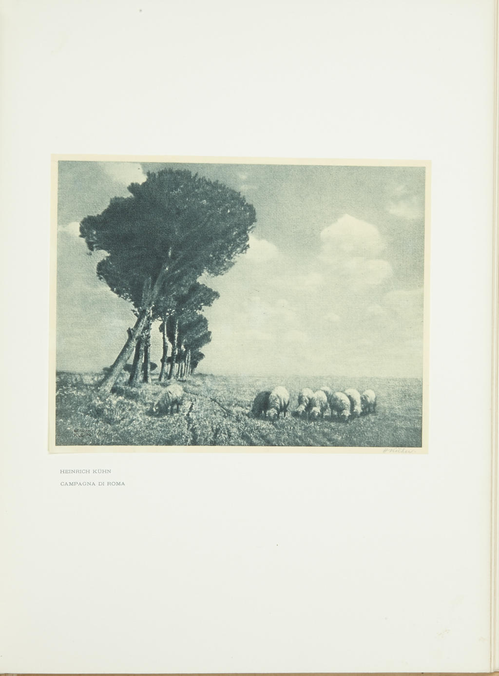Verlag Wilhelm Knapp Halle, edited by Fritz Matthies-Masuren 20 Heliogravures, 25 Zinc gravures, each of them mounted on paper inside the book (c. 45 x 33 cm (17.7 x 13 in) ), book with linen cloth and gilt letterpress title, the zinc gravures mounted in text section (introduction by Matthies-Masuren), the heliogravures in image section, each heliogravure covered with tissue paper and signed by the respective photographer in pencil in the margin, most of them signed in the negative as well, the book numbered “8” in pencil on the first title page, Victor Thonet collection label inside Die Mappe mit 20 handsignierten Heliogravüren und 25 Zinkgravüren nach Gummidrucken von Henneberg, Kühn und Watzek, war die erste ausschließlich dem ‘Trifolium’ gewidmete Publikation. Herausgegeben wurde sie 1902 von Fritz Matthies-Masuren im renommierten Wilhelm Knapp Verlag in Halle. Matthies-Masuren, Künstler und Publizist, widmete sich ab 1898 vermehrt dem Trifolium und war ein unermüdlicher Promotor des Gummidrucks; der für ihn die technisch anspruchsvollste und künstlerisch wertvollste Methode der Kunstfotografie darstellte. Das gut erhaltene und höchst seltene Exemplar kommt aus der privaten Bibliothek von Victor Thonet und trägt die handschriftliche Nummerierung “8”. Die Nr. 2 war das private Exemplar Heinrich Kühns; insgesamt dürften nur wenige signierte Sammlerexemplare angefertigt worden sein. Einige der darin vorkommenden Motive wurden ein paar Jahre später (1906) dem internationalen Publikum in Camera Work 13 präsentiert. Kühns originale Stegemann Kamera wird am 22. März in der WestLicht Kamera-Auktion versteigert. The portfolio consisting of 20 signed heliogravures and 25 zinc gravures after gum prints by Henneberg, Kühn and Watzek, was the first publication dedicated entirely to the ‘Trifolium.’. It was issued in 1902 by Fritz Matthies-Masuren in the prestigious Wilhelm Knapp Verlag in Halle. Matthies-Masuren, artist and writer, devoted himself from 1898 to the Austrian Trifolium and was a tireless promoter of the gum print, which was in his opinion the most technically and artistically valuable method of art photography. The well-preserved and rare copy comes from the private library of Victor Thonet and bears the handwritten numbering “8”. The no. 2 was the private copy of Heinrich Kühn and it is believed that only a few signed collector’s editions have been made. Some of the appearing motifs were presented to an international audience in Camera Work 13 in 1906. Kühn's original Stegemann camera will be auctioned on March 22nd in the WestLicht camera auction.