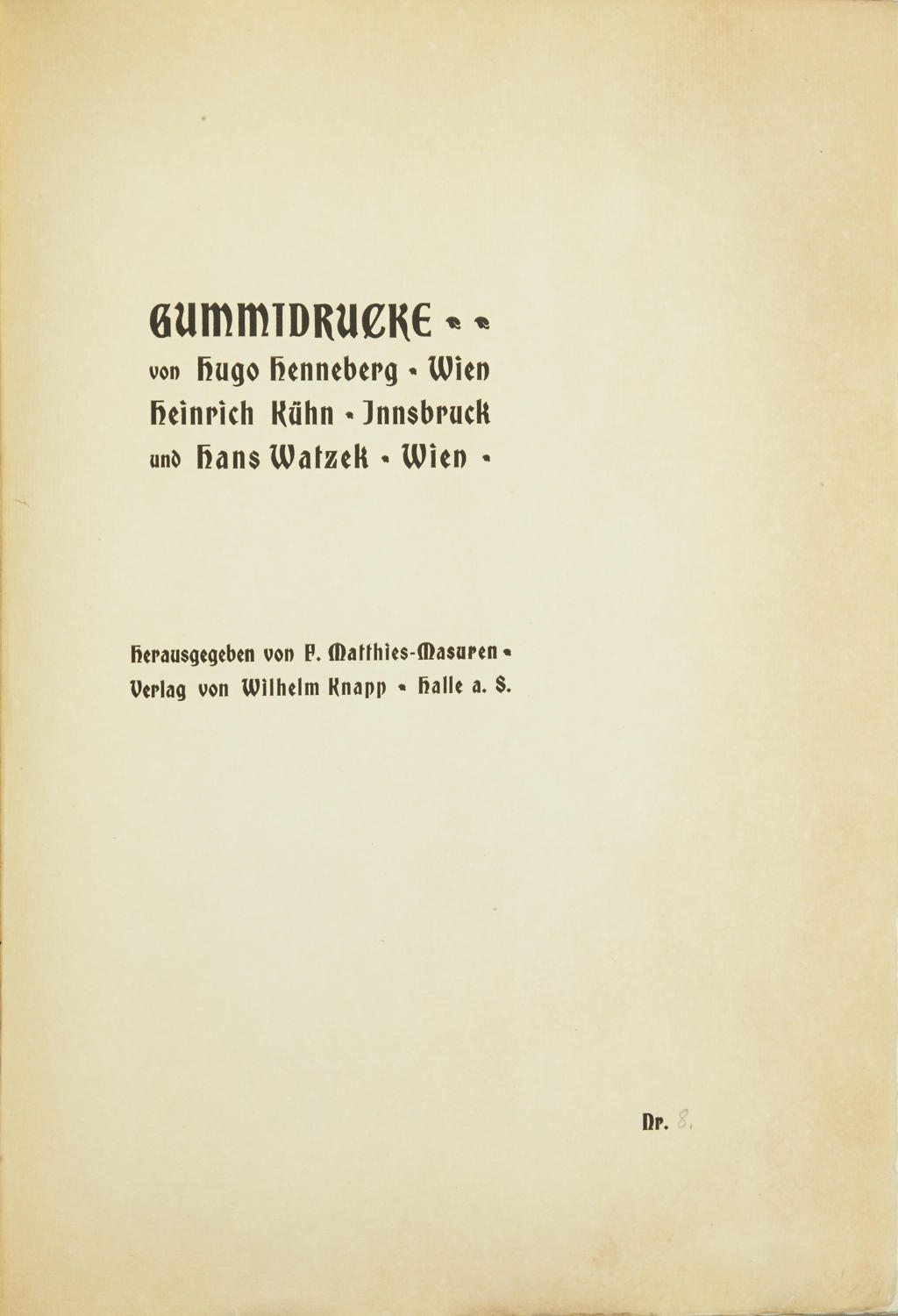 HEINRICH KÜHN (1866–1944) / HANS WATZEK (1848–1903) / HUGO HENNEBERG (1863–1918) ‘Gummidrucke von H. Kühn, H. Watzek, H. Henneberg’