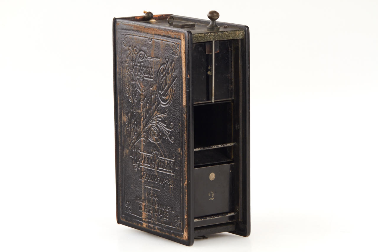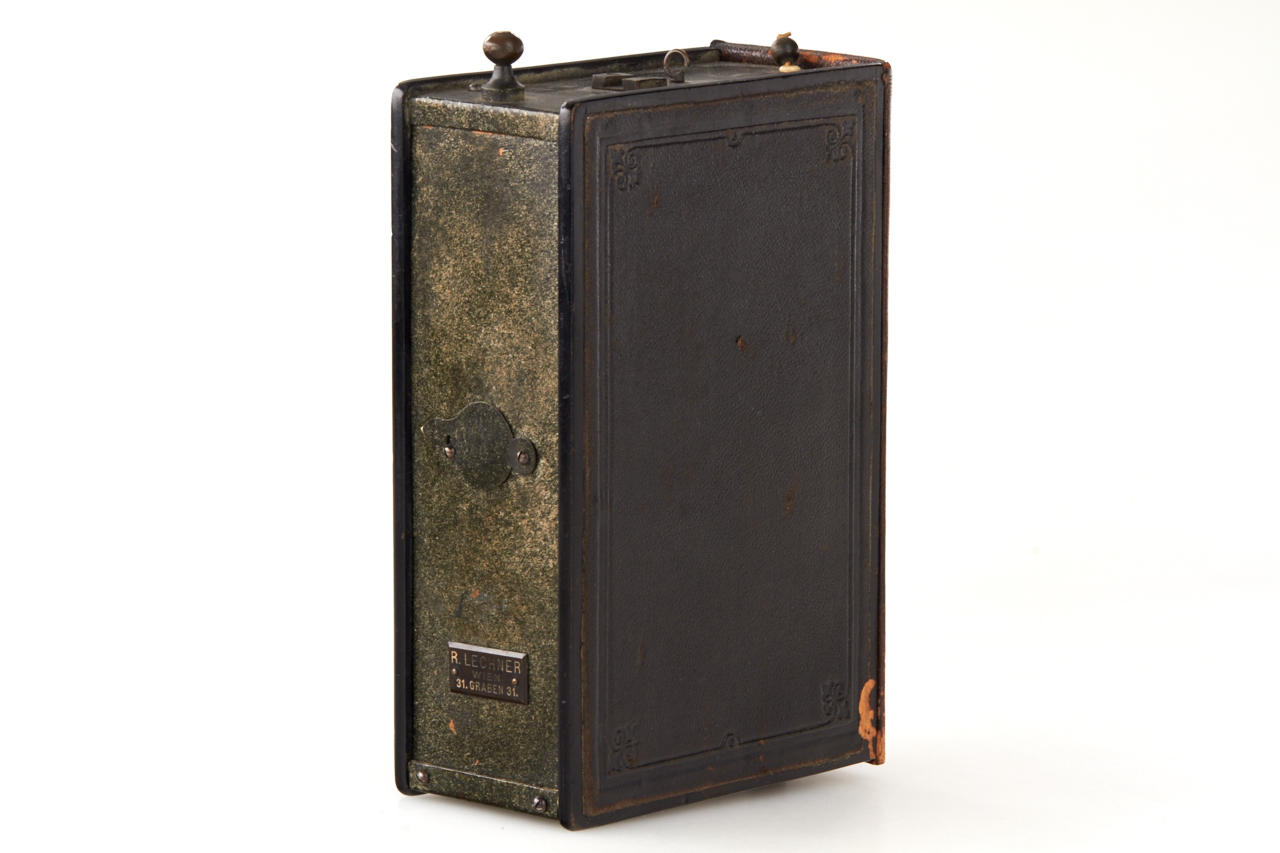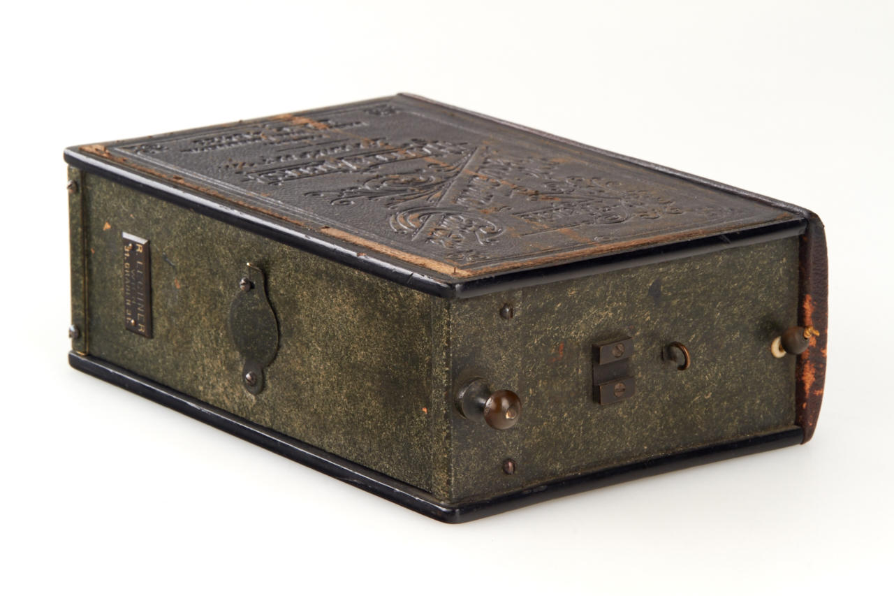 very rare book detective camera in very fine original condition, classic camera, uncommon by Haake & Albers, Frankfurt, with small dealers plate engraved 'R.LECHNER WIEN 31.GRABEN 31.'