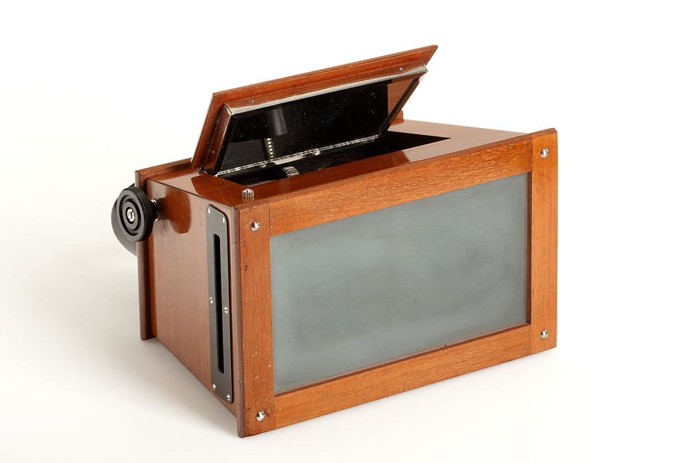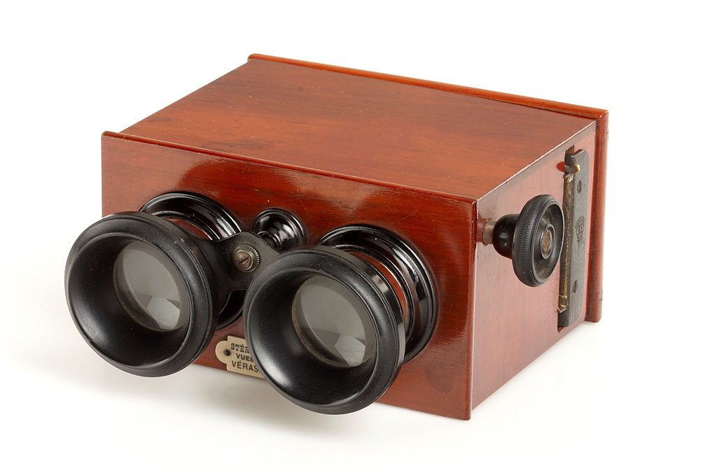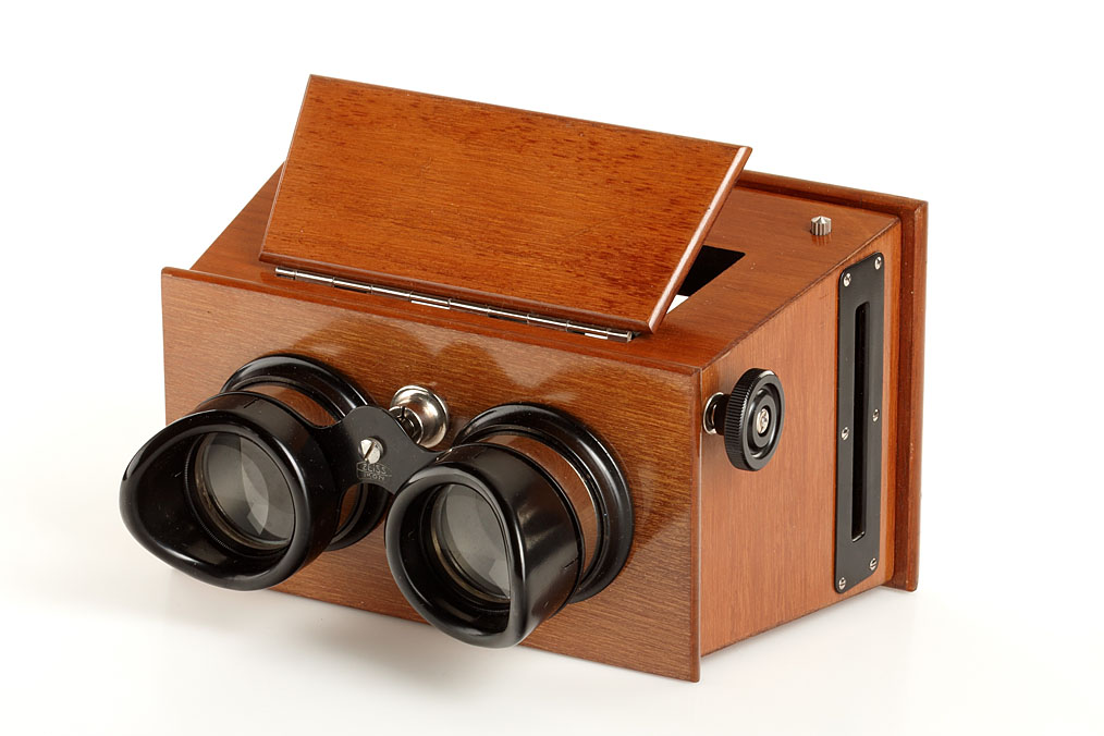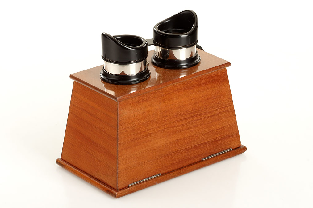 two wooden stereoscopes in very good original condition, both with adjustable eye base and focus (1) Zeiss Ikon viewer for 6x13 format with hinged mirror in near mint condition, (2) Verascope Richard viewer for 45x107 format with hinged mirror, in very nice condition. Together with the viewers comes a set of private stereo slides from between 1909 and 1904, among them 24 excellent Autochrome slides.