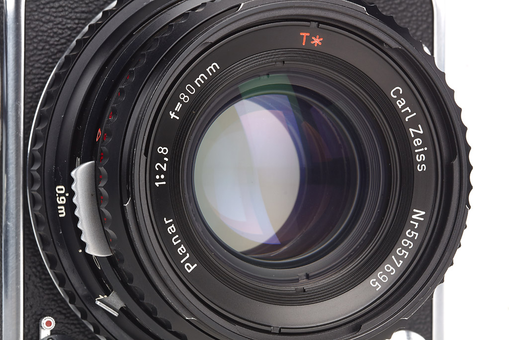 chrome special edition body no.0054 in almost mint condition and good working order with waist-level finder, magazine 12 no.UI440835, black Planar 2.8/80mm T* no.5657695 (cap), spare magazine 16 no.UR322324, exposure meter knob, strap, instructions