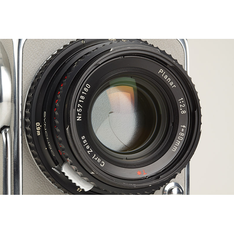 from an edition of 1500 cameras with grey leather covering (special number 0099), complete with Planar 2.8/80mm T* no.5718180, magazine no.RH3214713, almost new with all papers in maker's box