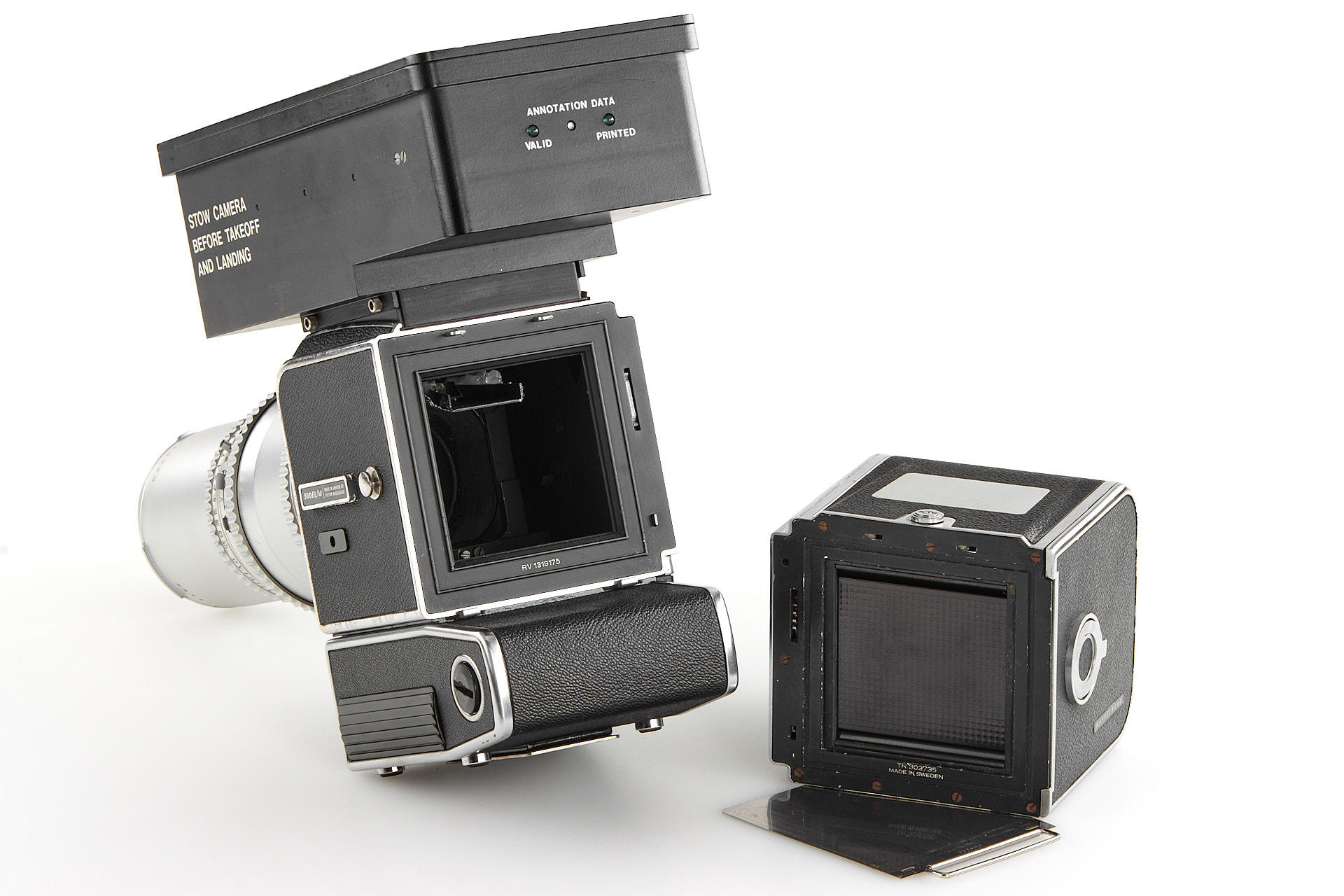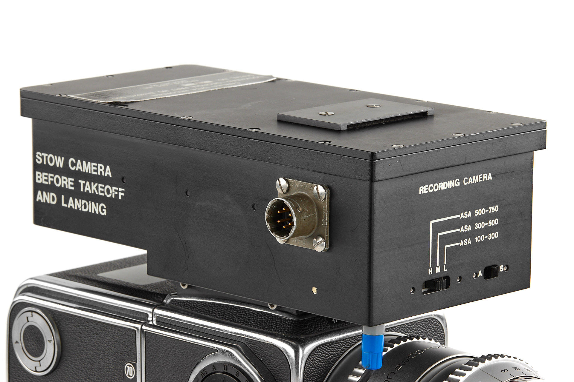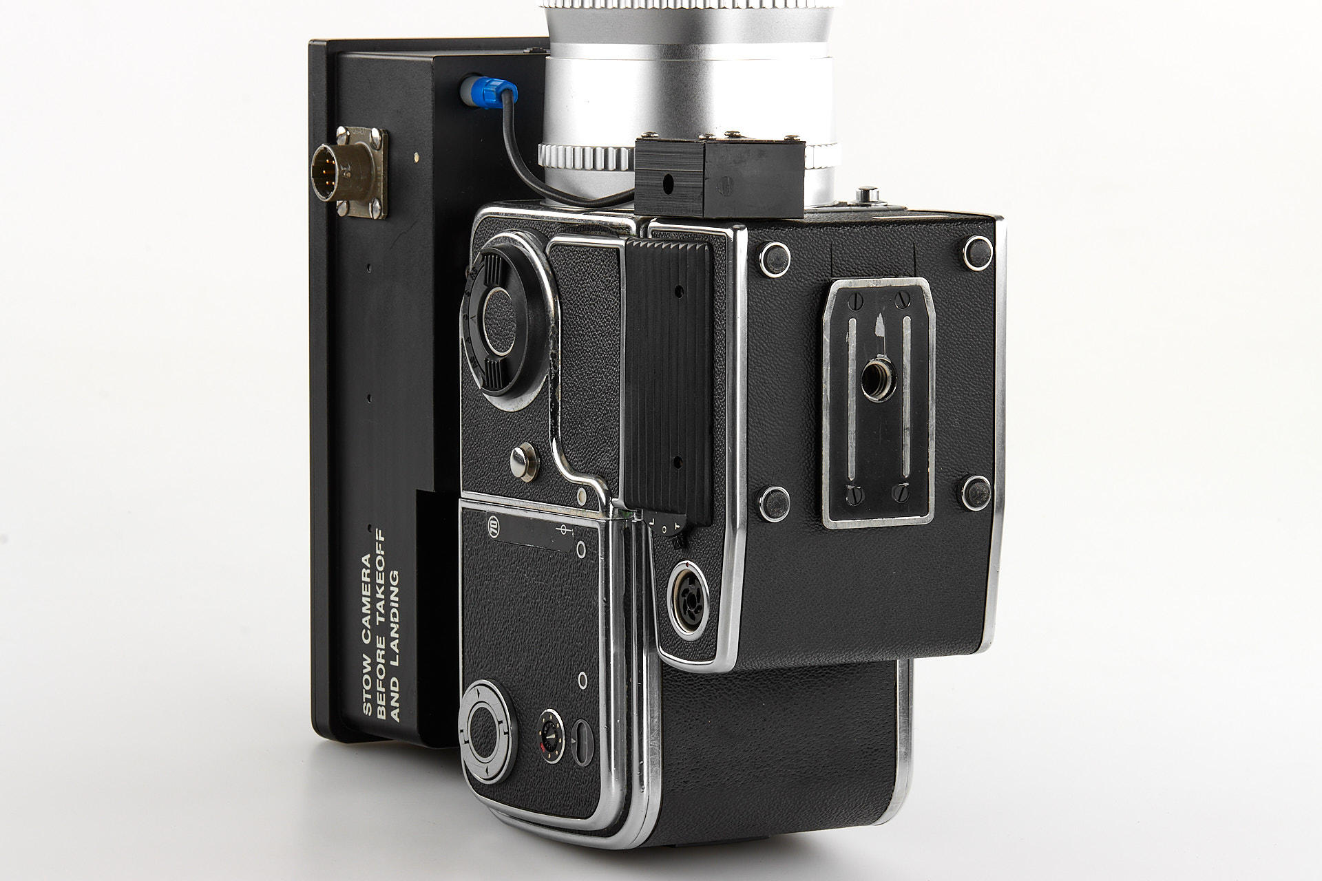 Special aerial reconnaissance camera, modified to imprint fligt data on the film, body no.RV1319175, with A70 magazine no.TR303735, viewfinder replaced with with the data printing device, incl. chrome Sonnar 5.6/250mm no.5613457, made for Lockheed by Epsilon Labs