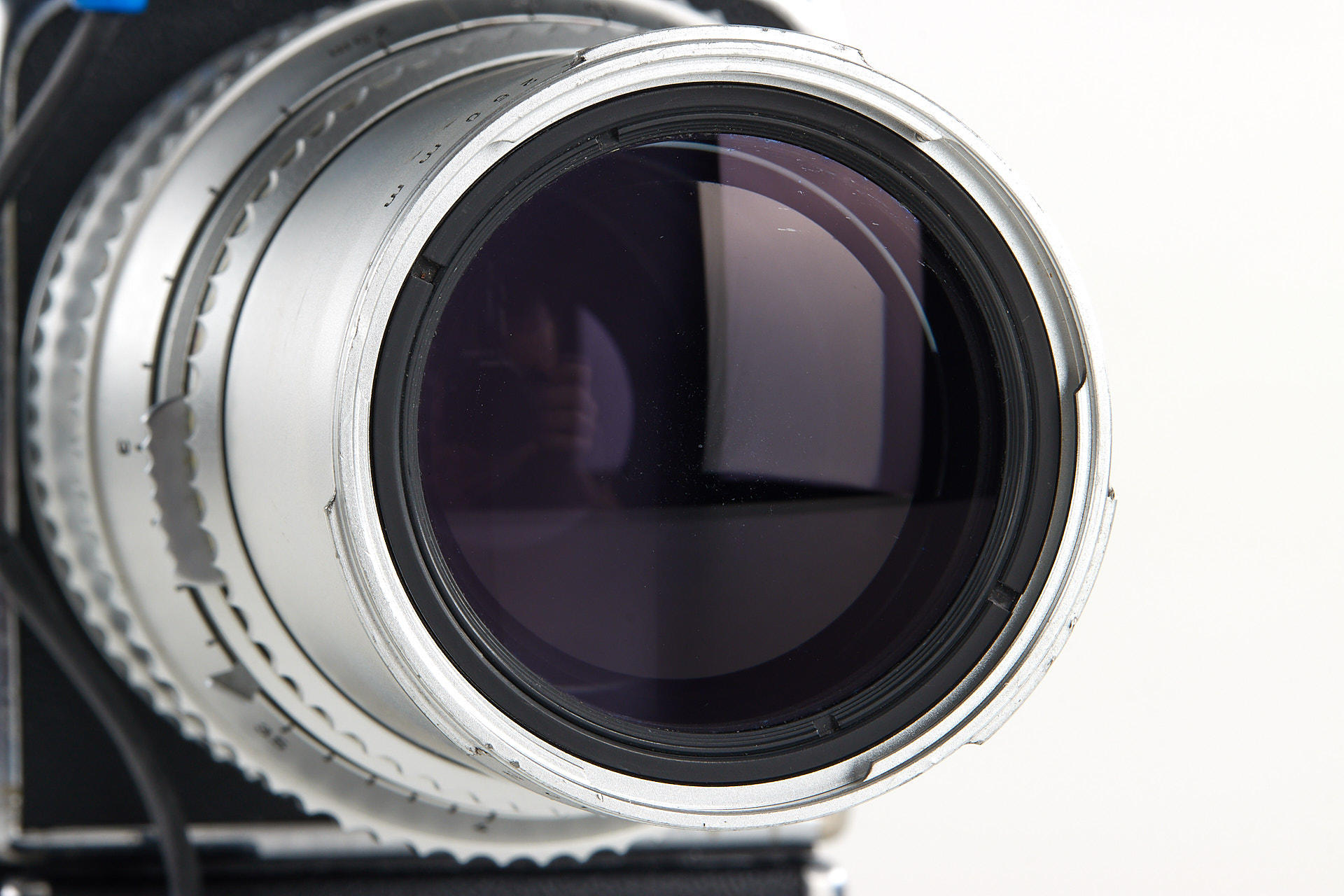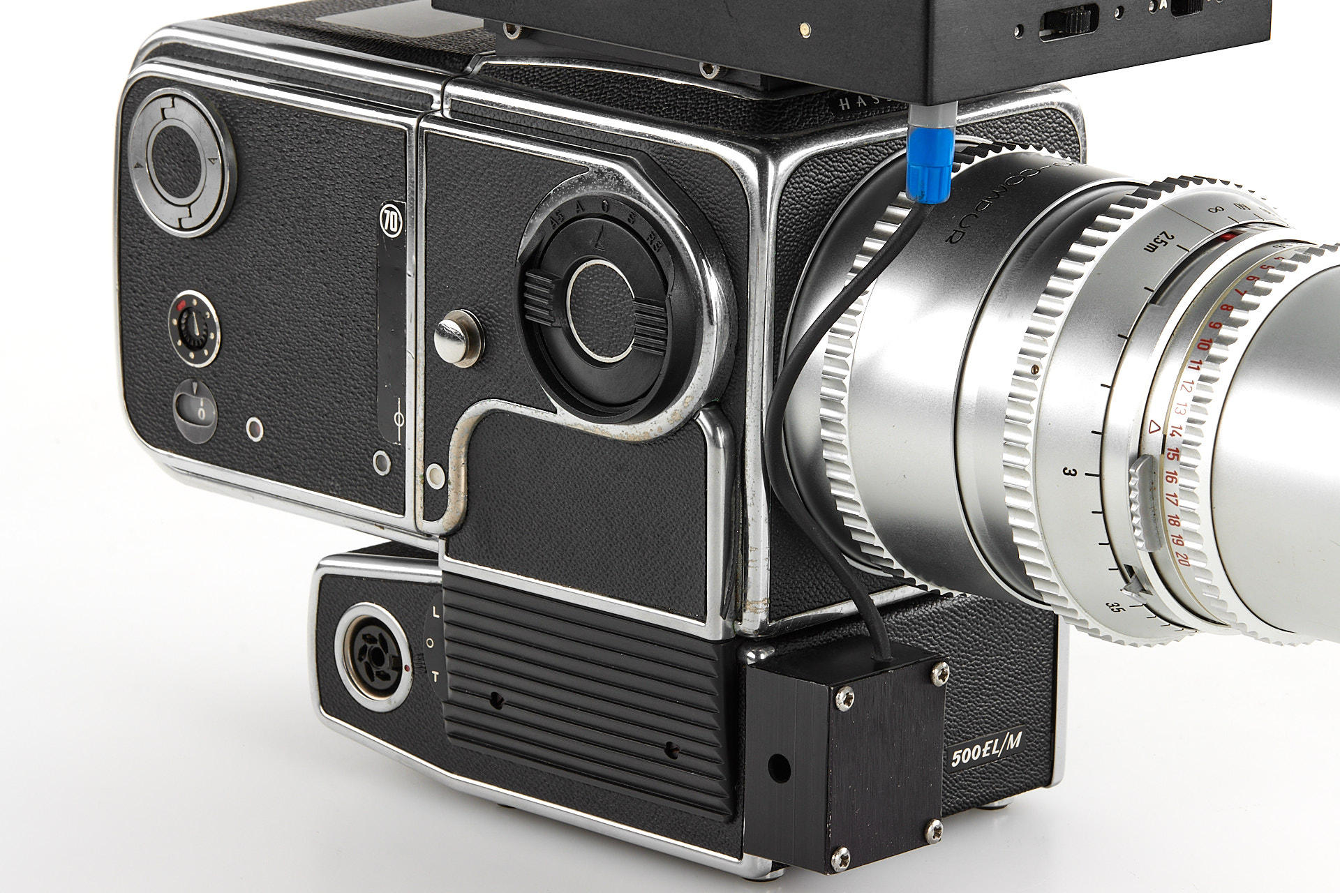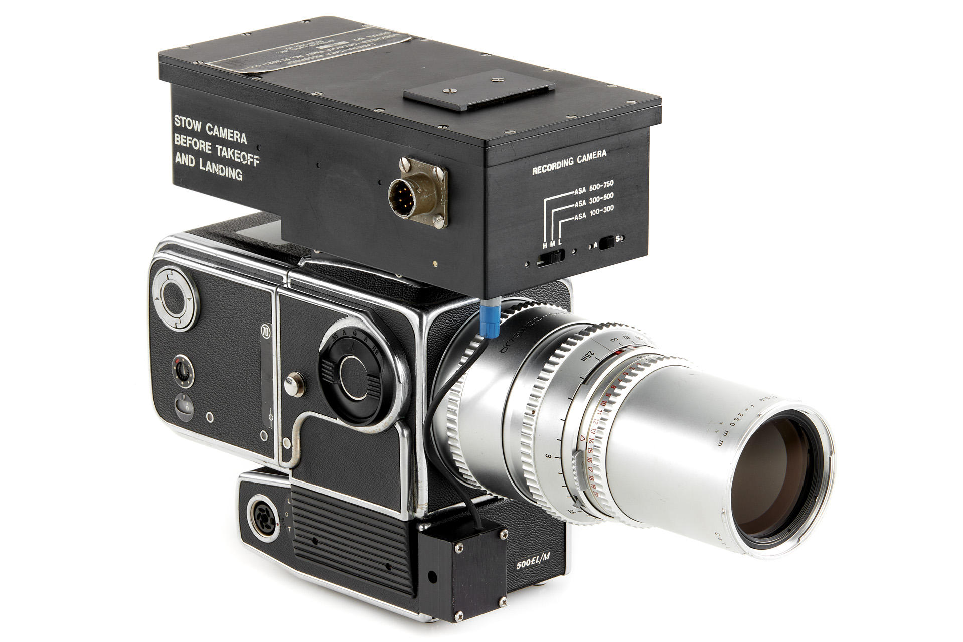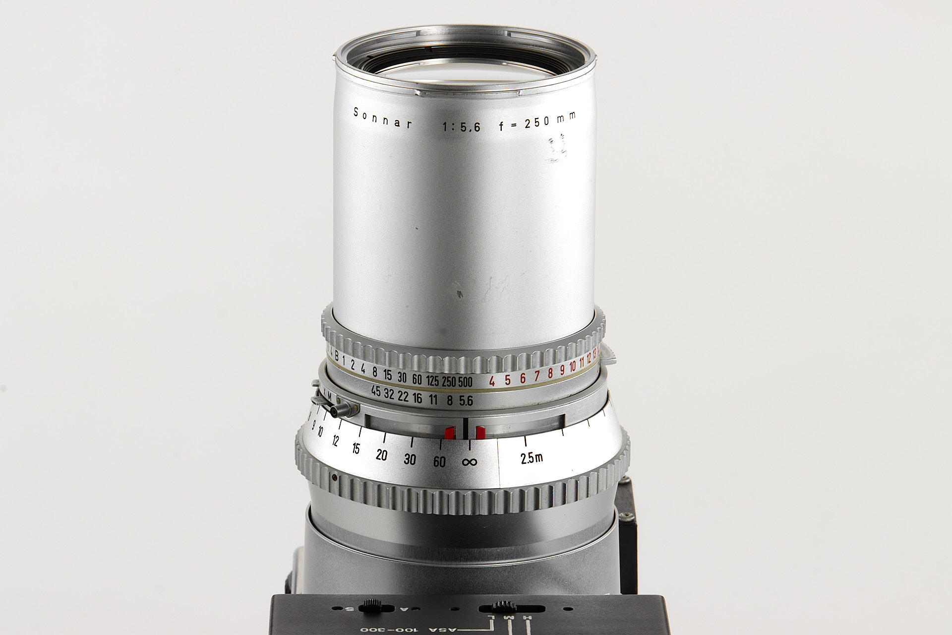 Special aerial reconnaissance camera, modified to imprint fligt data on the film, body no.RV1319175, with A70 magazine no.TR303735, viewfinder replaced with with the data printing device, incl. chrome Sonnar 5.6/250mm no.5613457, made for Lockheed by Epsilon Labs