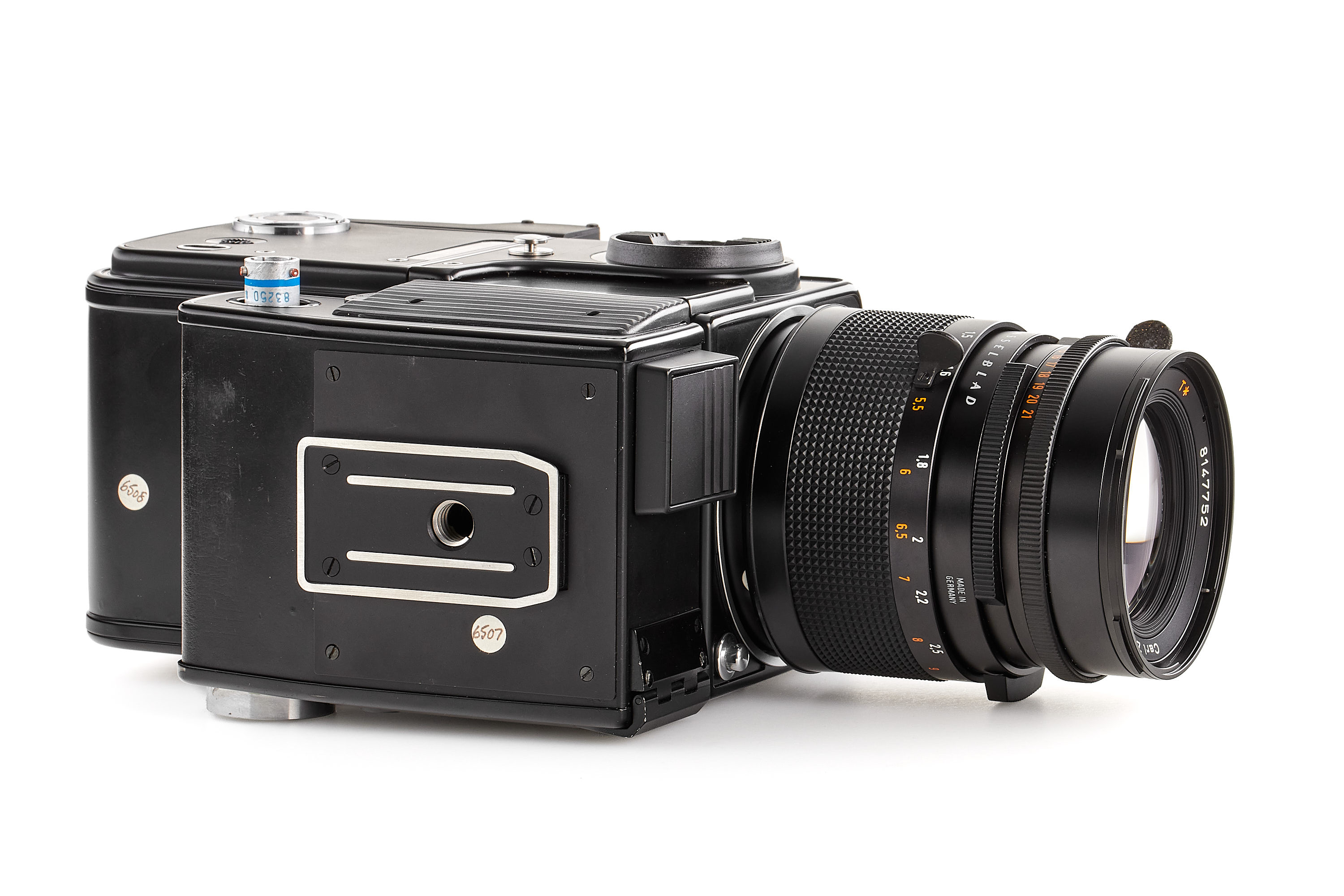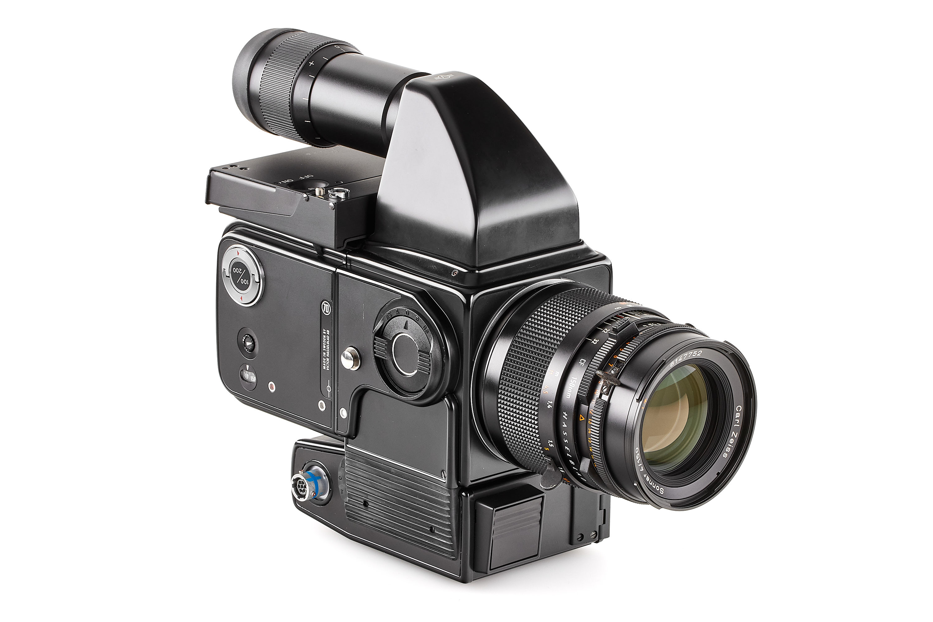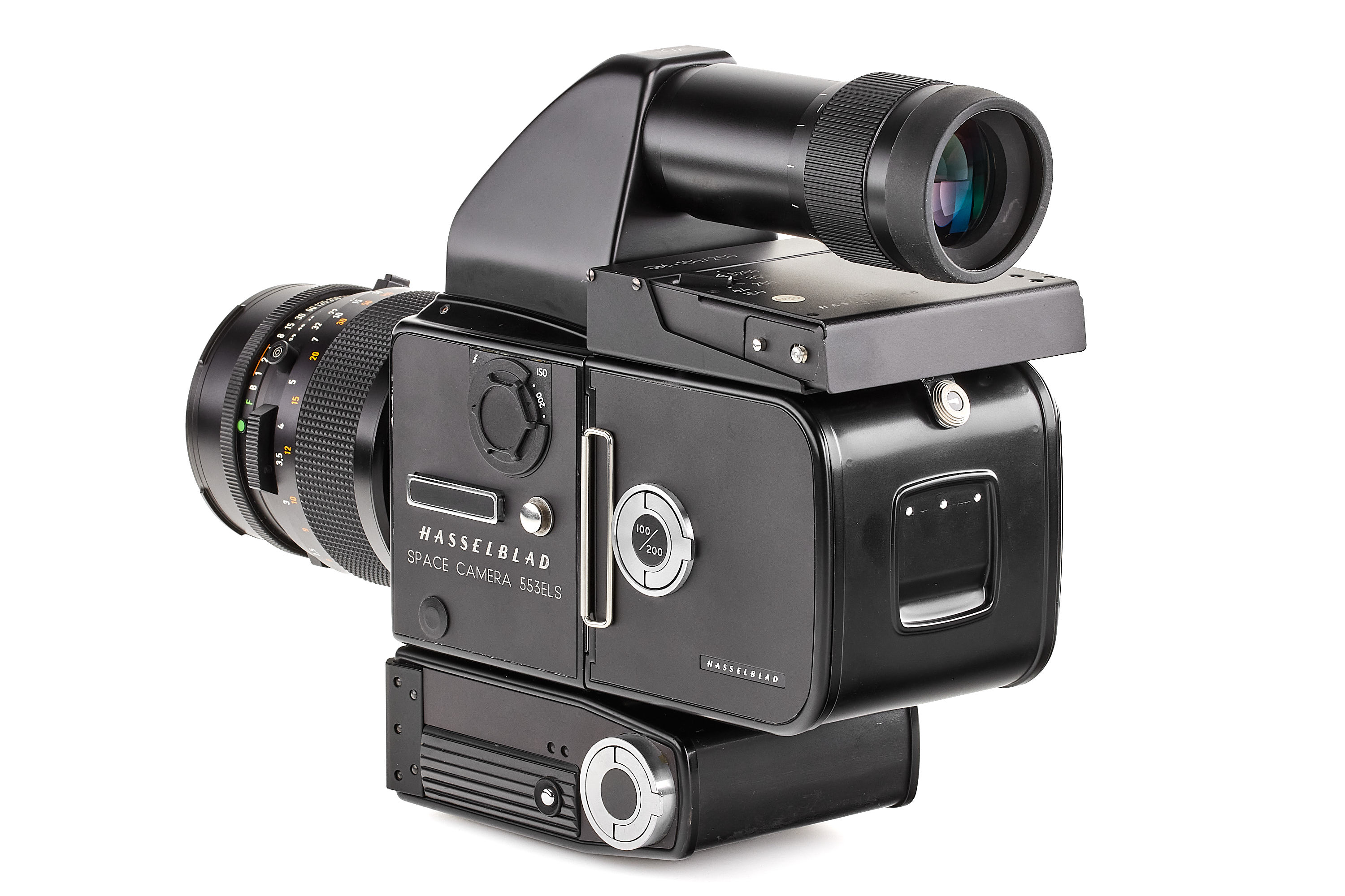 The ELS is a modified 553 ELX without flash control, the leather covering here is replaced by thin metal plates. This type camera was used in space shuttle missions at the beginning of the 90's. The film magazines are for perforated 70mm film and are provided with electronic dating - the picture number and time of each exposure are recorded. In 1991 a small number of the 553ELS were delivered to NASA. In 1999 Hasselblad company sold a series of only 18 cameras to collectors, the set on offer here is from this small series and consists of a Hasselblad Space Camera 553 ELS no.RC1327938, 70mm Data magazine no.33EC10464 with DE-32, Sonnar CF 4/150mm no.8147752 adapted for space conditions, RM-2 reflex viewfinder, cap, Hasselblad certificate of authenticity, instructions and special fitted case, all in almost mint condition and in working order.