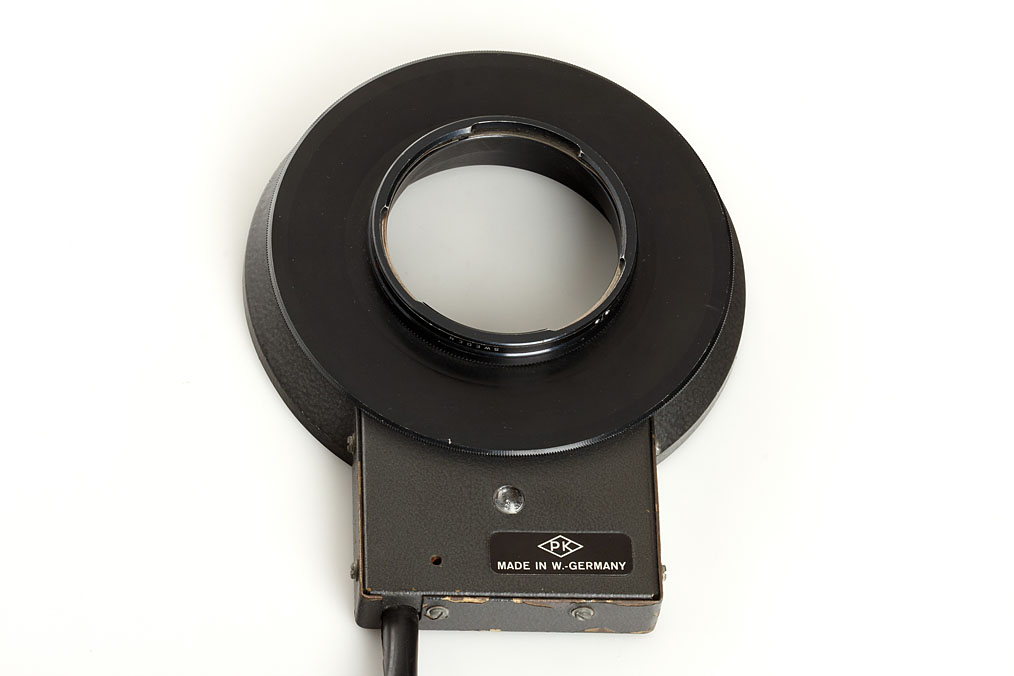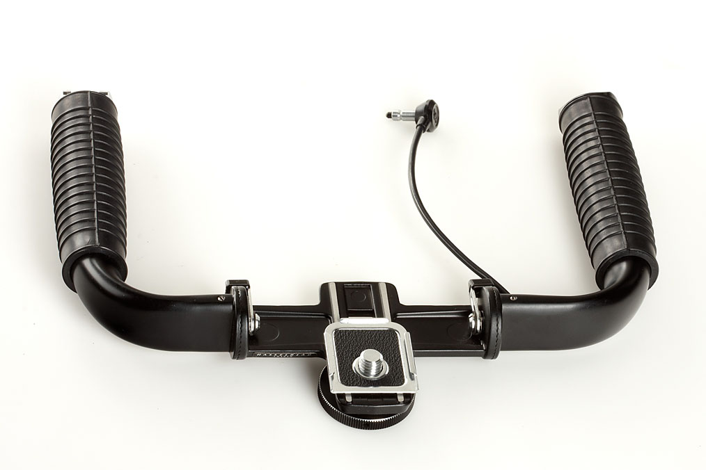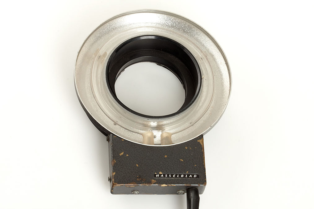 (1) EL double Hand Grip 46132 (mint in maker's box), (2) Ring Flash, (3) Extension Tube 10, (4) C Pistol Grip 45047 (mint in maker's box), (5) rare Flashgun bracket, (6) 50mm Distagon hood, (7) rare Exposure meter knob with wrist strap, (8) A16 magazine no.TV203438, (9) Prism Sports Finder, (10) special frame finder for 350mm Tele-Tessar (10)
