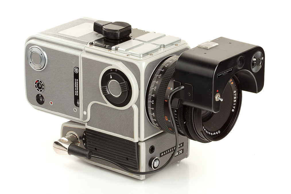 rare special metric version, used for photogrammetry, CF Opton Planar 3.5/100mm no.6785178 with auto diaphragm control, cap, 70mm magazine no.RP362682, this Hasselblad is the commercial version of the Hasselblad 500 EL Data Camera used by NASA for the lunar missions