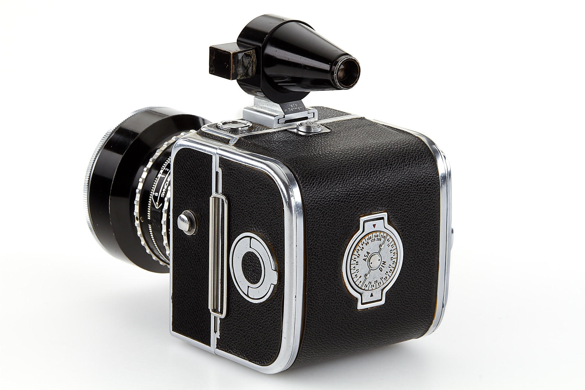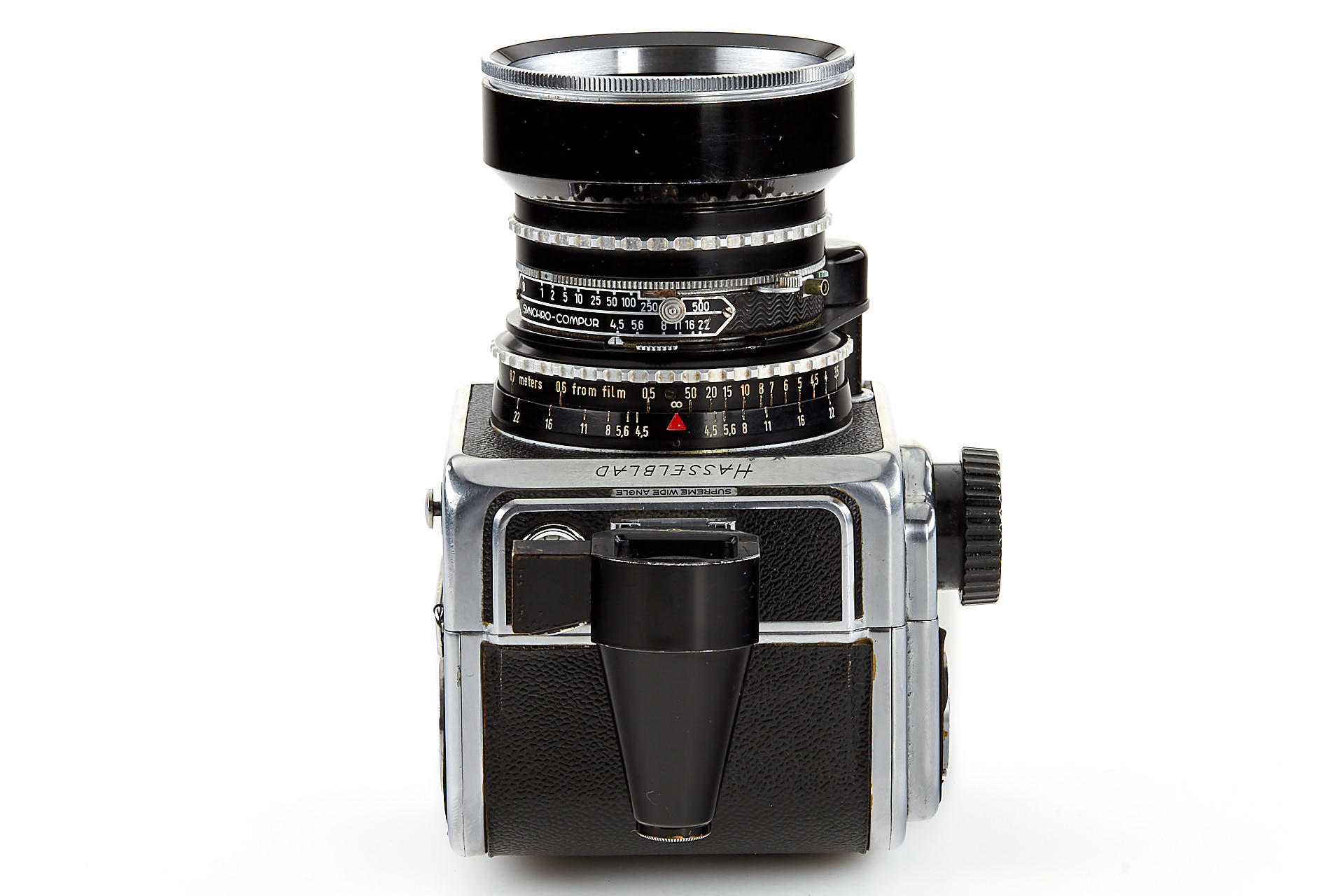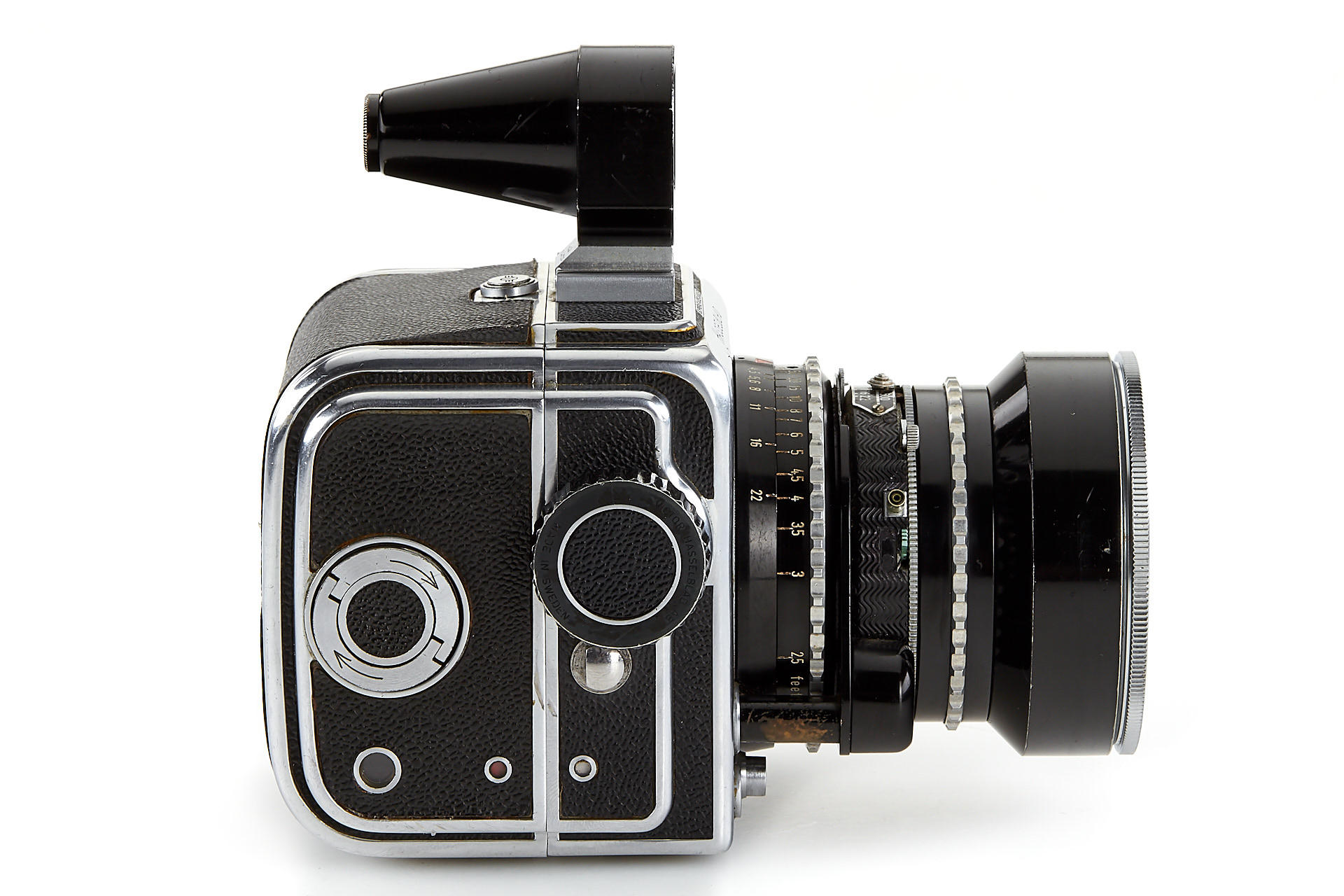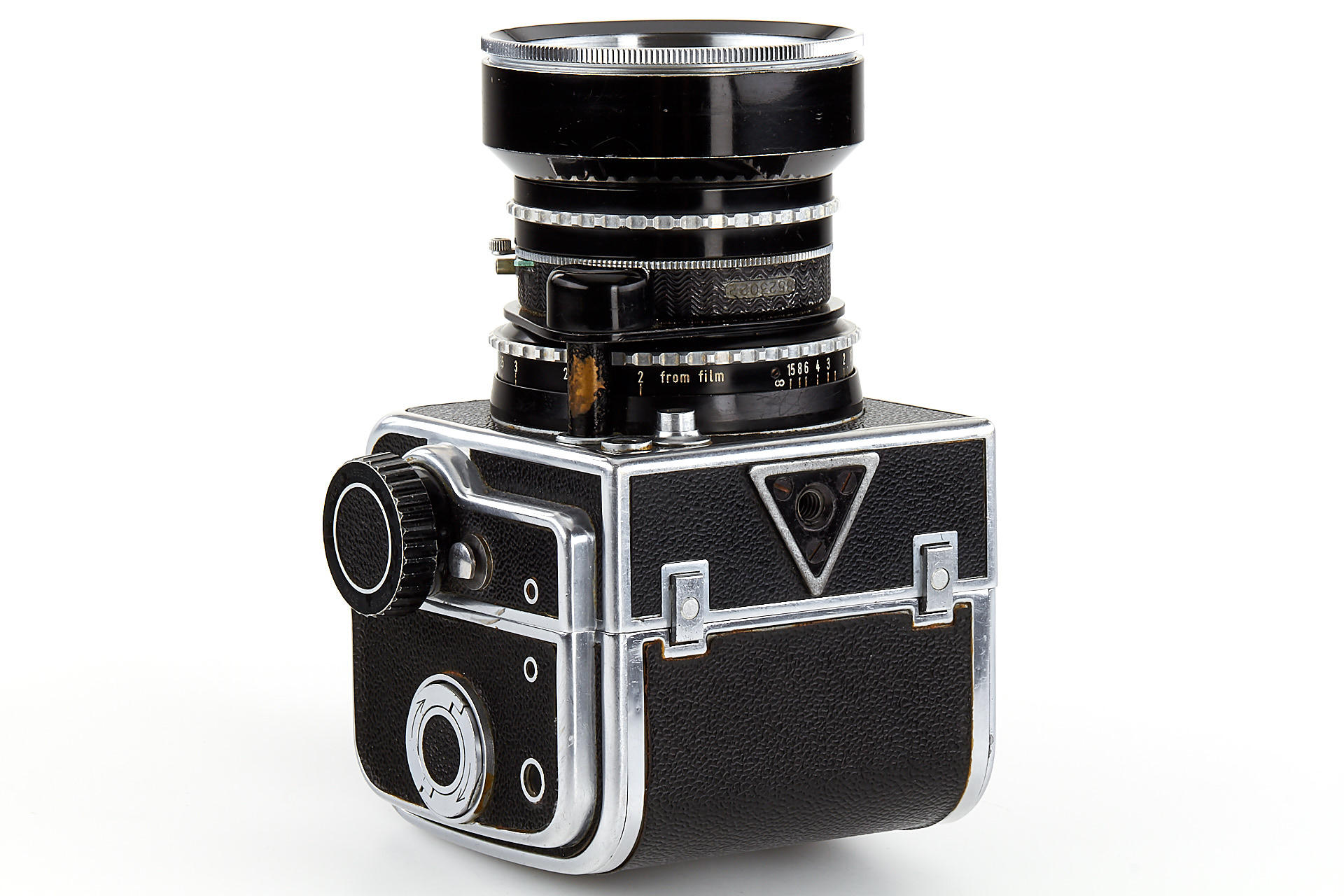 first version wide angle Hasselblad, with Biogon 4.5/38mm no.1074247 (good optics), original finder, in very good cosmetic condition and in perfect working order, incl. A12 magazine no.CP16505, filter adapter and lens cap
