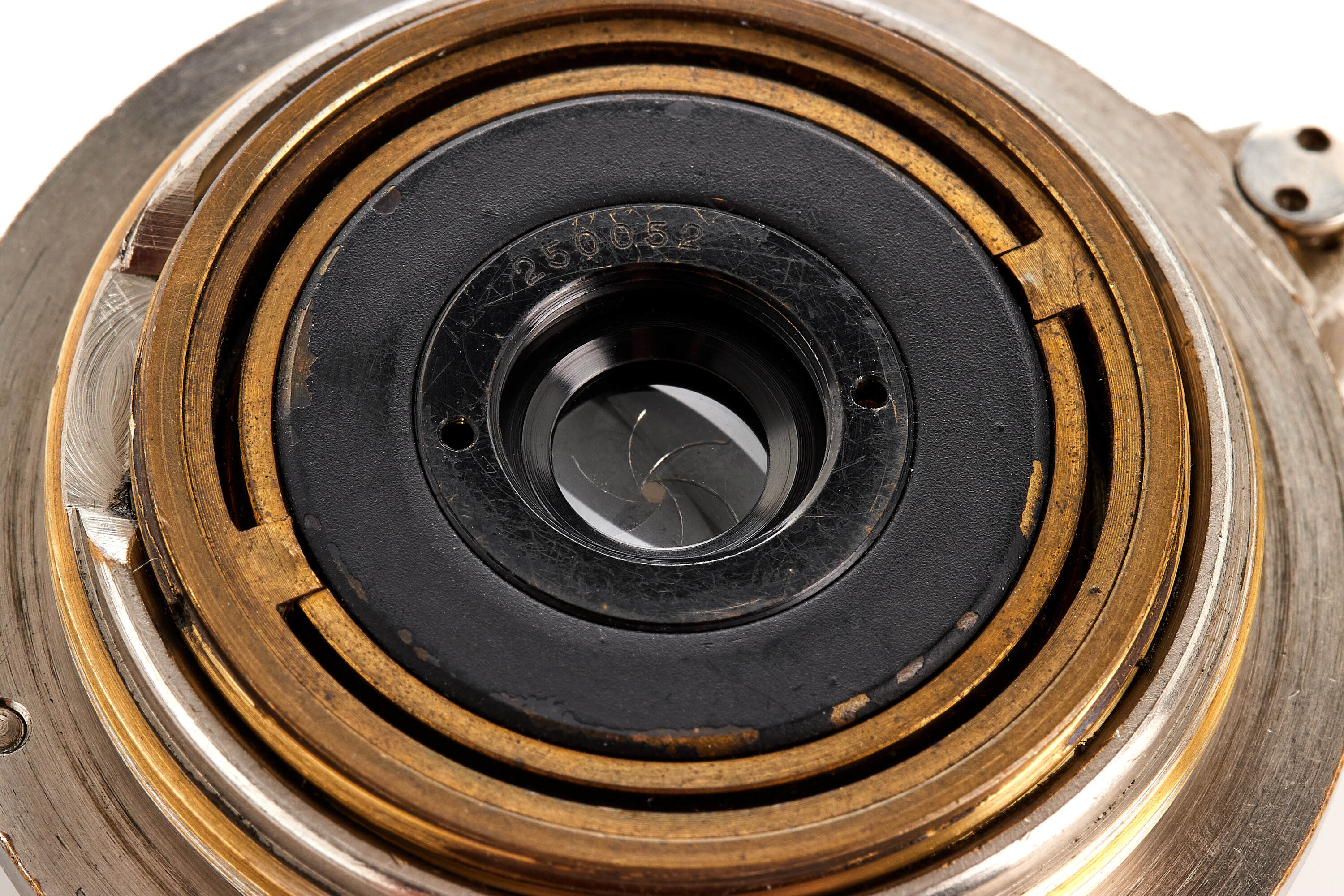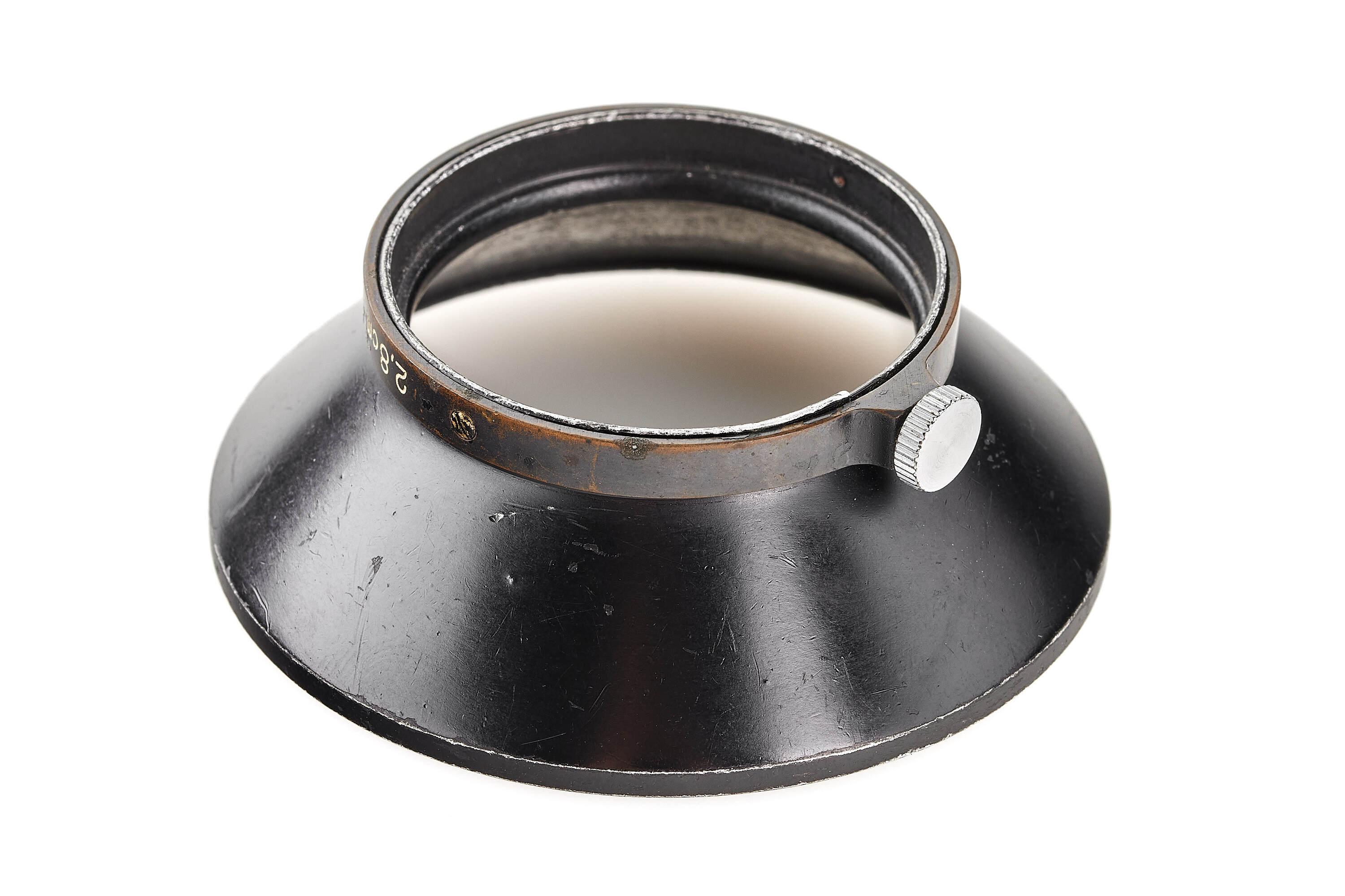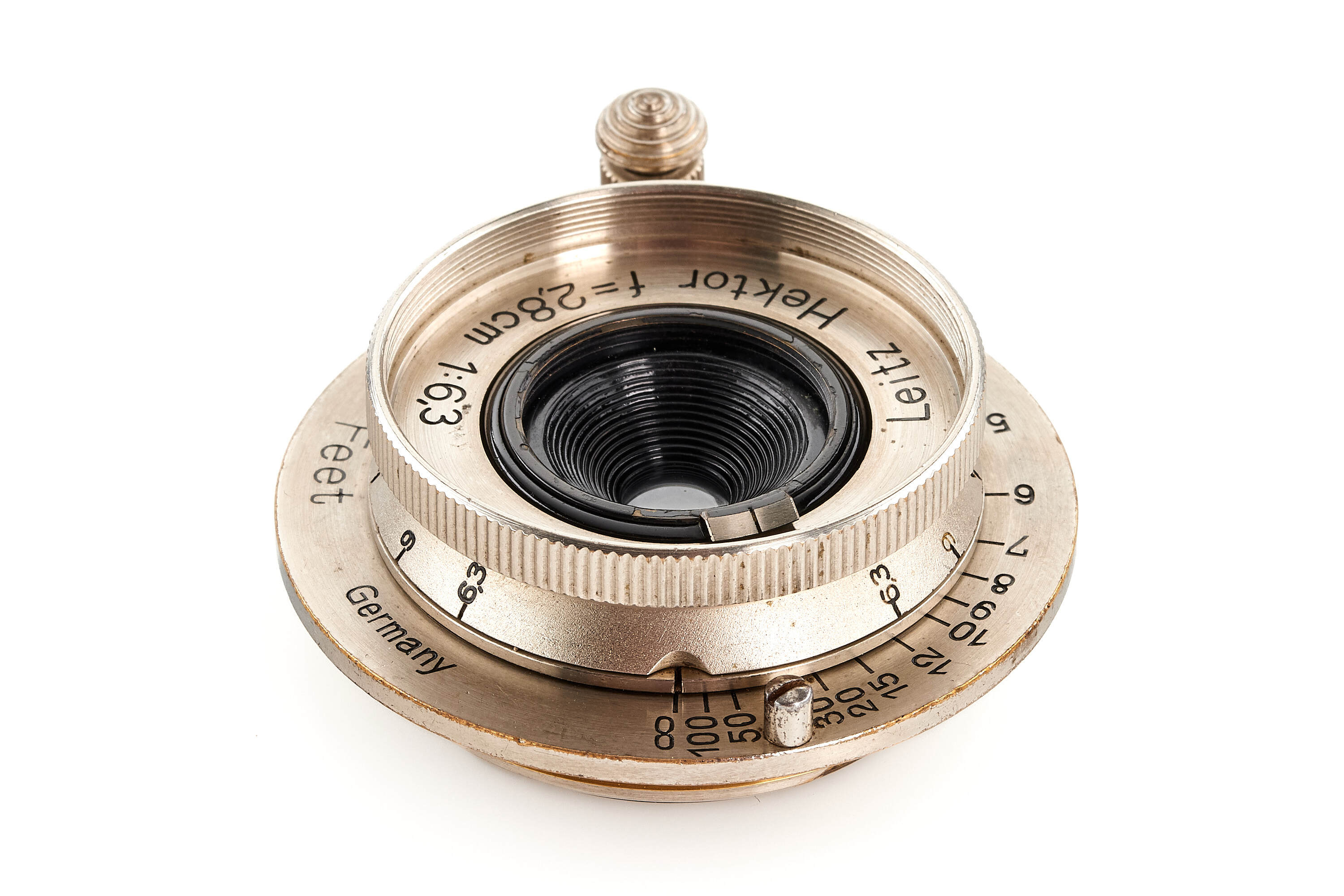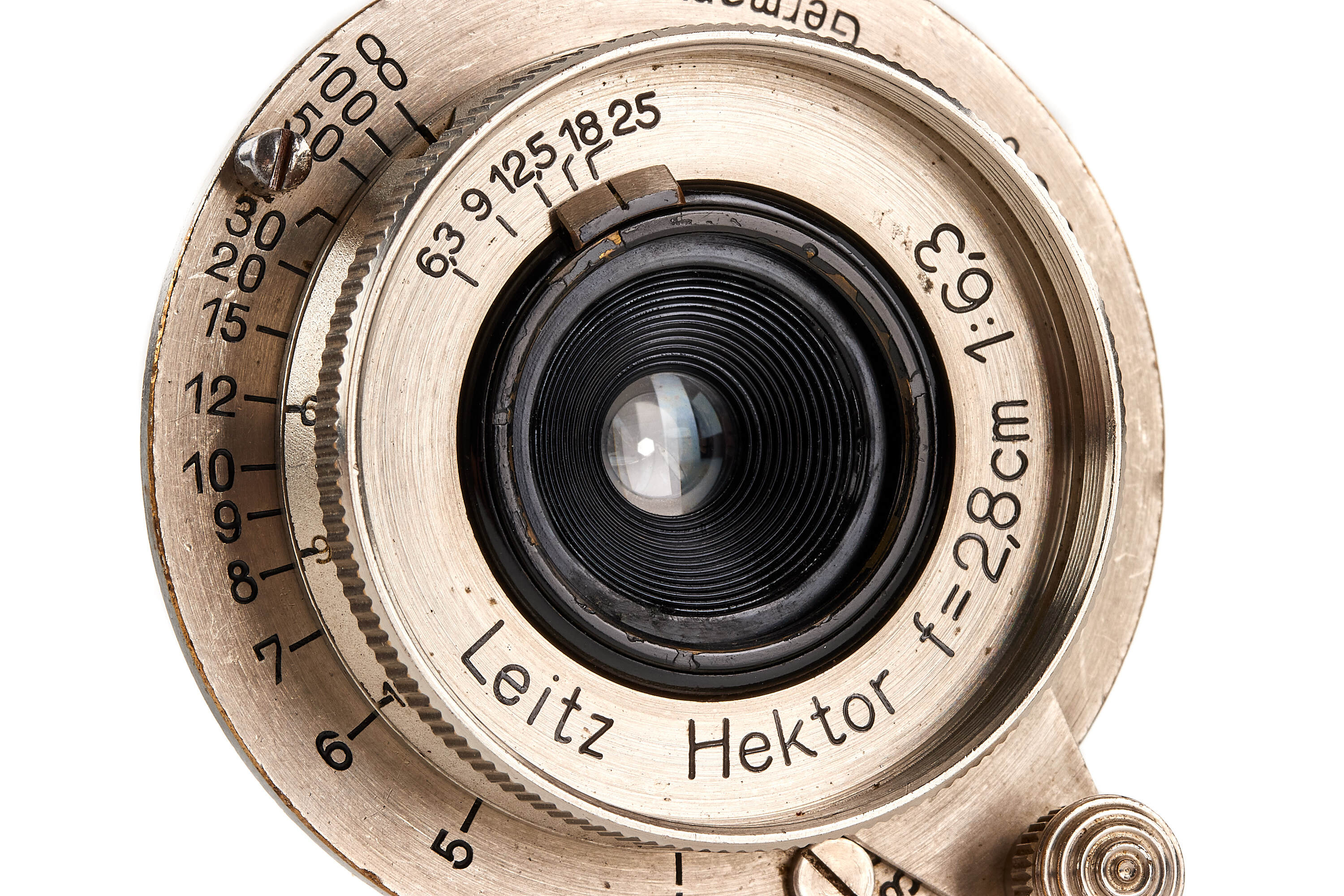 Very early and rare nickel version of the 2.8cm Hektor HOOPY, in feet scale, production starts with no.250001, in beautiful, almost mint condition, good optics only showing a few discrete cleaning marks, delivered on 26.07.1935 to London, with very rare matching SOOHN hood (cond. B+) and later plastic keeper.