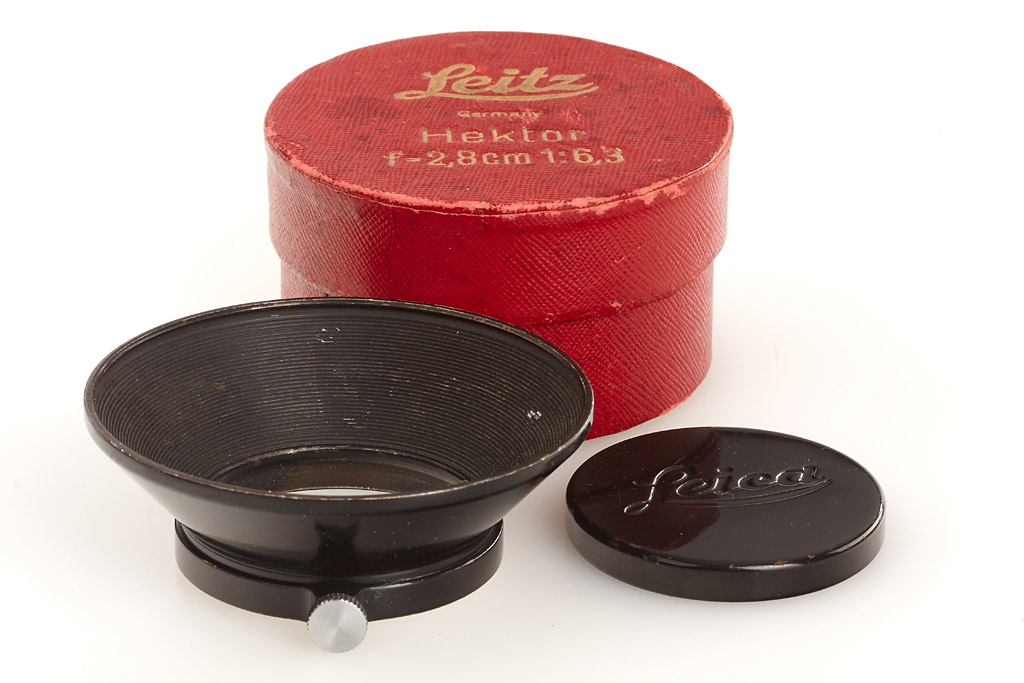 very rare 2.8cm Hektor in nickel finish in near mint condition with both caps, maker's box, black/nickel SUOOQ finder and SOOHN hood