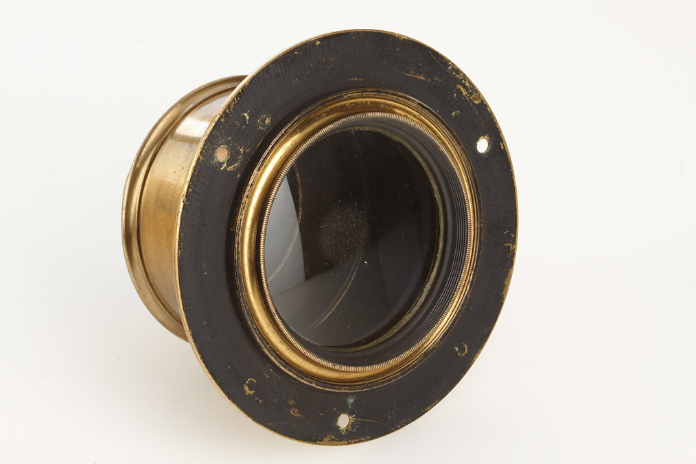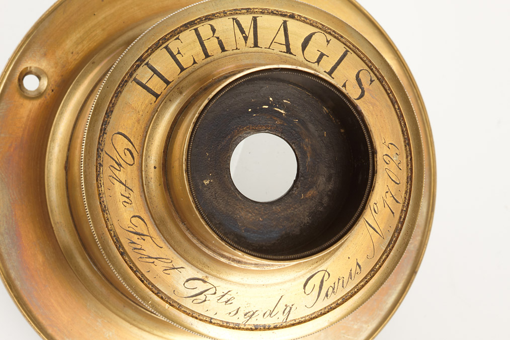 early brass lens engraved 'HERMAGIS Opt'n Fab't Bte Paris no.17025', height 9cm, in very good condition
