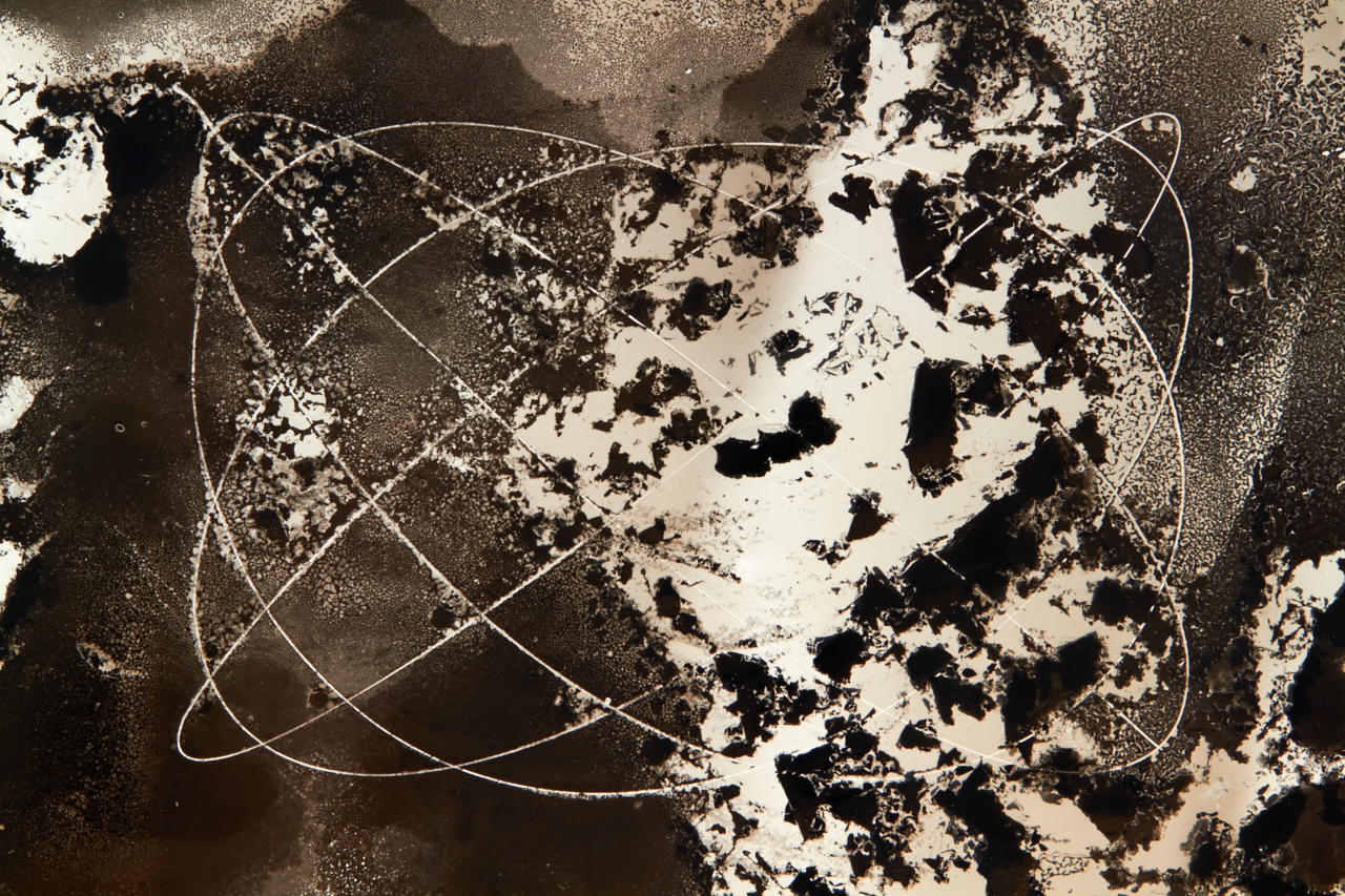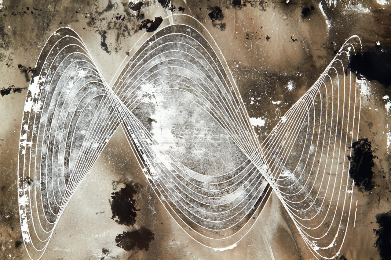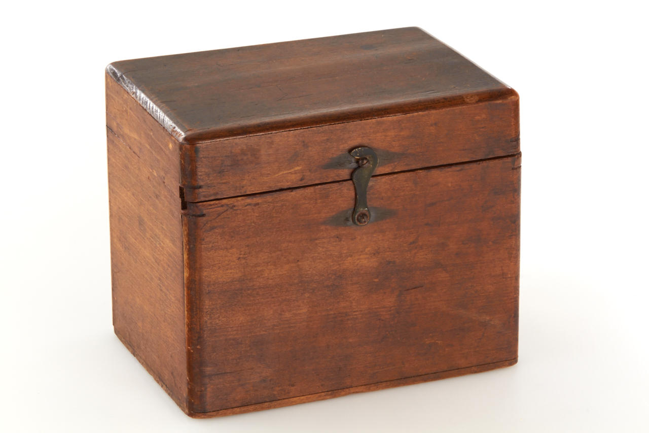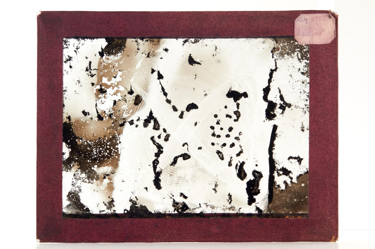 boxed set of 23 half plate (4.5x5.5") slides with very fine Harmonograph curves. The patterns are scribed on glass plates coated with a layer of soot. In order to protect the vulnerable surface each slide is covered with a cover slip and bordered with a linen strip. Due their ephemeral quality, all the slides show a certain degree of disintegration. Some are completely faded, at least 4 slides show clear Harmonograph patterns. Embossed makers label on the inner side of the wooden lid: 'Manufactured by Samuel Peck & Co'. Samuel H. Peck of New Haven, Connecticut, produced Daguerreian images, cases, and wet-plate cameras between 1850-1860. In the mid 1900’s the Harmonograph was a very popular philosophical toy which was used to demonstrate the correspondence between mathematical curves and musical harmony, the technique to record motion on a turning soot coated glass cylinder was also common between 1850 and 1900 mostly in the field of Physiology - for example Etienne-Jules Marey used it for his work on animal movement. The purpose and the origin of the offered slides is not completely clear, but it seems that they were produced for scientific demonstration rather than for amusement.