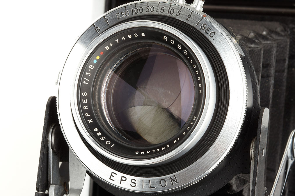 6x9cm, rare rangefinder camera in good working order with Ross Xpres 3.8/105mm no.74986 in perfect working Epsilon shutter, everready case