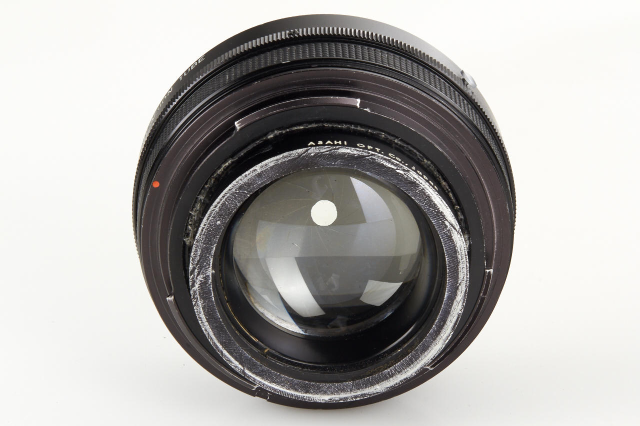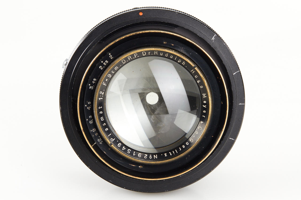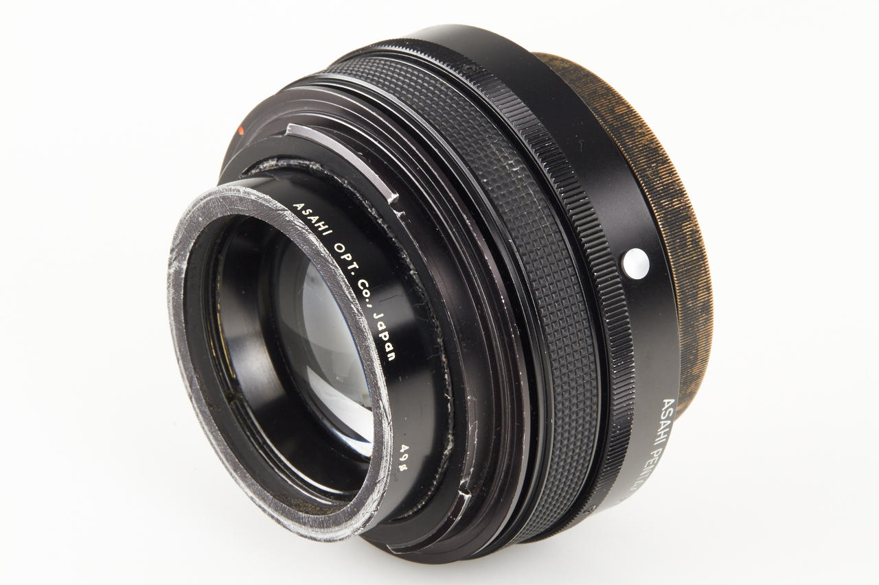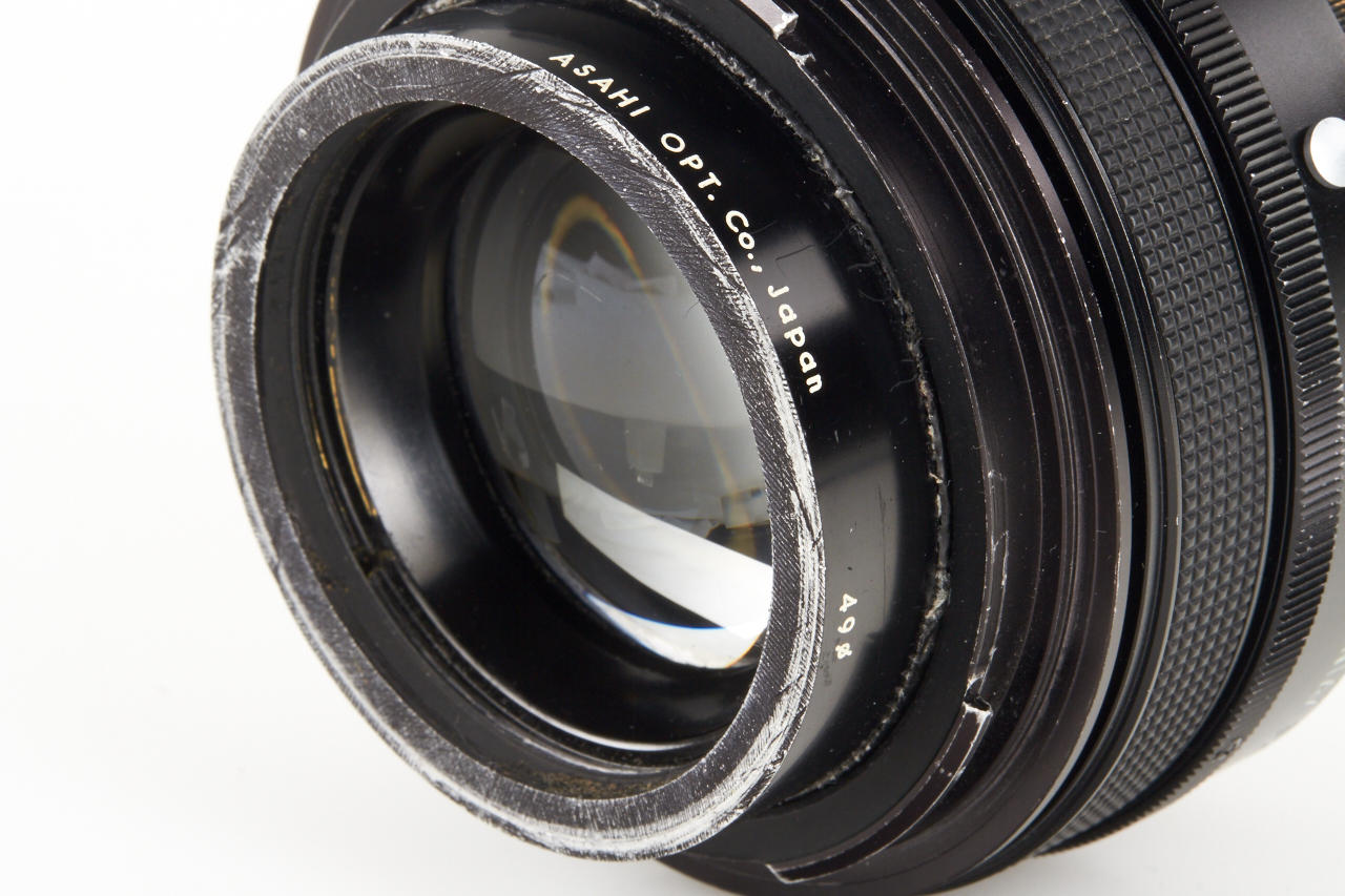 rare and very fast lens with focusing adapter for Pentax 67, good optics with few small cleaning marks, inclusive hood and leather cap