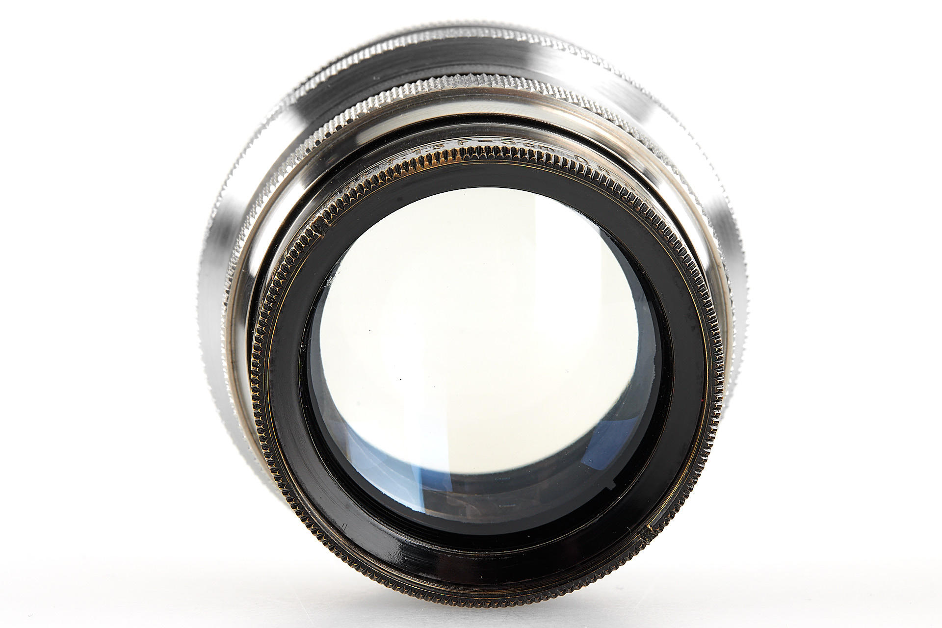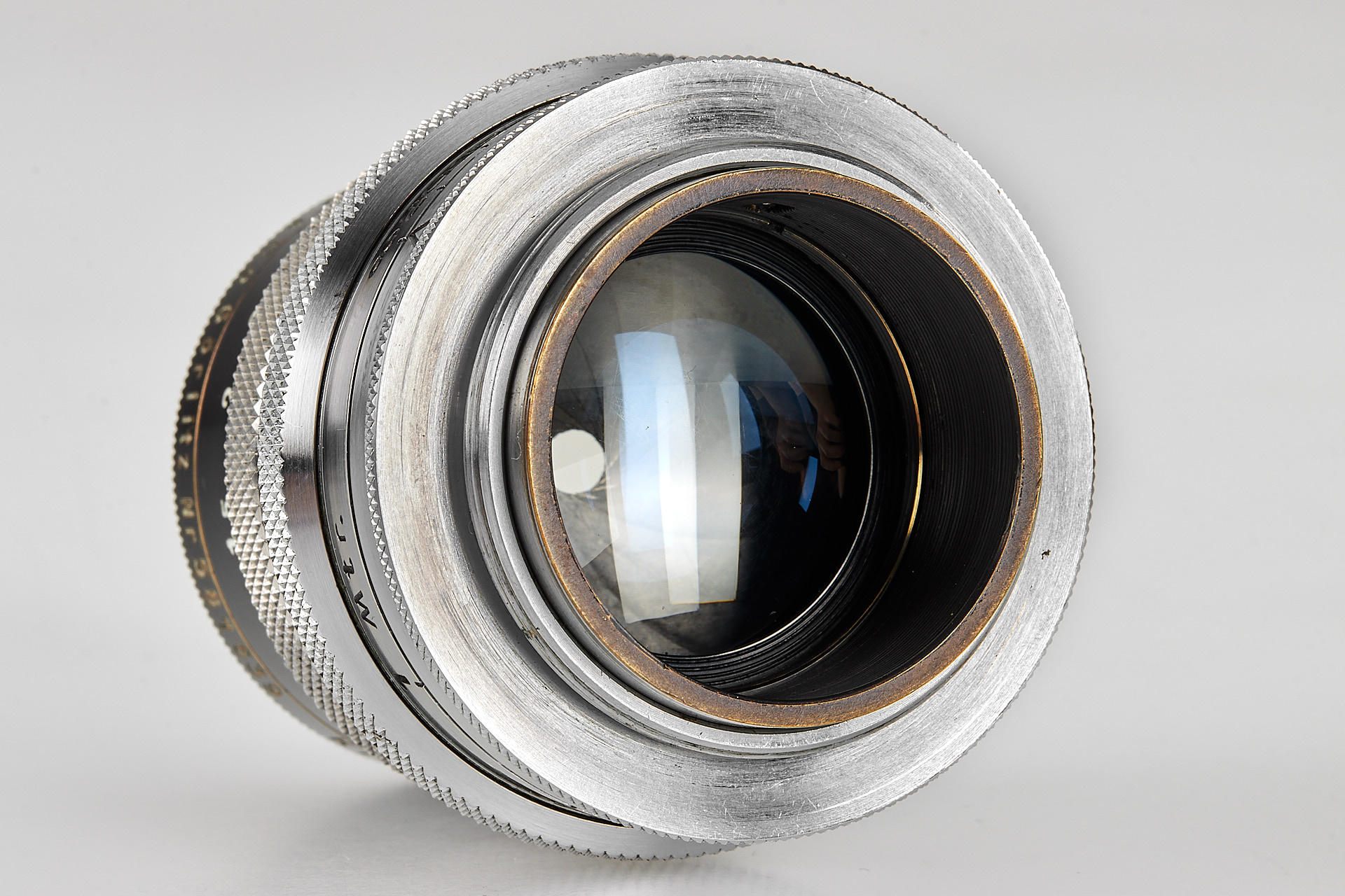 a sought-after fast lens in original, rangefinder-coupled M39 mount, black paint and chrome/nickel finish, in excellent cosmetic condition, very good optics, clean iris diaphragm with a round opening, incl. rear cap and original black hood