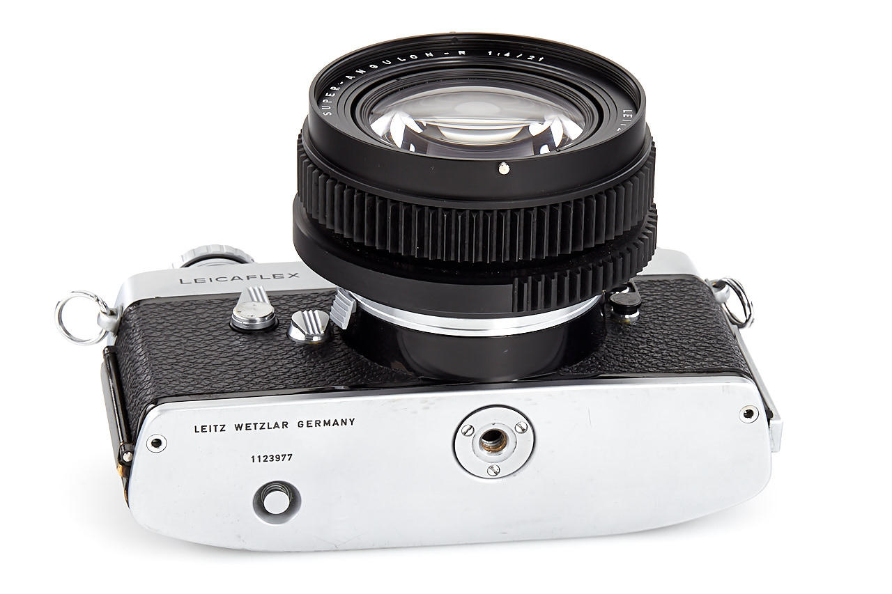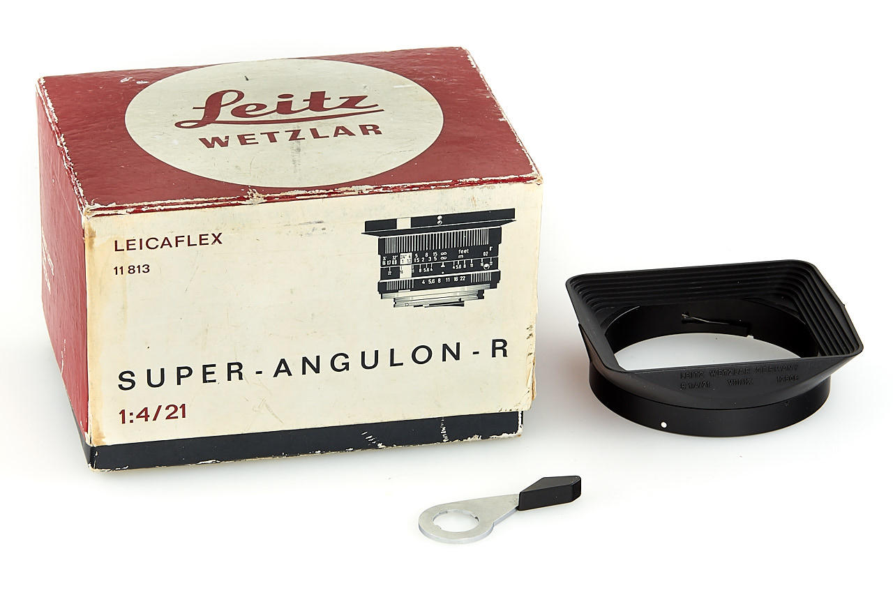 very rare underwater housing for first version Leicaflex, made by a Swiss manufacture Hugy Fot, in excellent condition, with a Leicaflex body no.1123977 (cond. B/A, incl. special winding lever), Super Angulon 4/21mm no.2448267 (with geared wheels to connect the aperture and focusing ring to the camera, incl. maker's box)