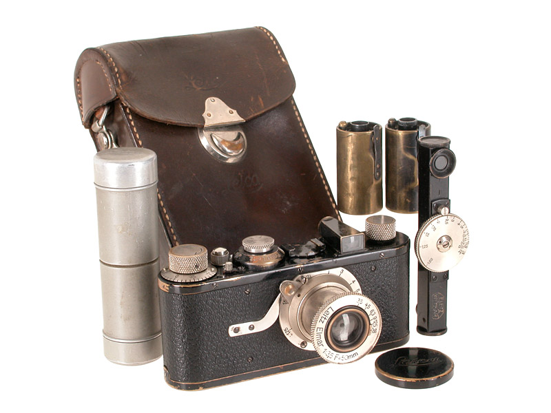 late Leica I in original condition with cap, FOFER rangefinder, 2 film cassettes in aluminium container, ETRIN case